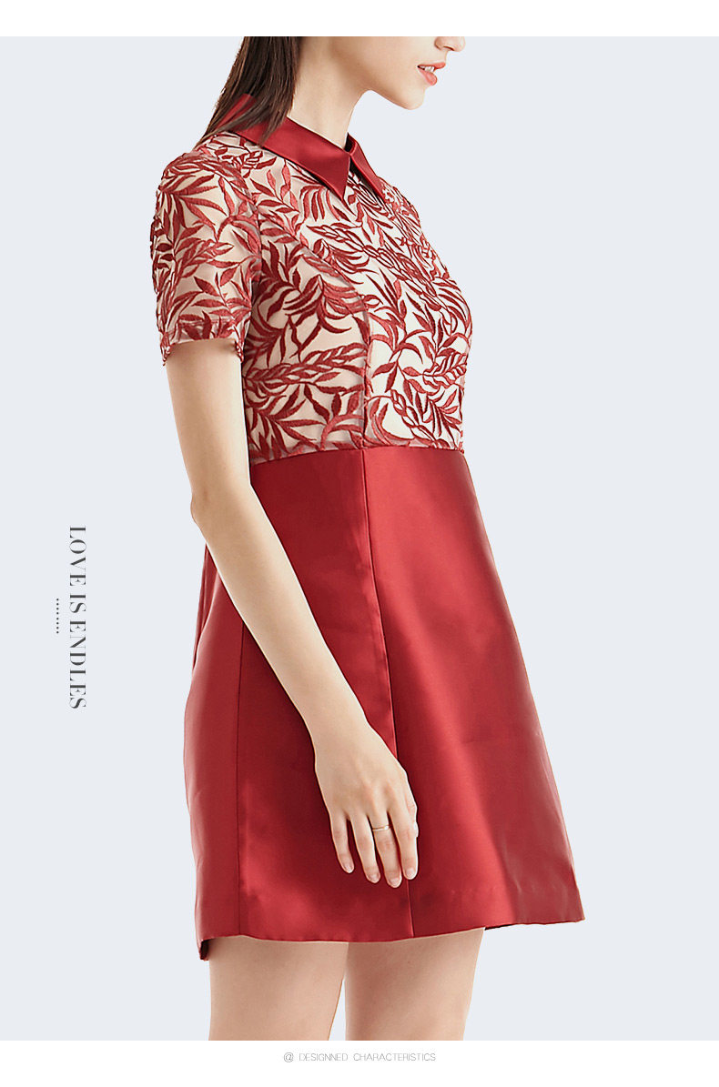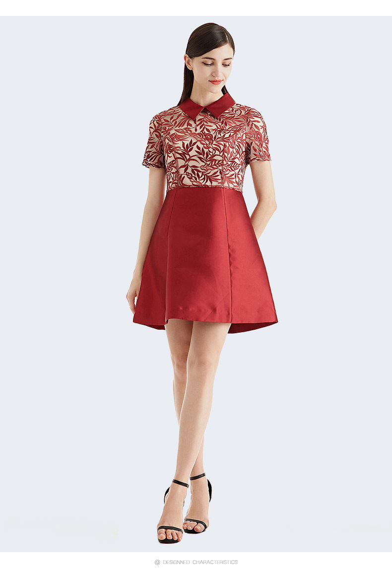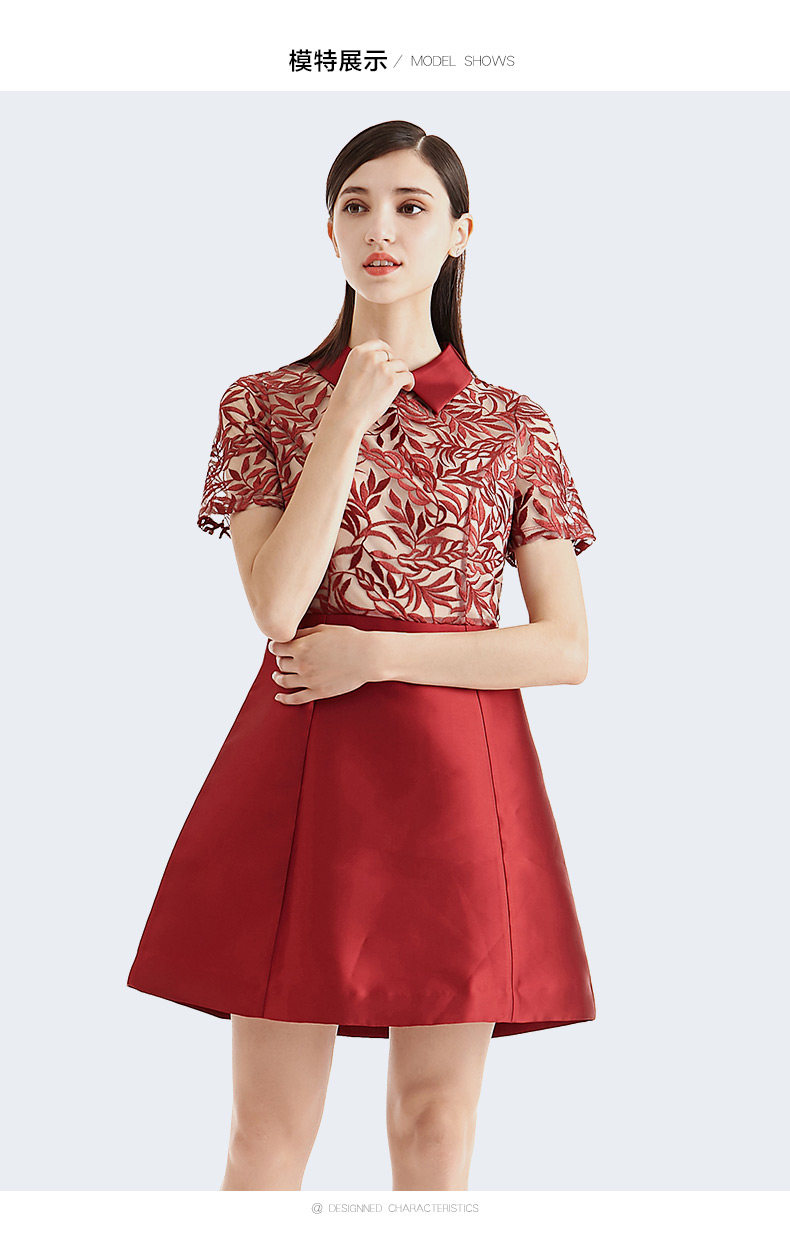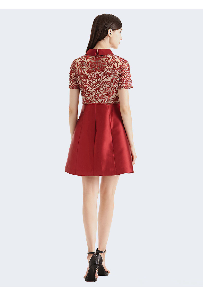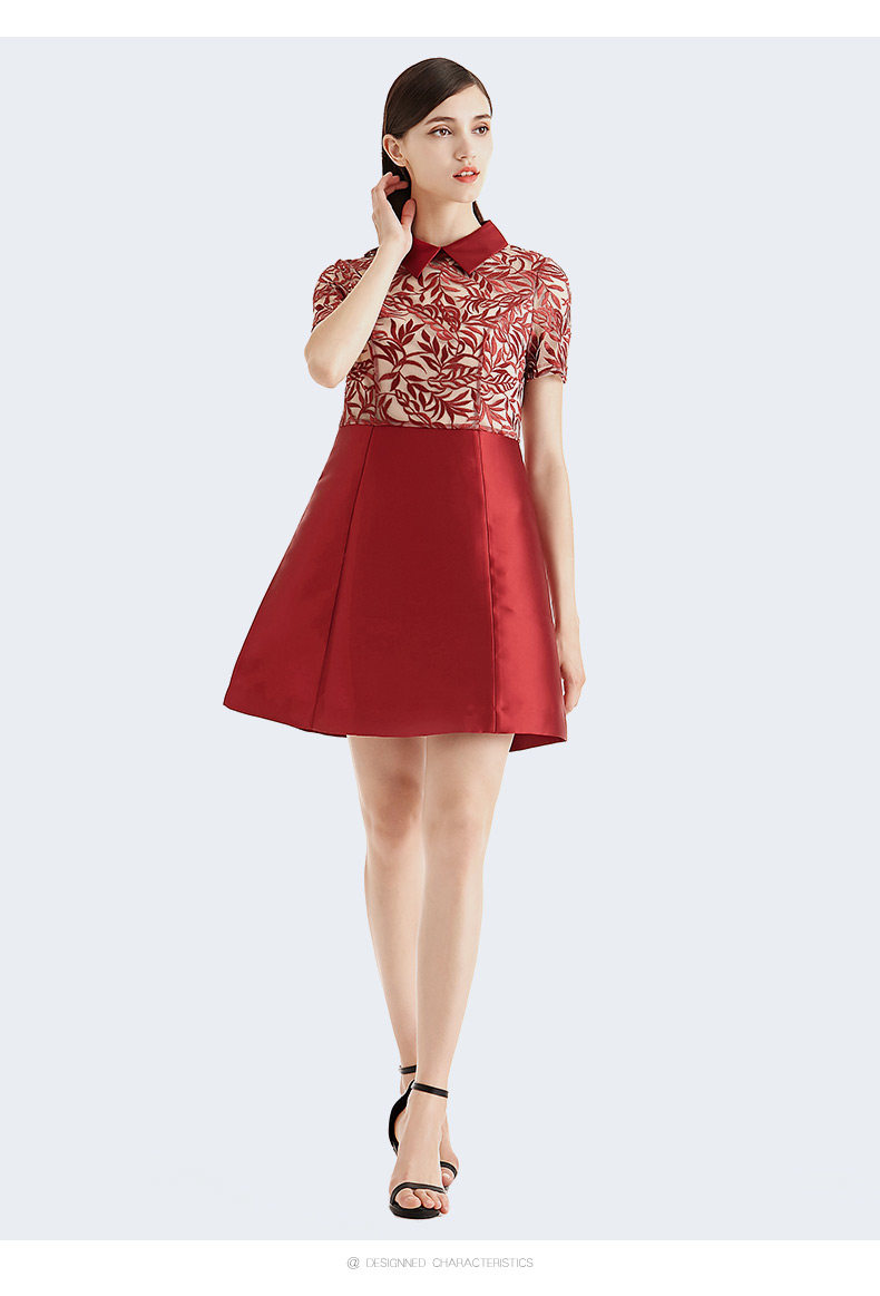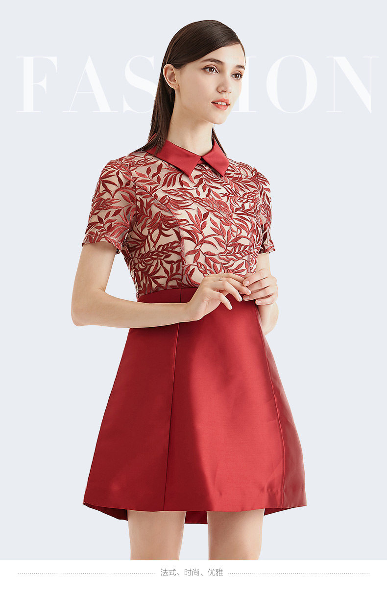 EITIE爱特爱女装秋季精致刺绣绣花短袖高腰A字裙礼服短裙5677308