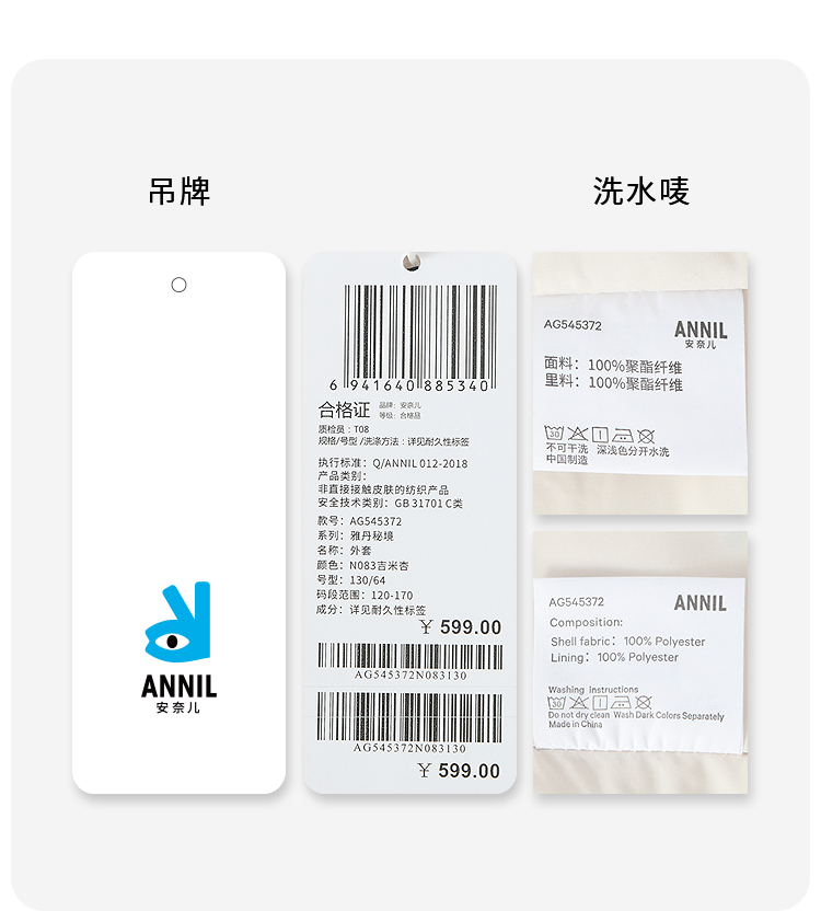 【实体店同款】女童外套冬季新款安奈儿童装AG545372