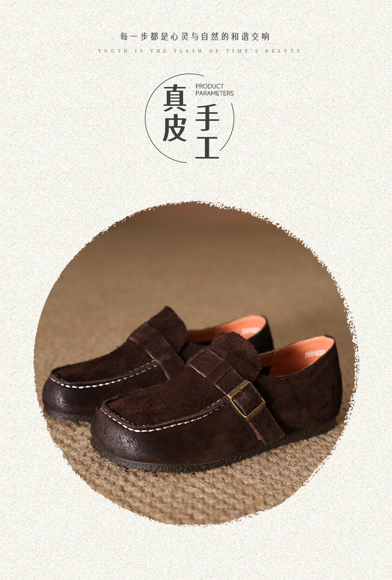 FR 85083复古平底磨砂皮单鞋一脚蹬勃肯豆豆鞋 商品图1