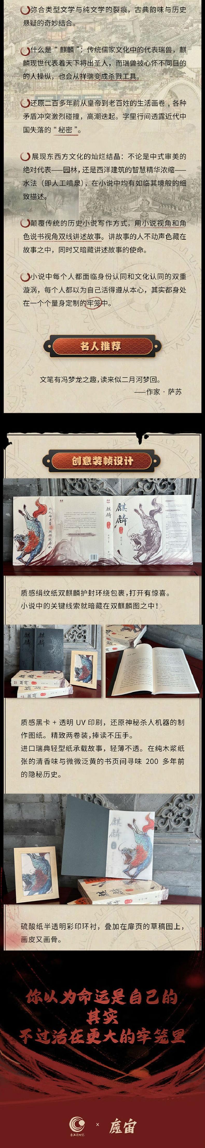 * 弥合类型文学与纯文学的裂痕,古典韵味与历史悬疑的奇妙结合。作家萨苏盛赞:文笔有冯梦龙之趣,读来似二月河梦回。