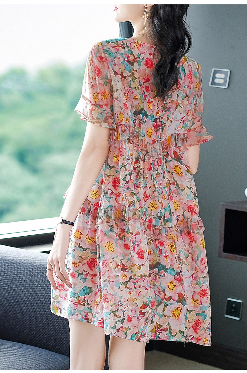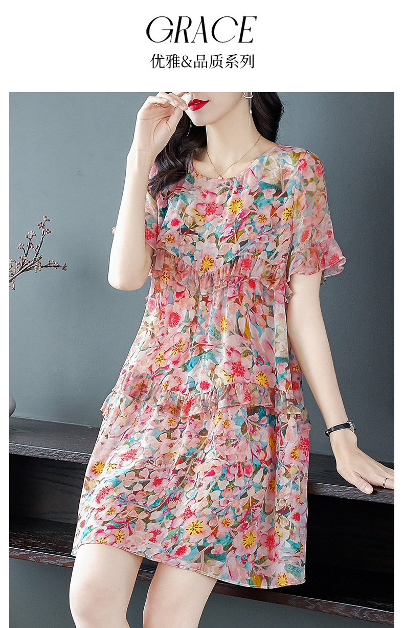 WWM-69218-1新款69218原创设计女装印花真丝连衣裙宽松小个子大码女装