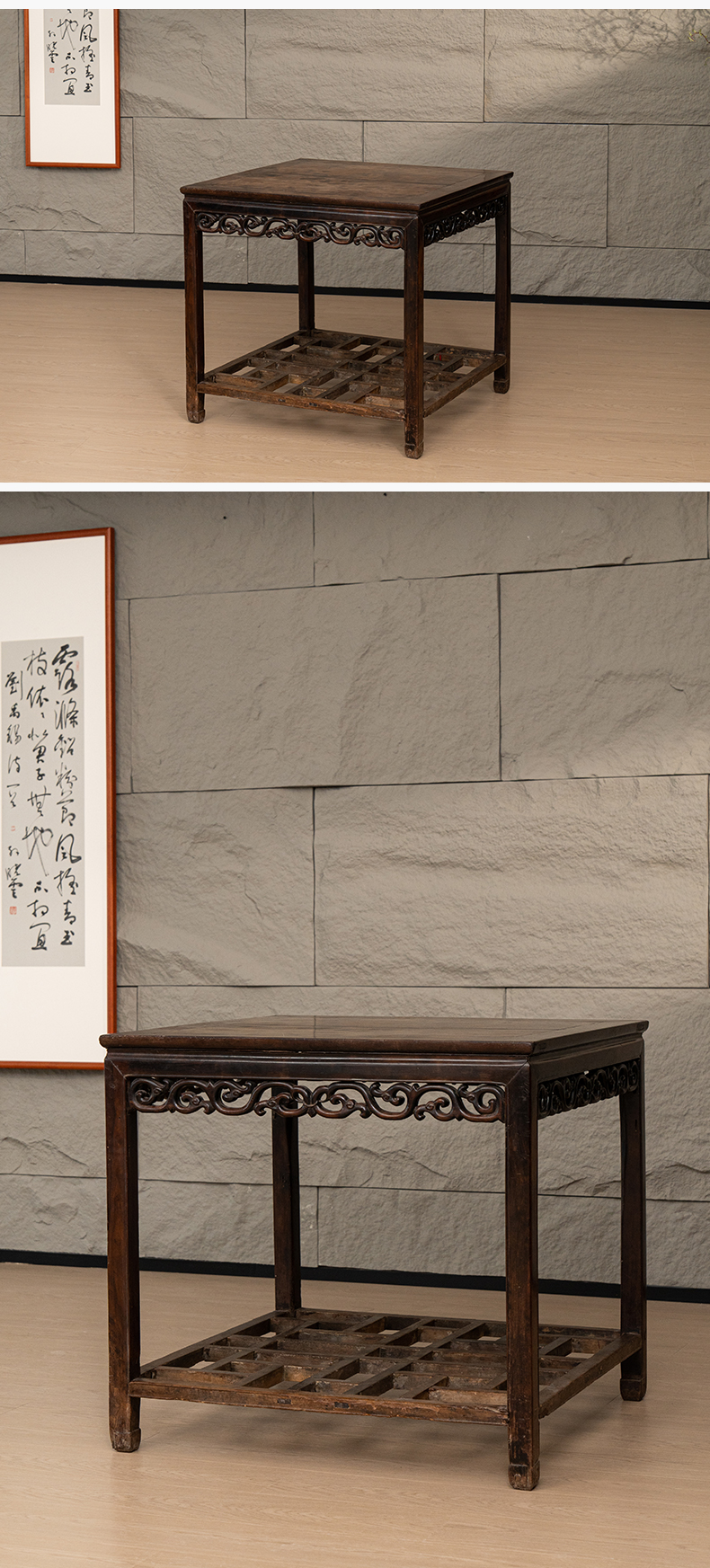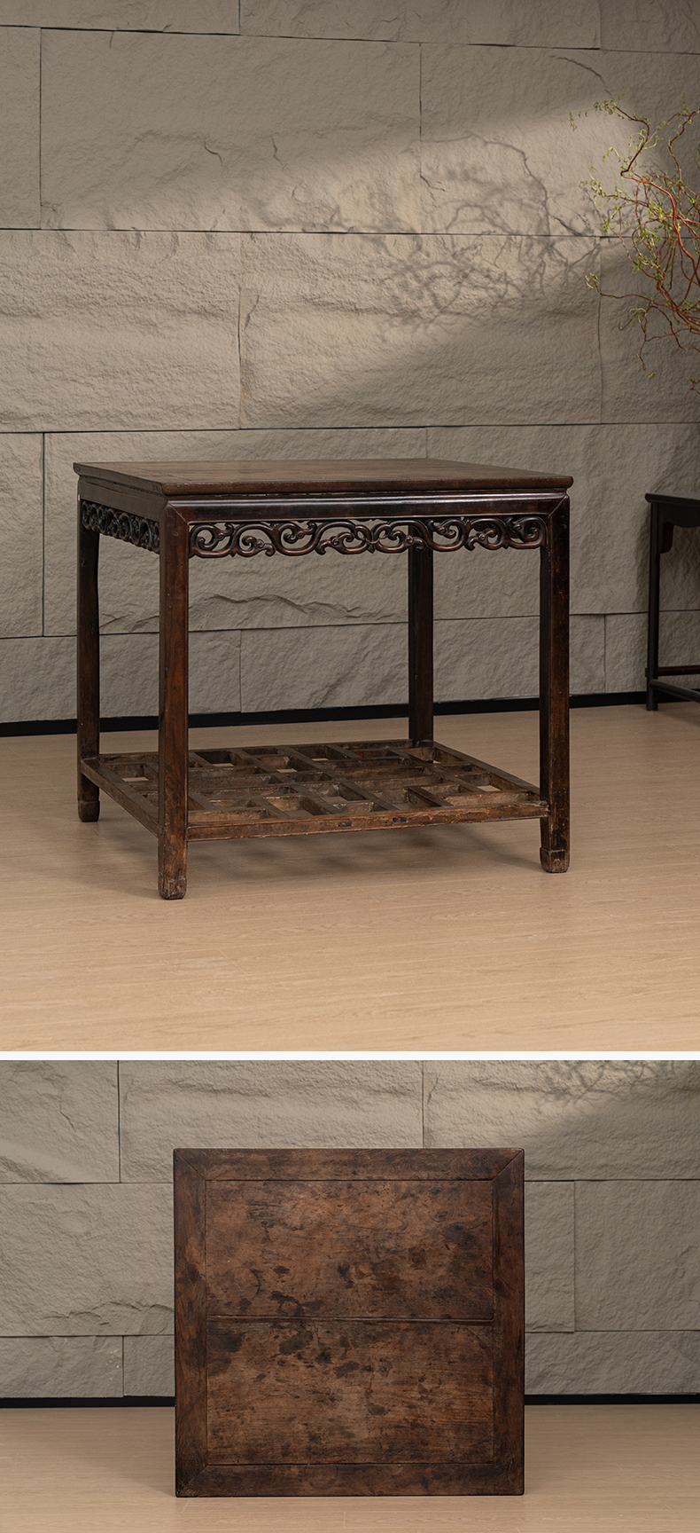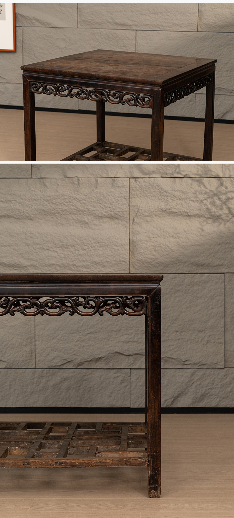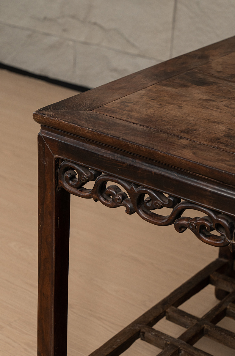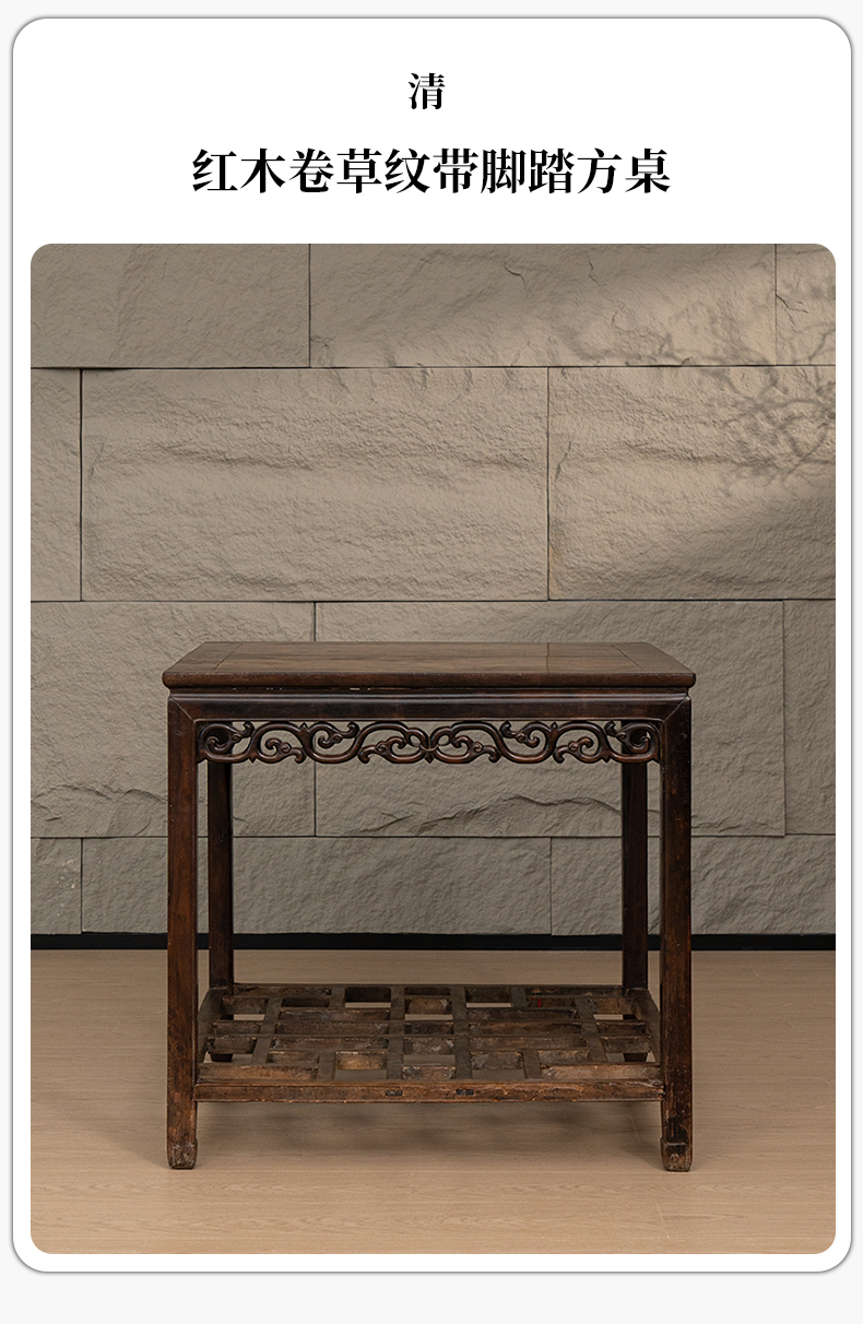 清代 红木卷草纹带脚踏方桌