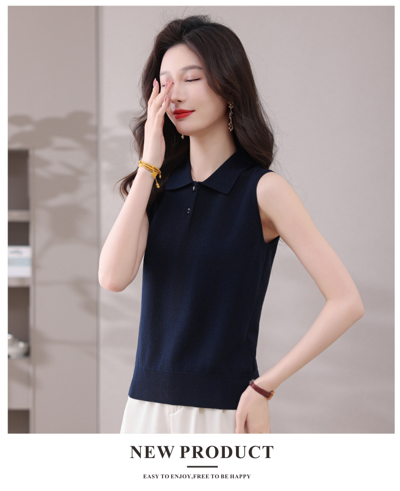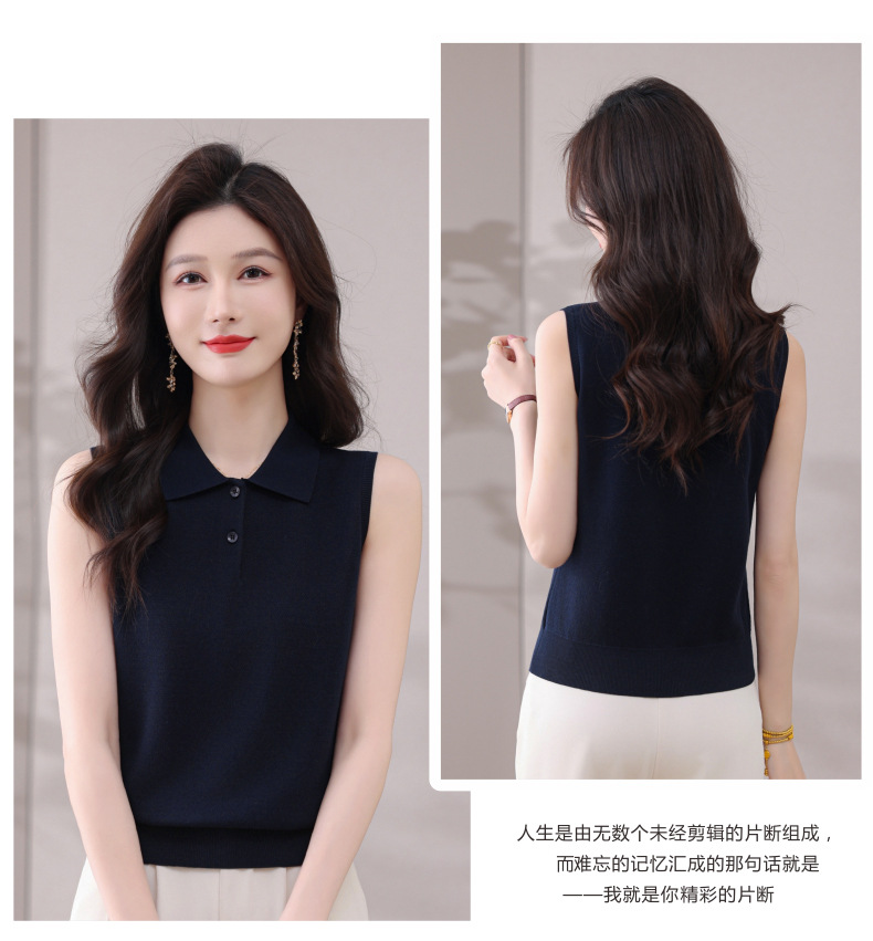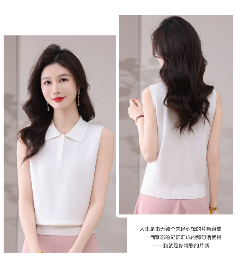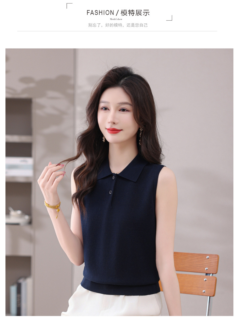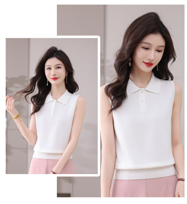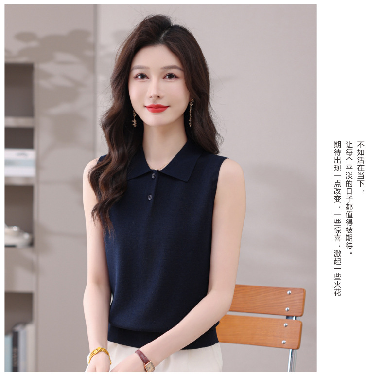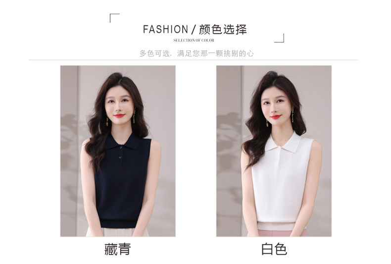 CC-101-31801纯色修身无袖针织背心女2025新款夏季薄款减龄翻领冰丝上衣T恤女