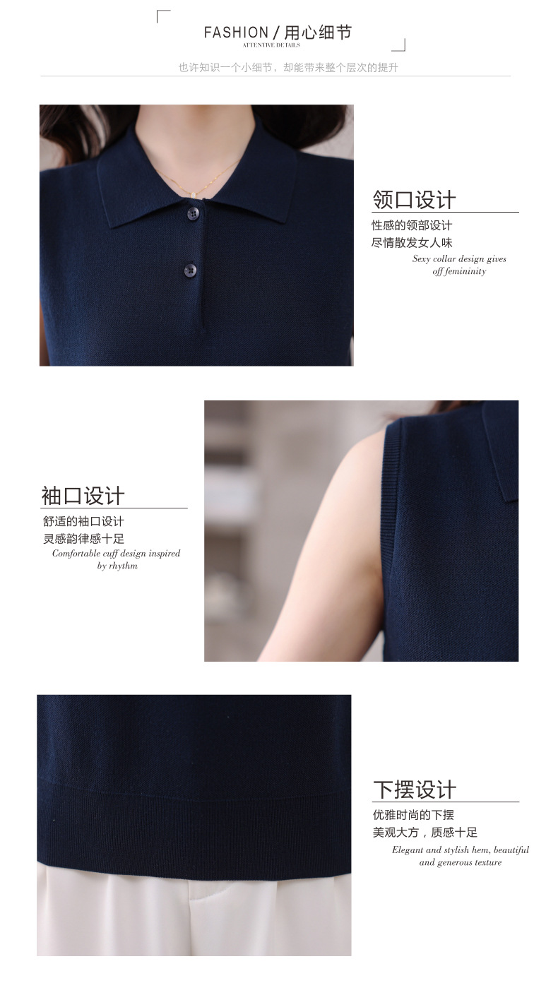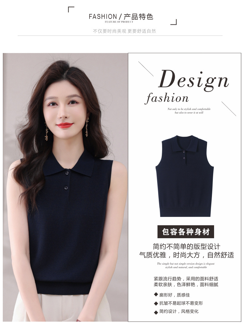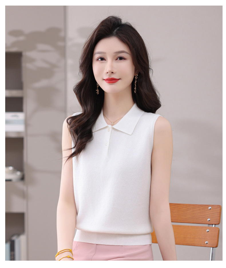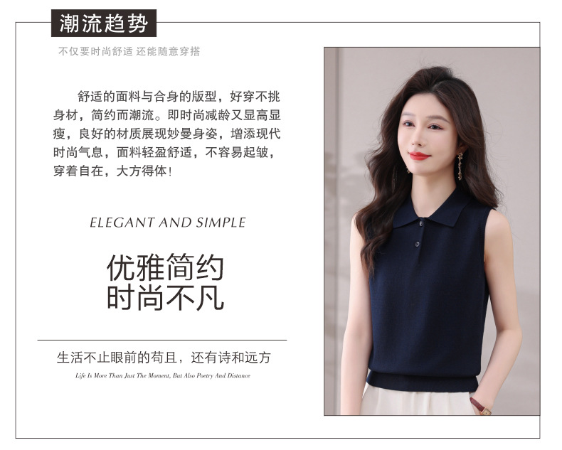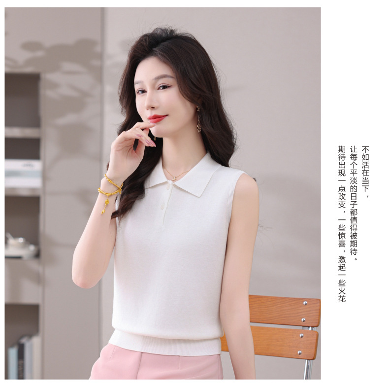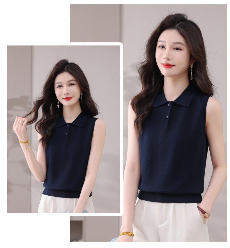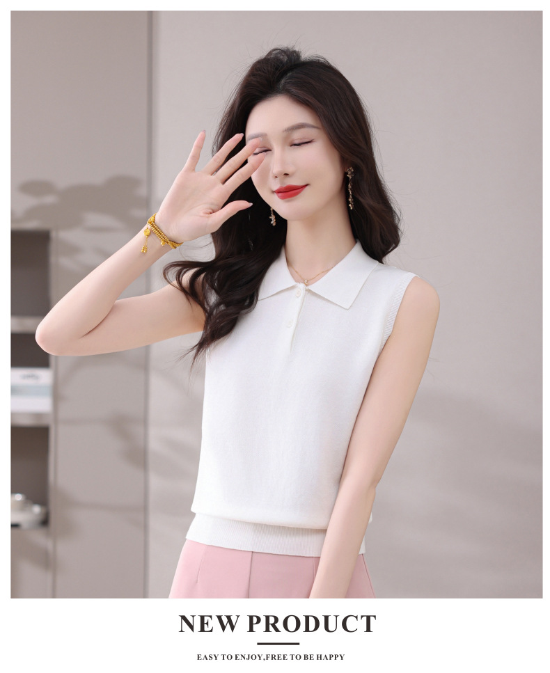 CC-101-31801纯色修身无袖针织背心女2025新款夏季薄款减龄翻领冰丝上衣T恤女