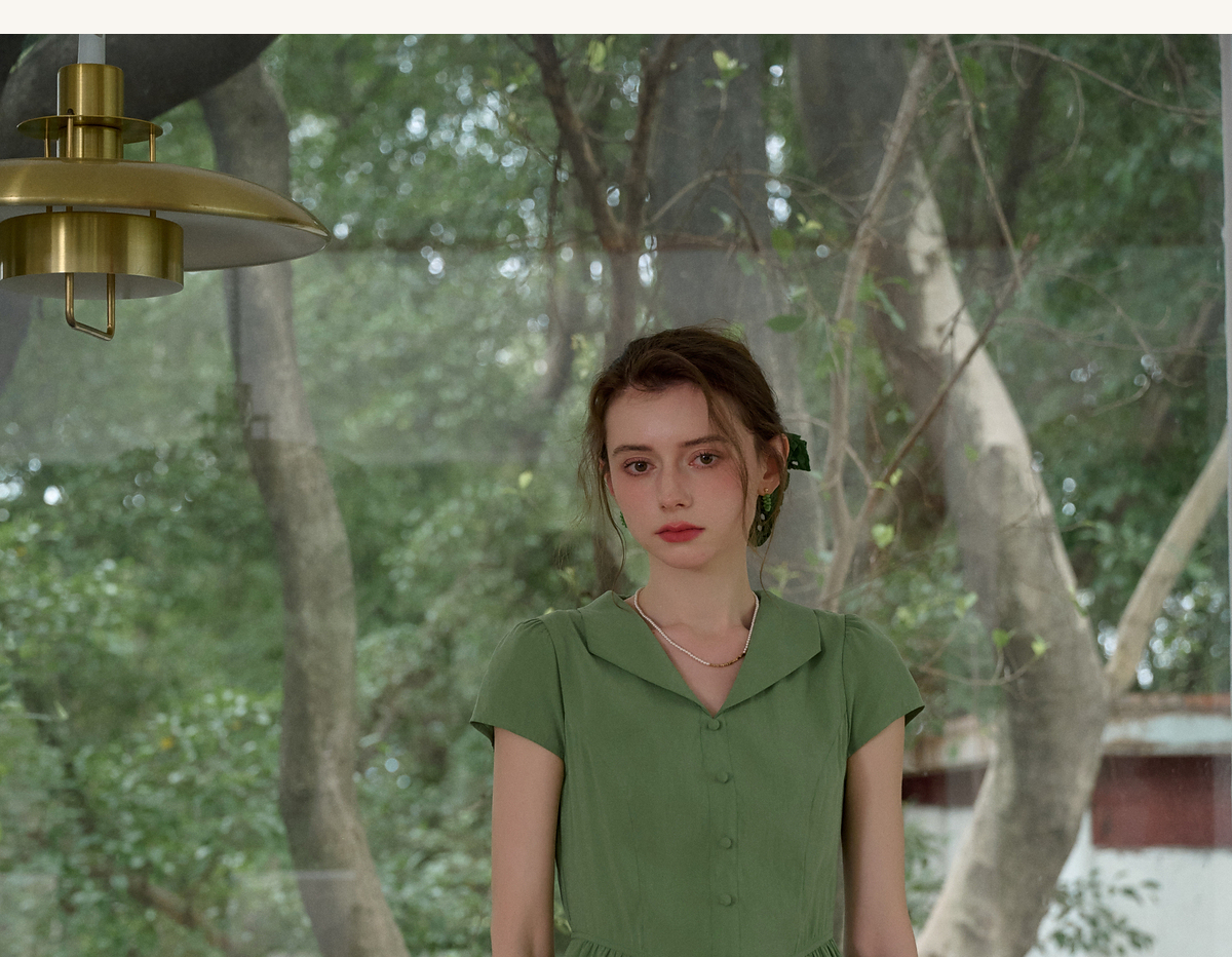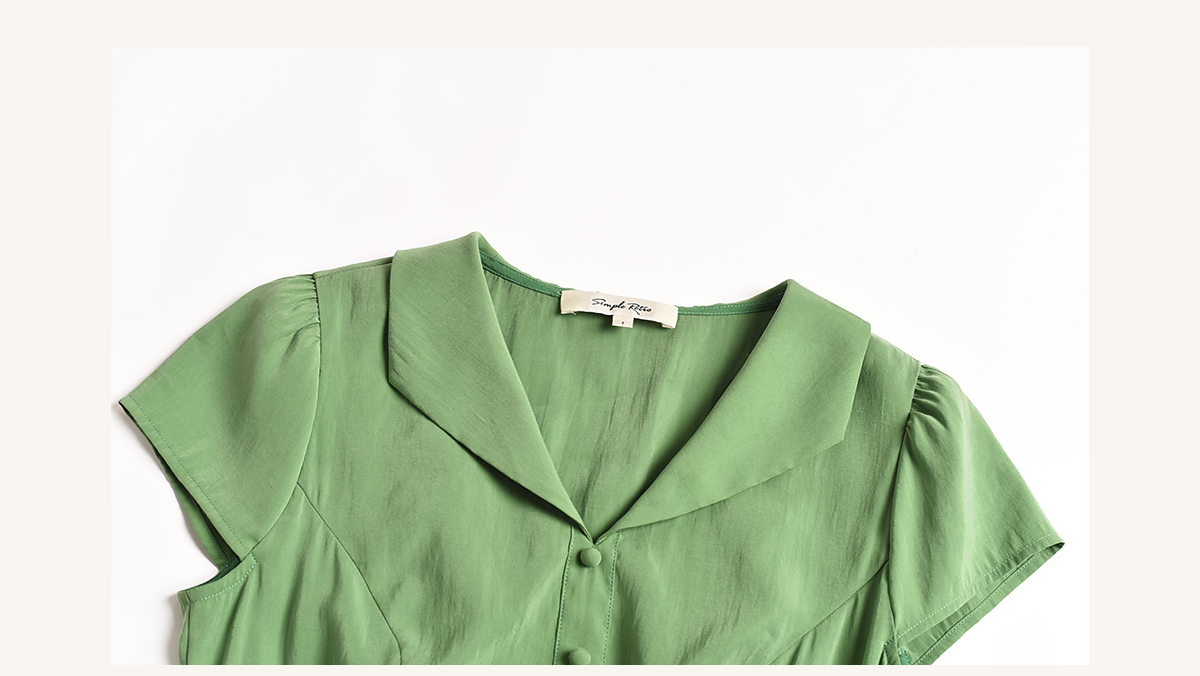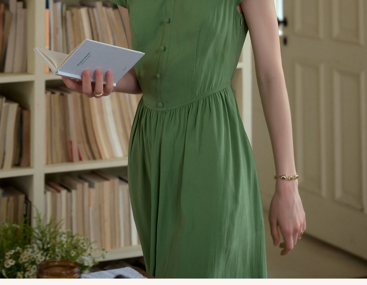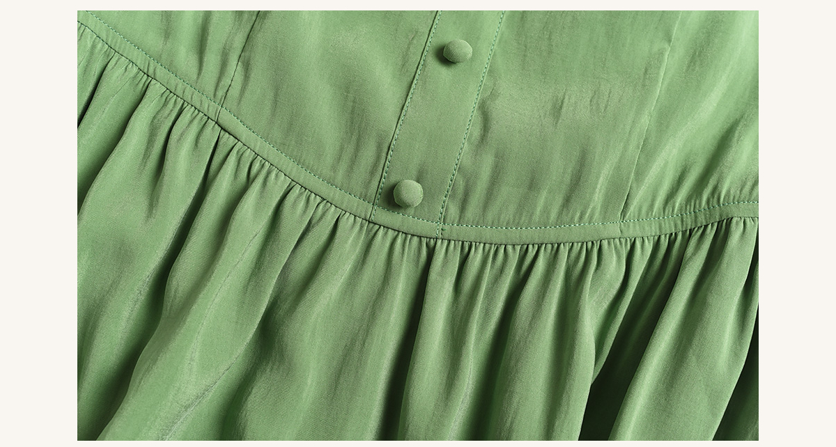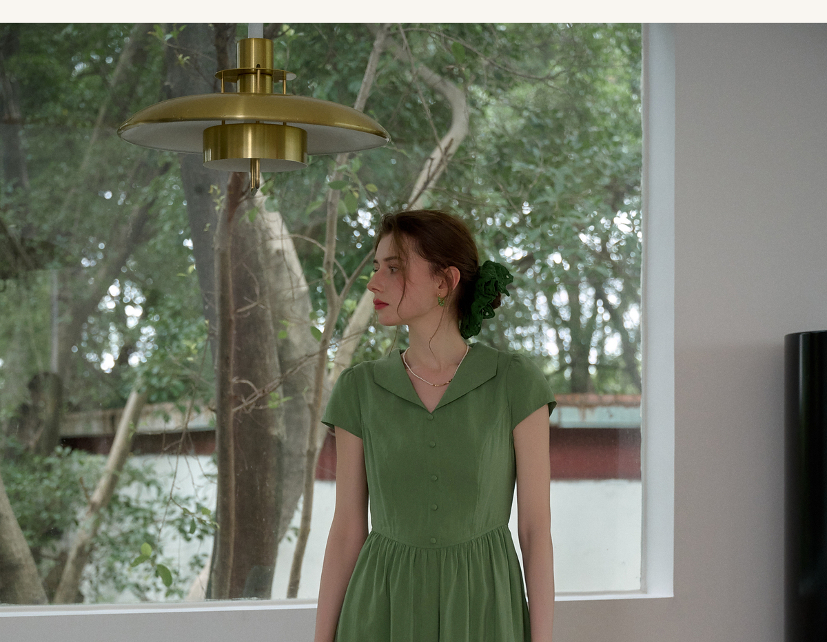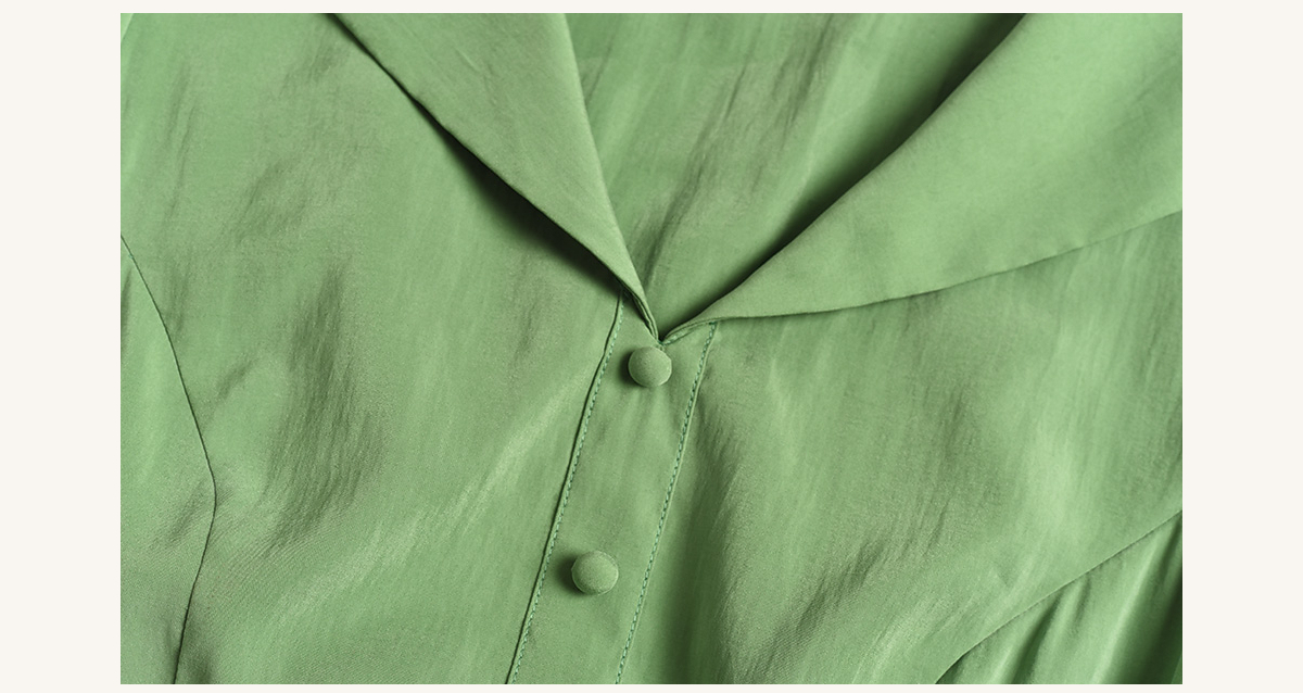 (小眠专属)SimpleRetro复古法式V领绿色连衣裙女衬衫裙