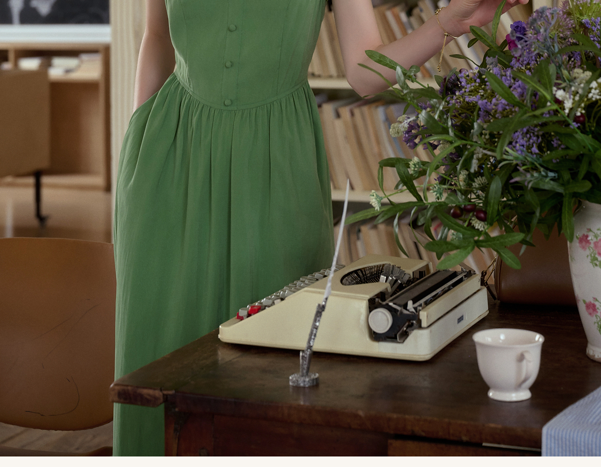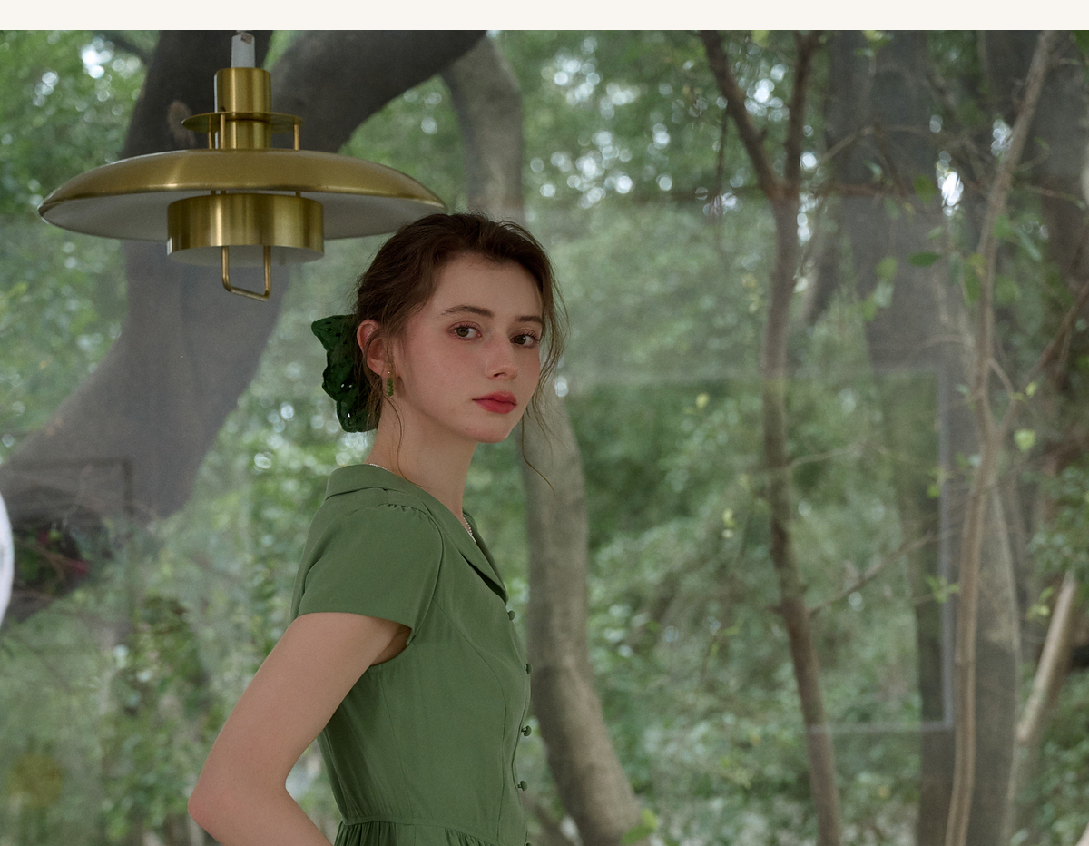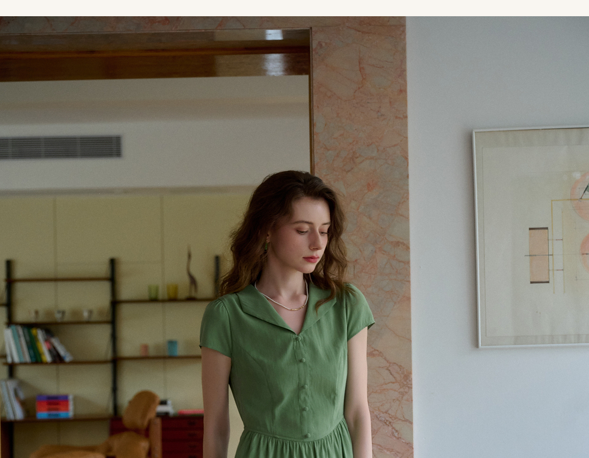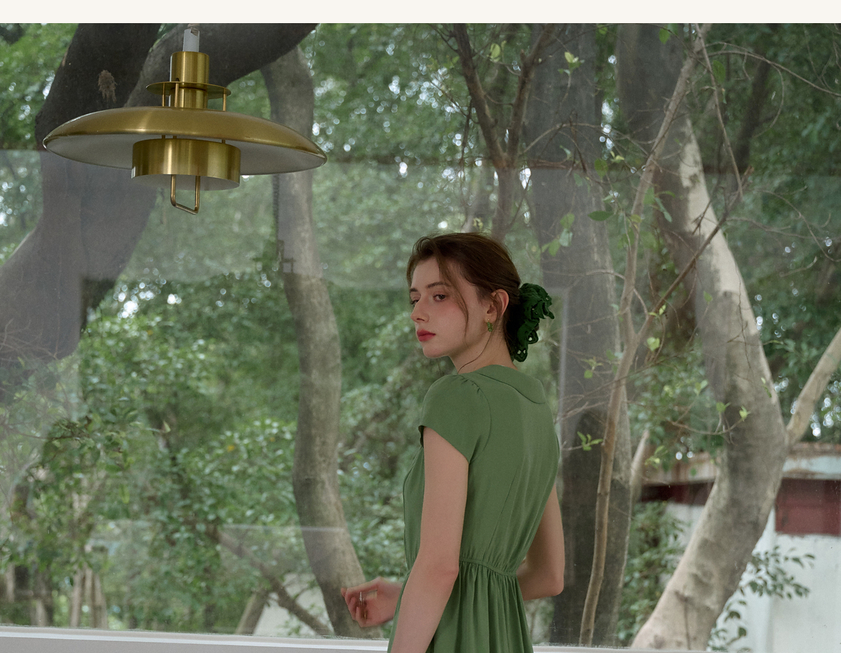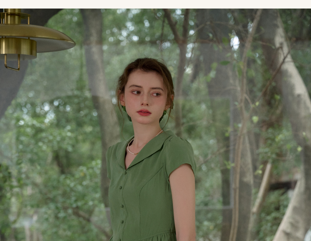 (小眠专属)SimpleRetro复古法式V领绿色连衣裙女衬衫裙