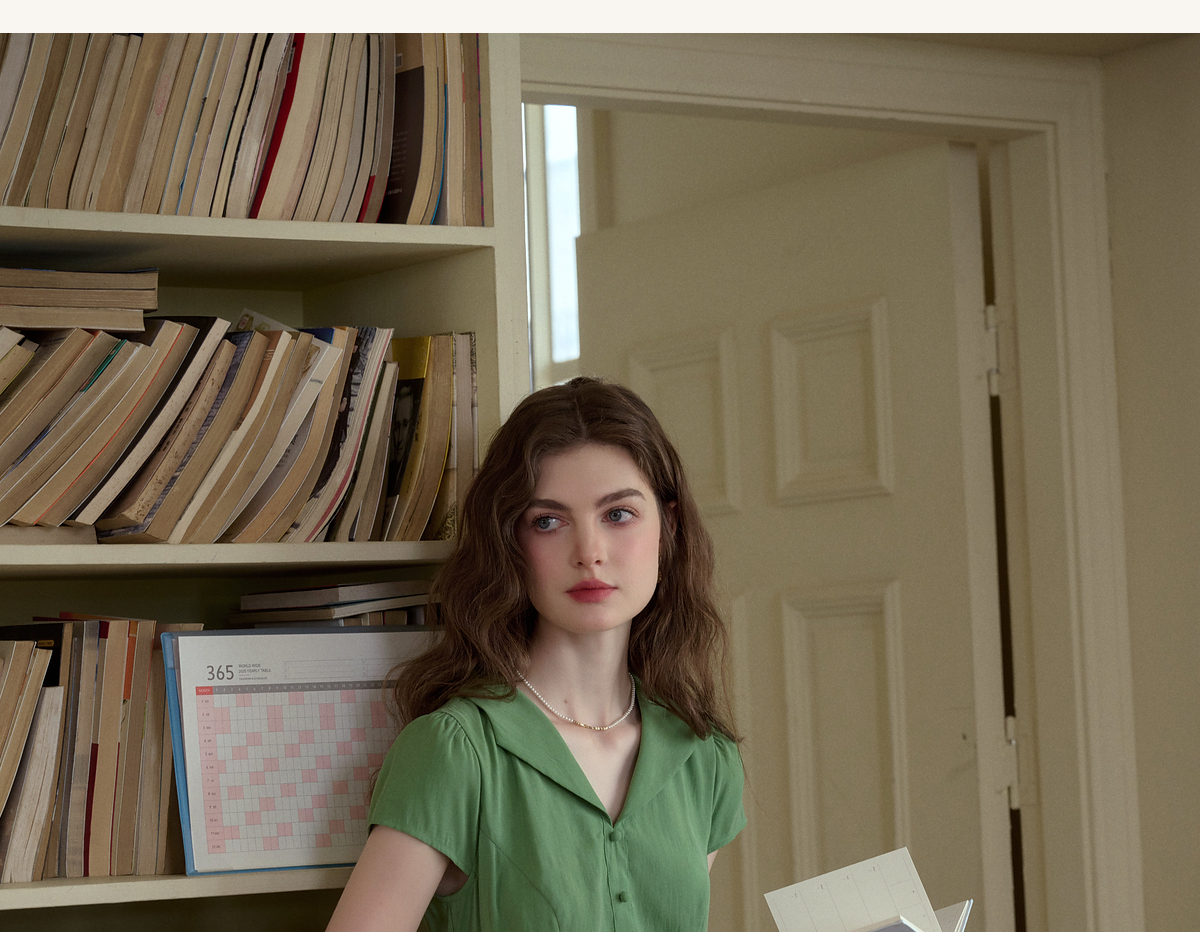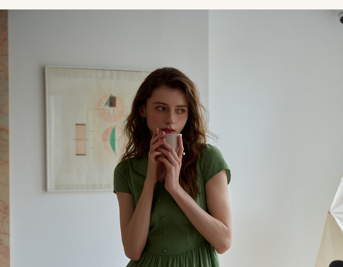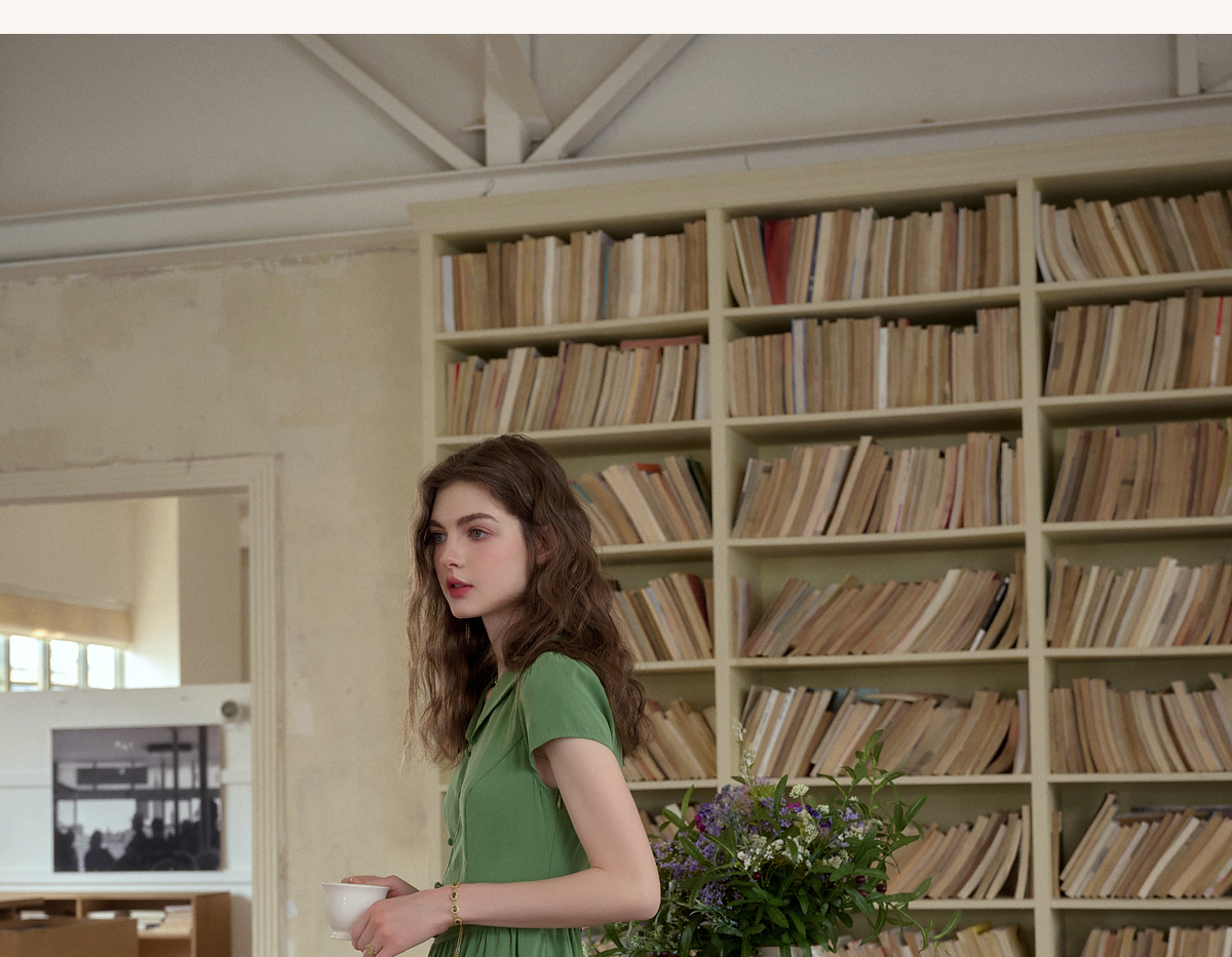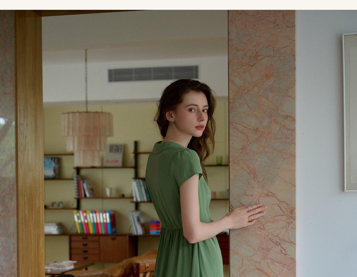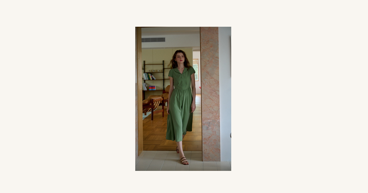 (小眠专属)SimpleRetro复古法式V领绿色连衣裙女衬衫裙