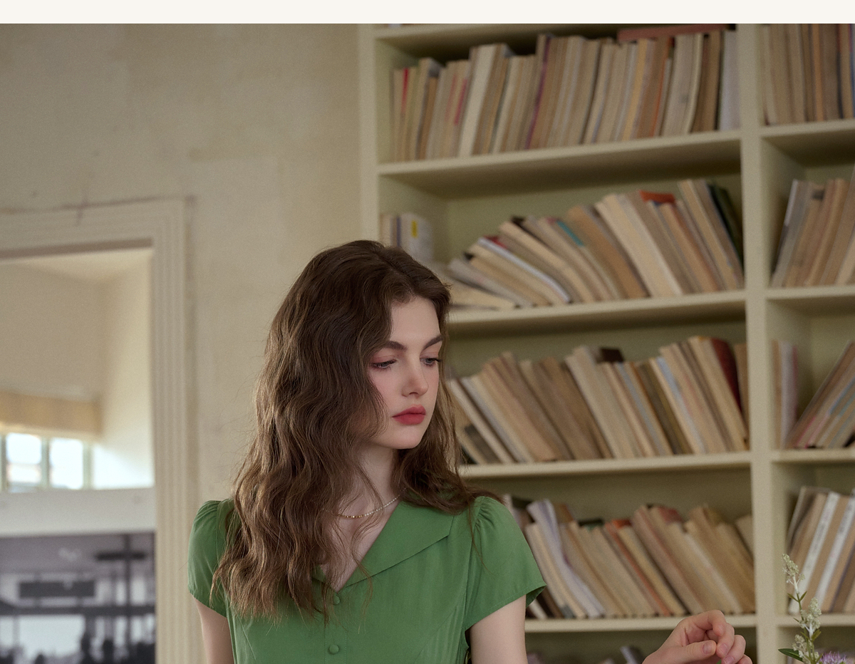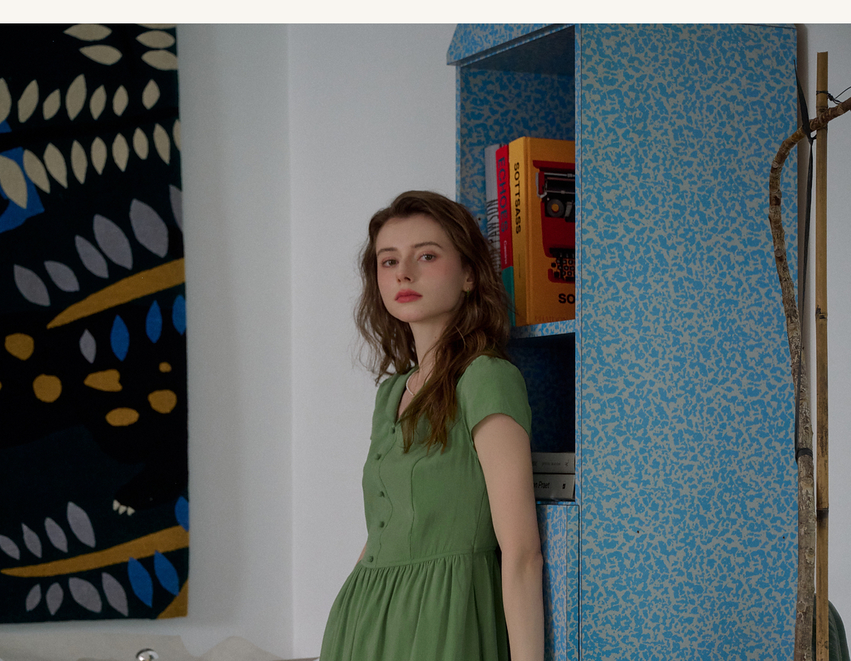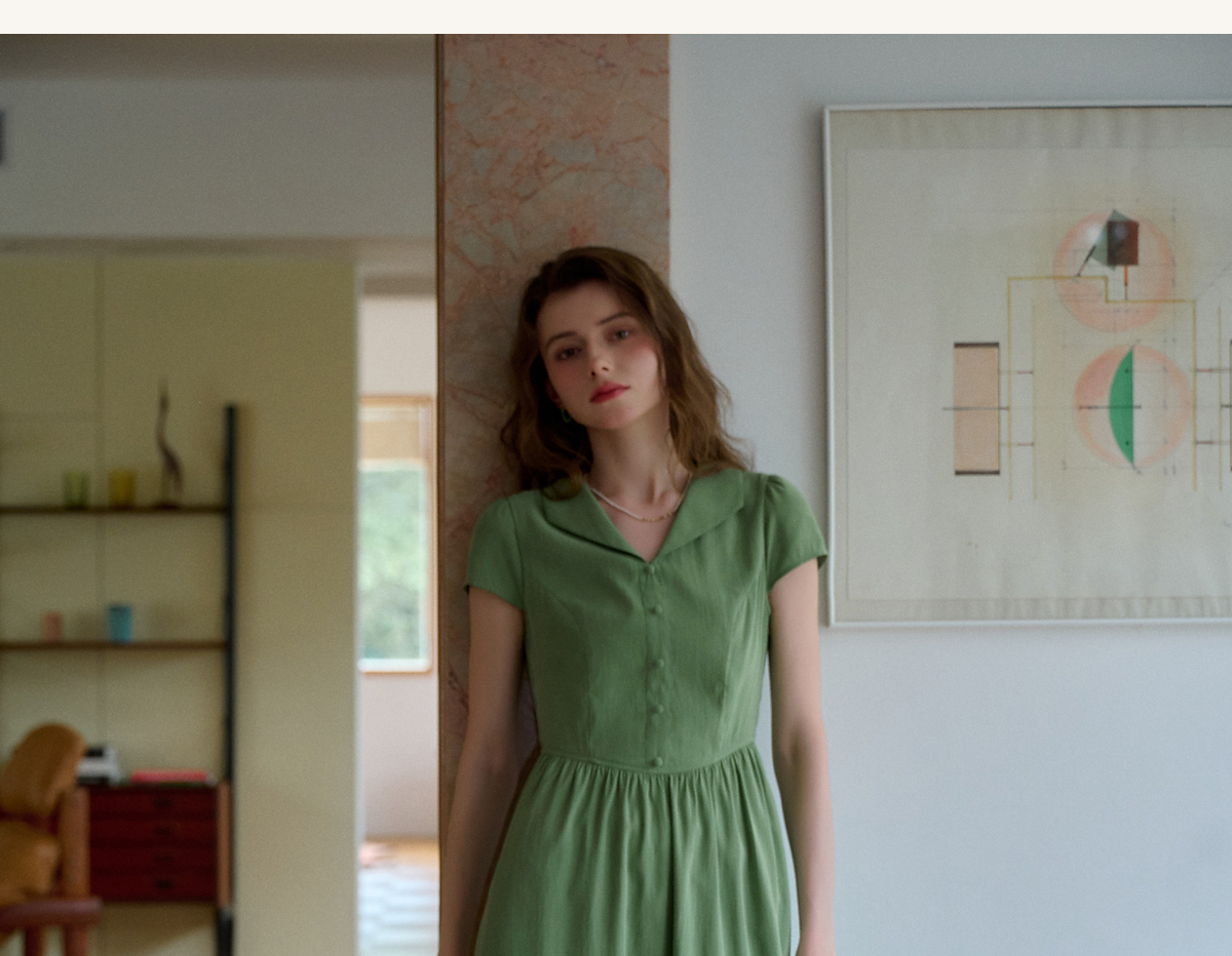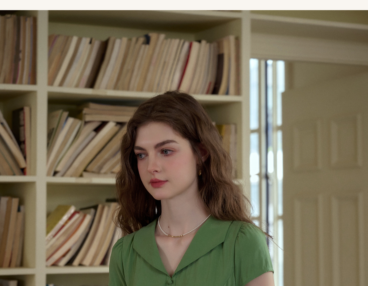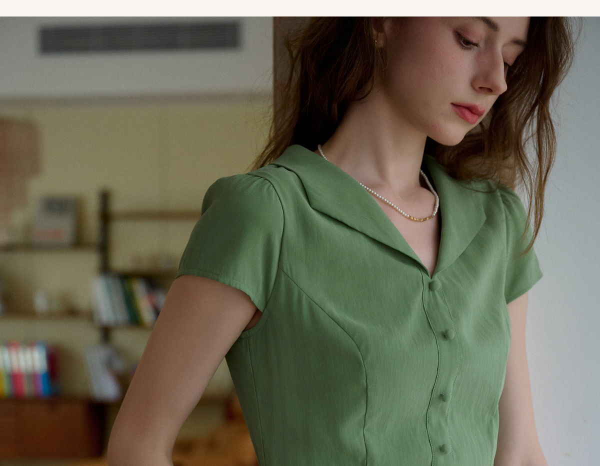 (小眠专属)SimpleRetro复古法式V领绿色连衣裙女衬衫裙