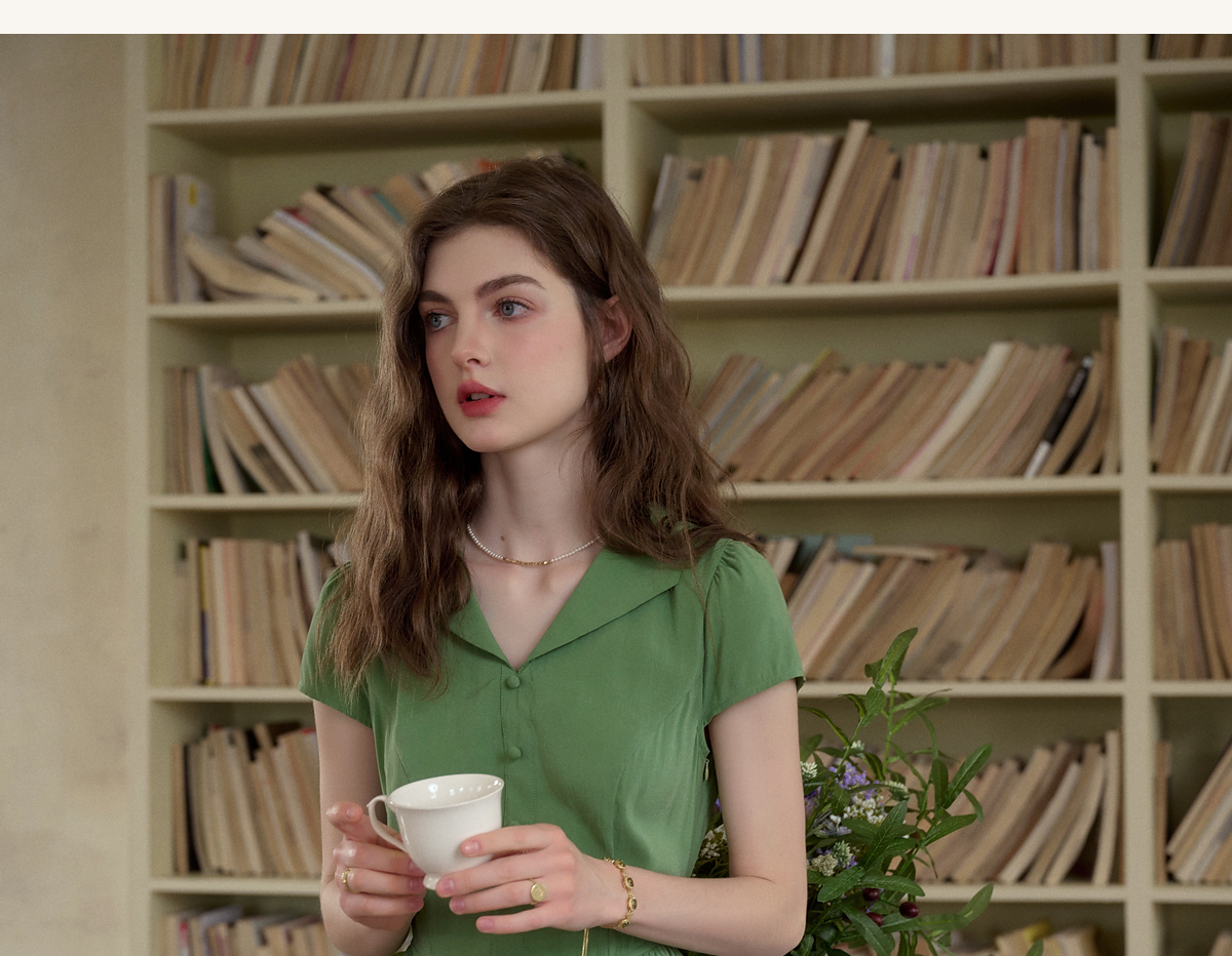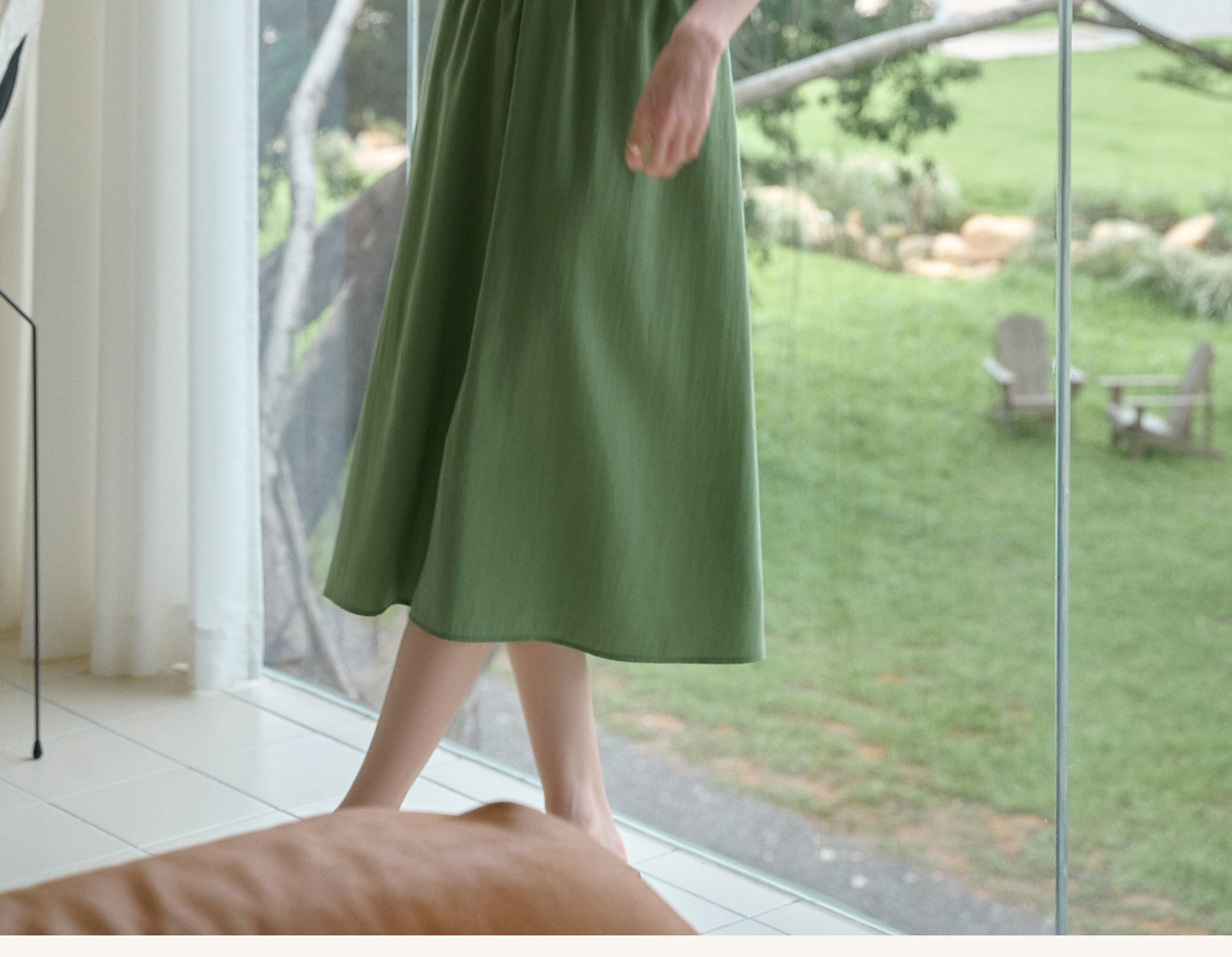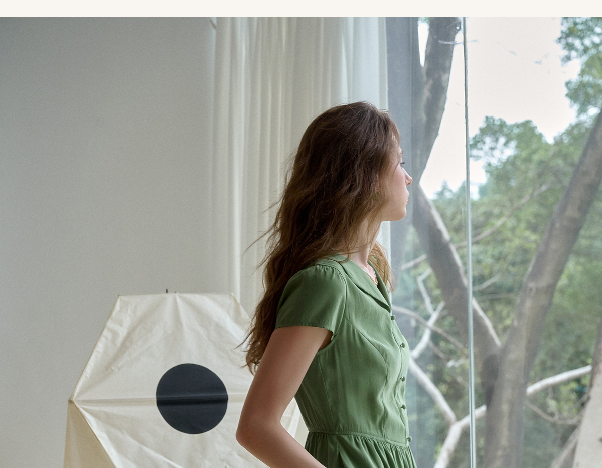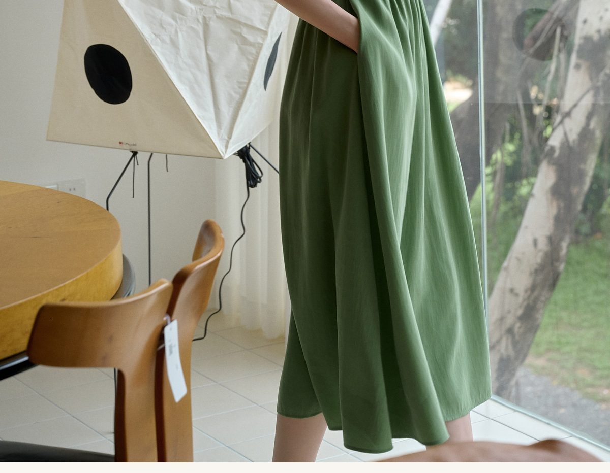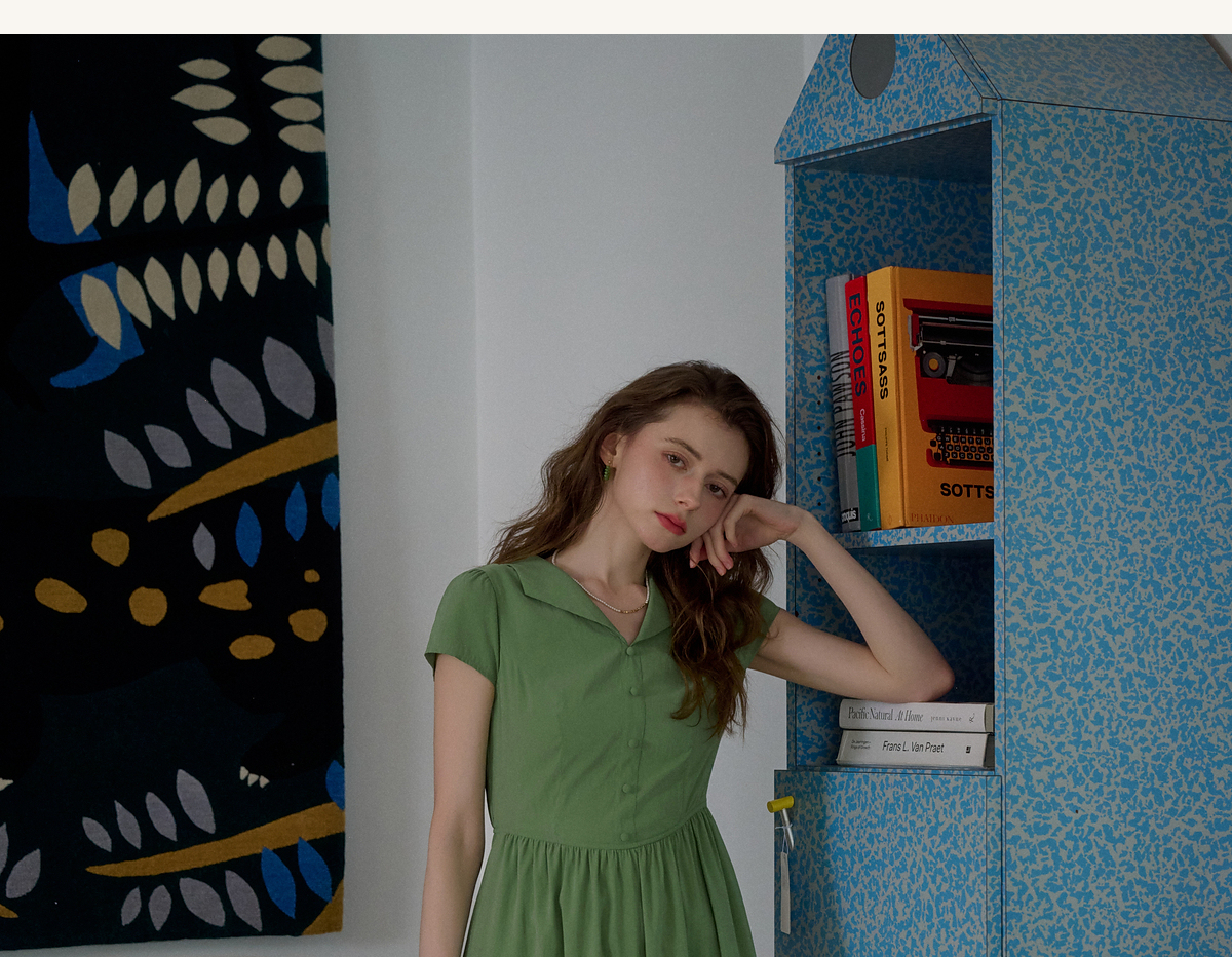 (小眠专属)SimpleRetro复古法式V领绿色连衣裙女衬衫裙