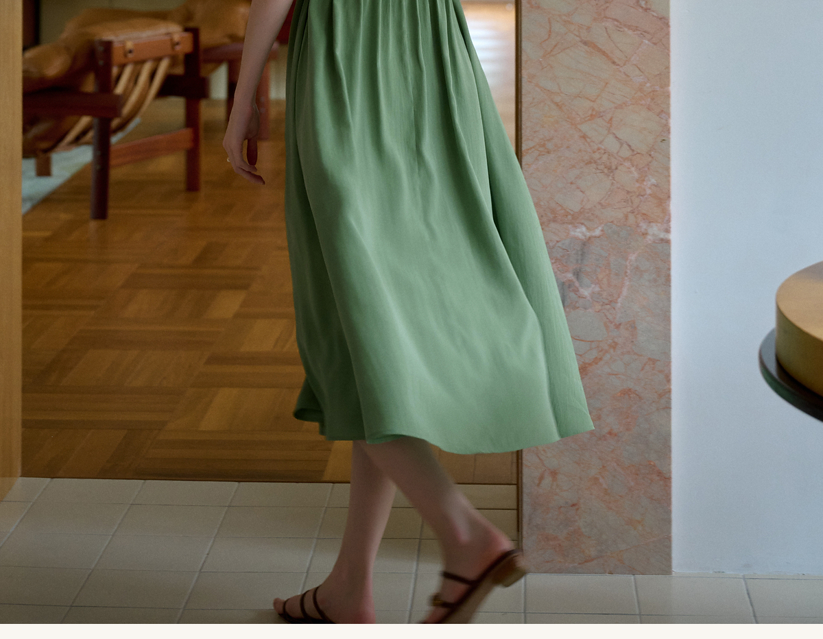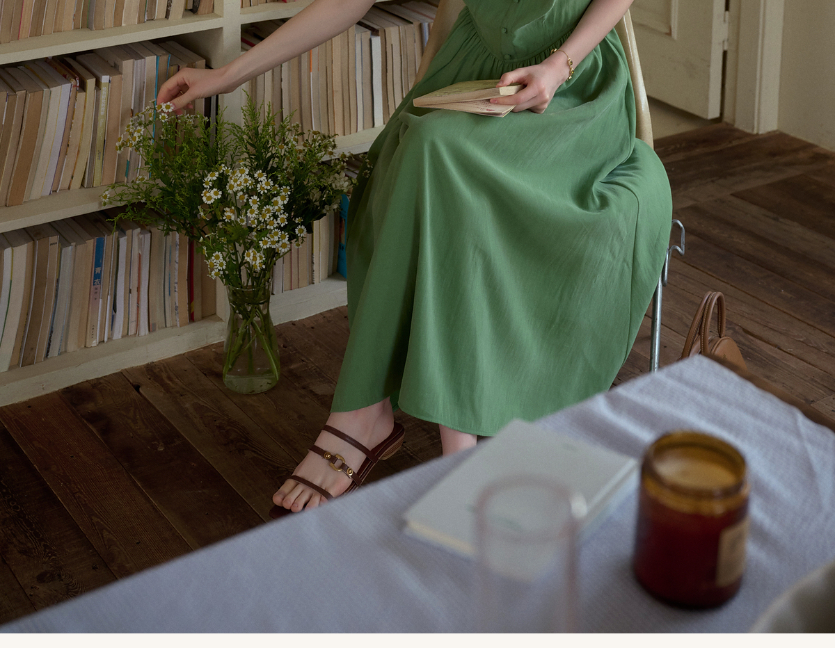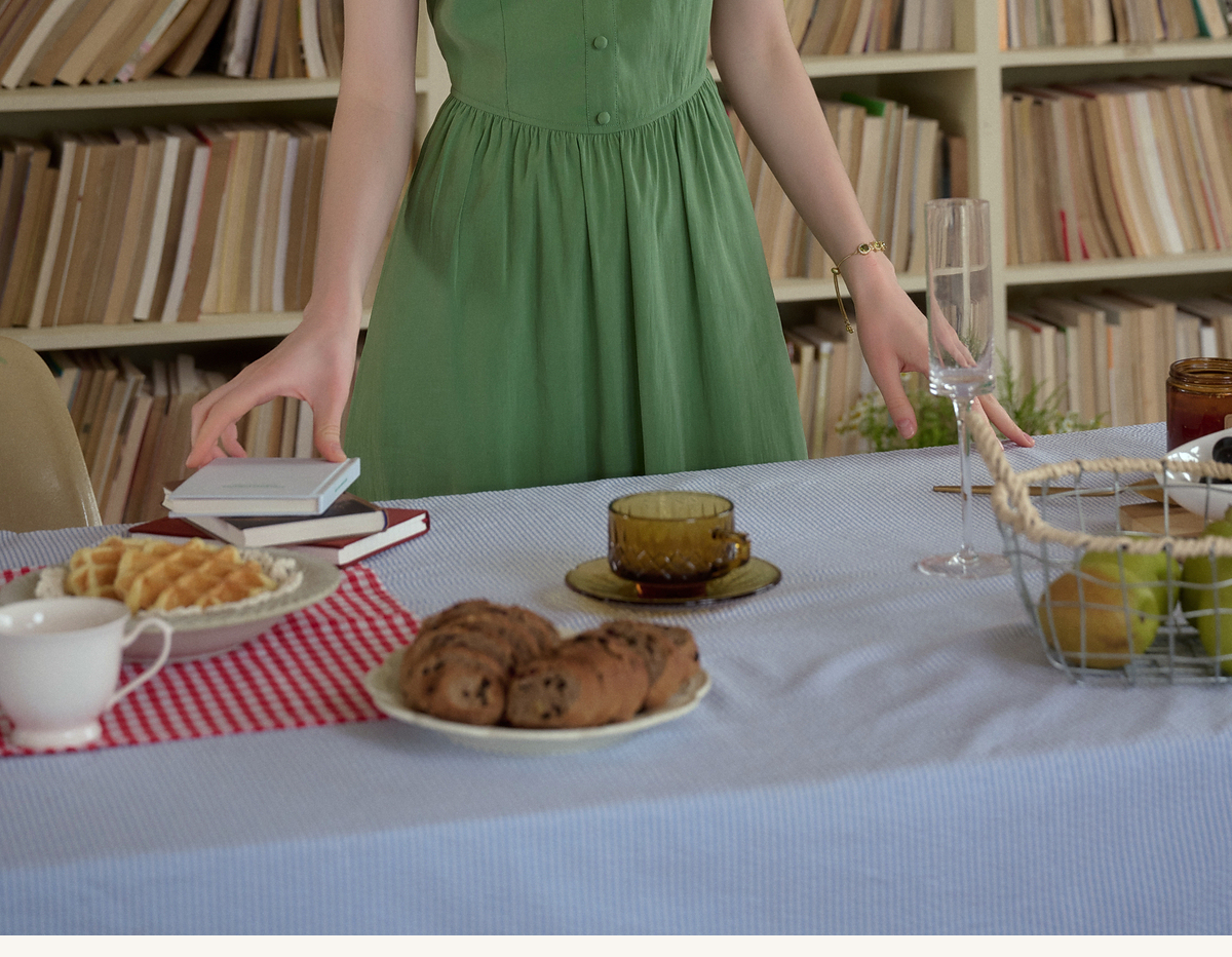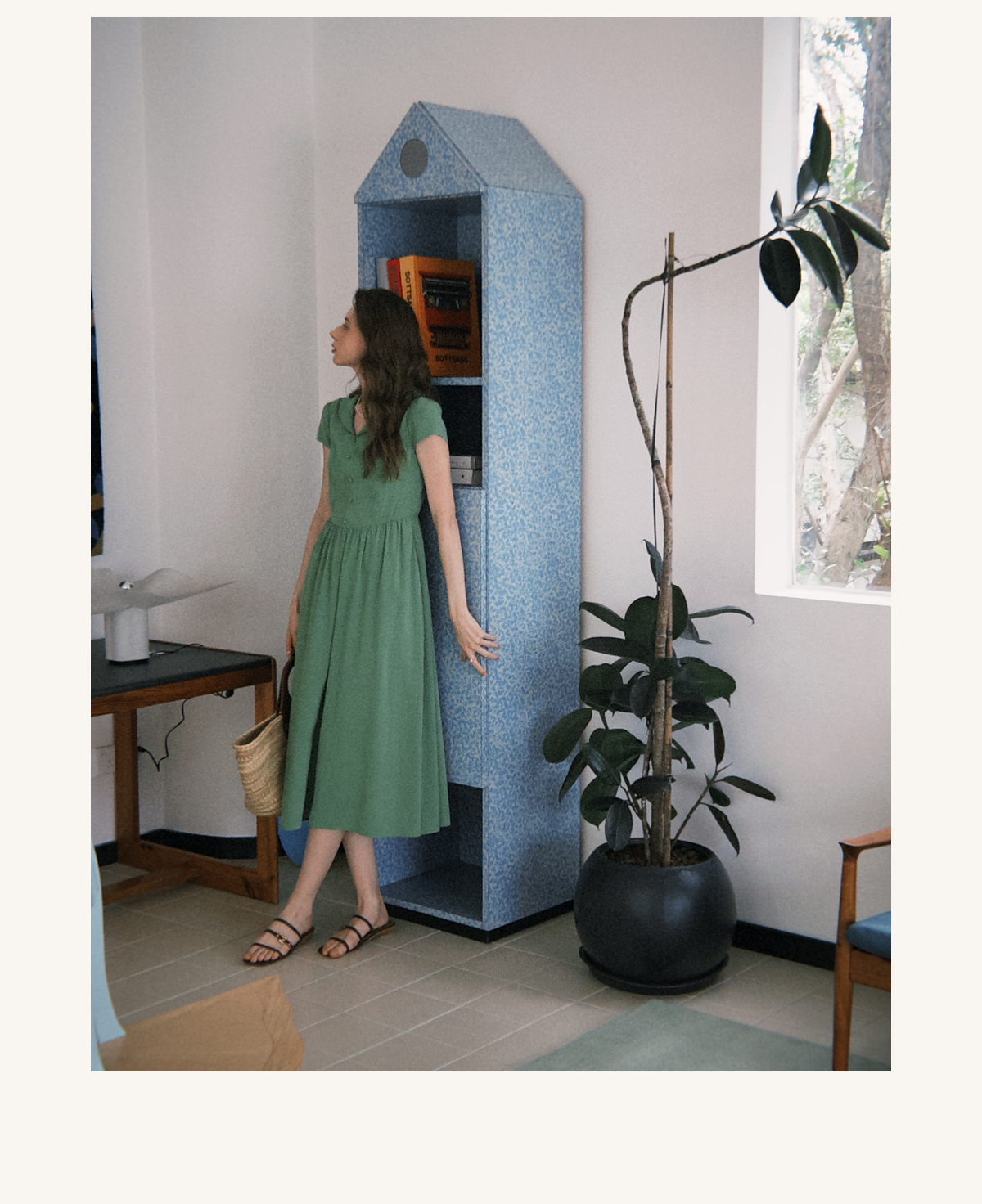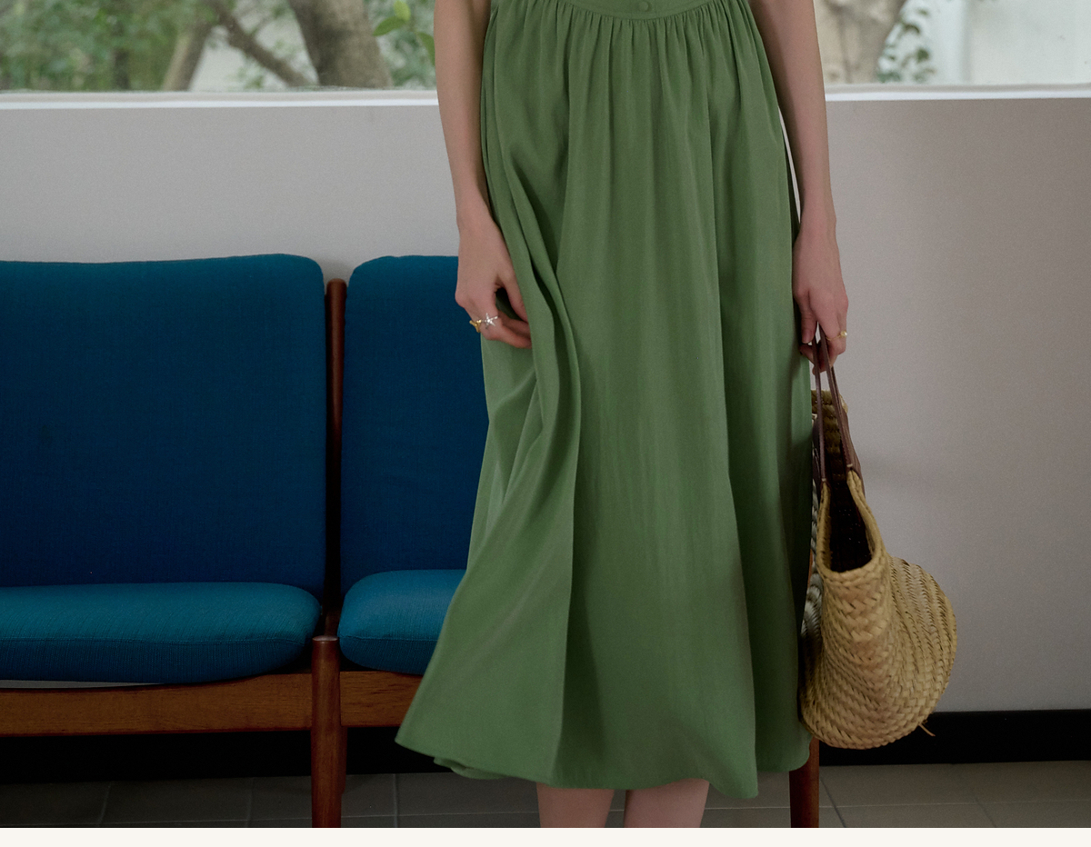 (小眠专属)SimpleRetro复古法式V领绿色连衣裙女衬衫裙