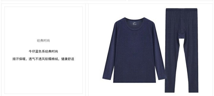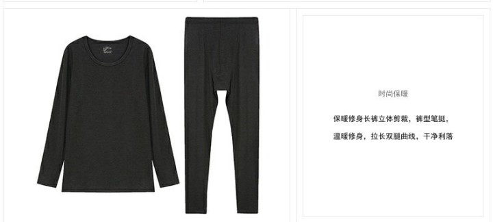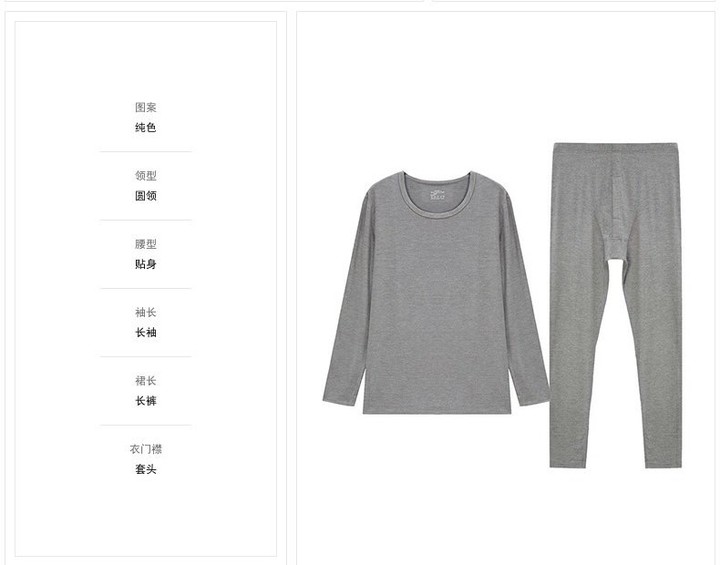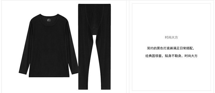 百货世界-夏娃的诱惑无痕保暖内衣套装男秋衣秋裤薄款套头纯色内搭保暖套装