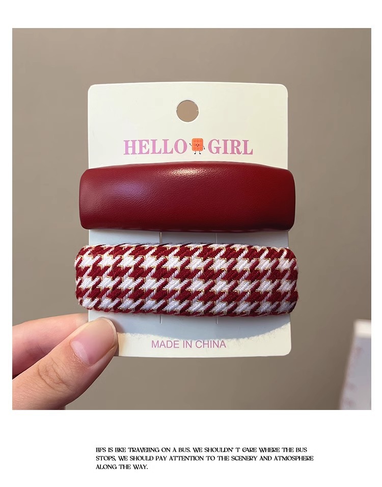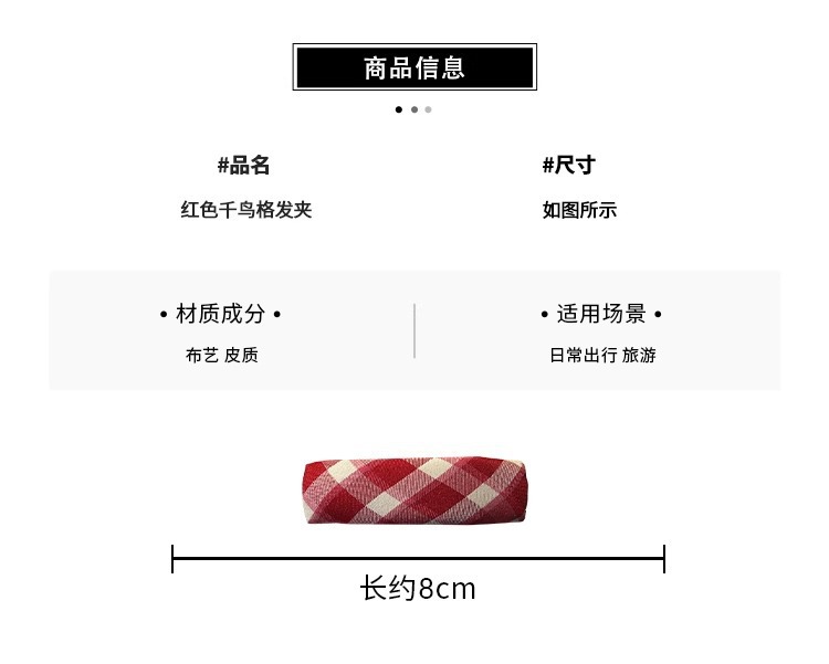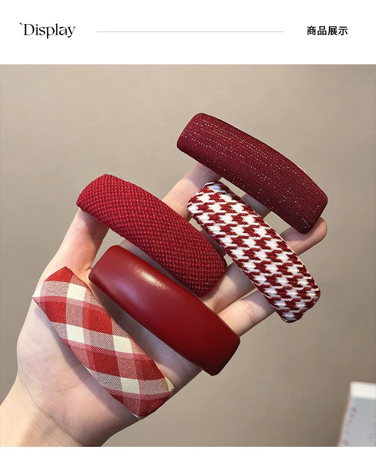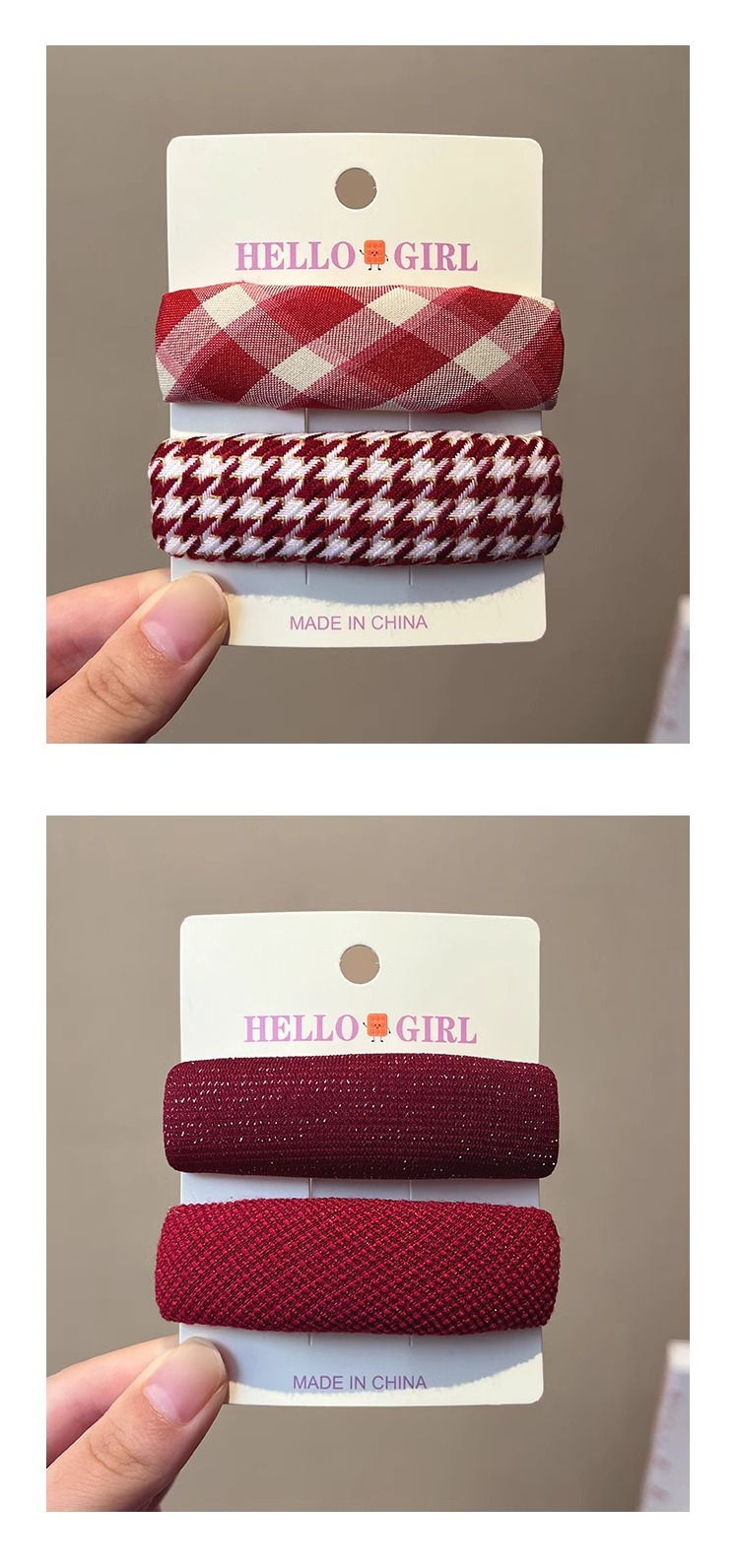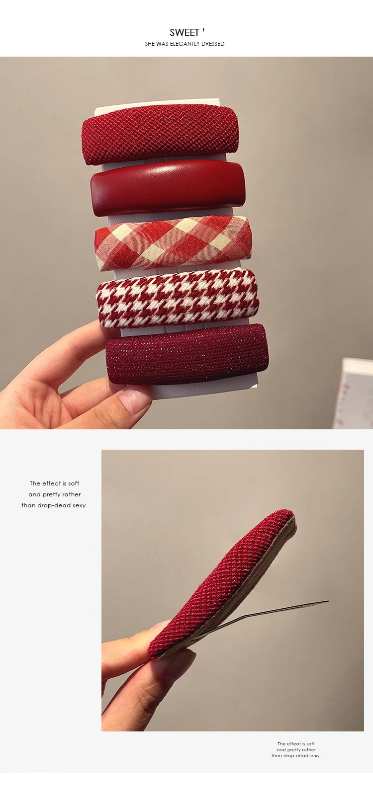 丁摩 【5个装】红色格纹海绵布艺发夹碎发刘海夹高级感侧边发卡头饰女5ZF-1211