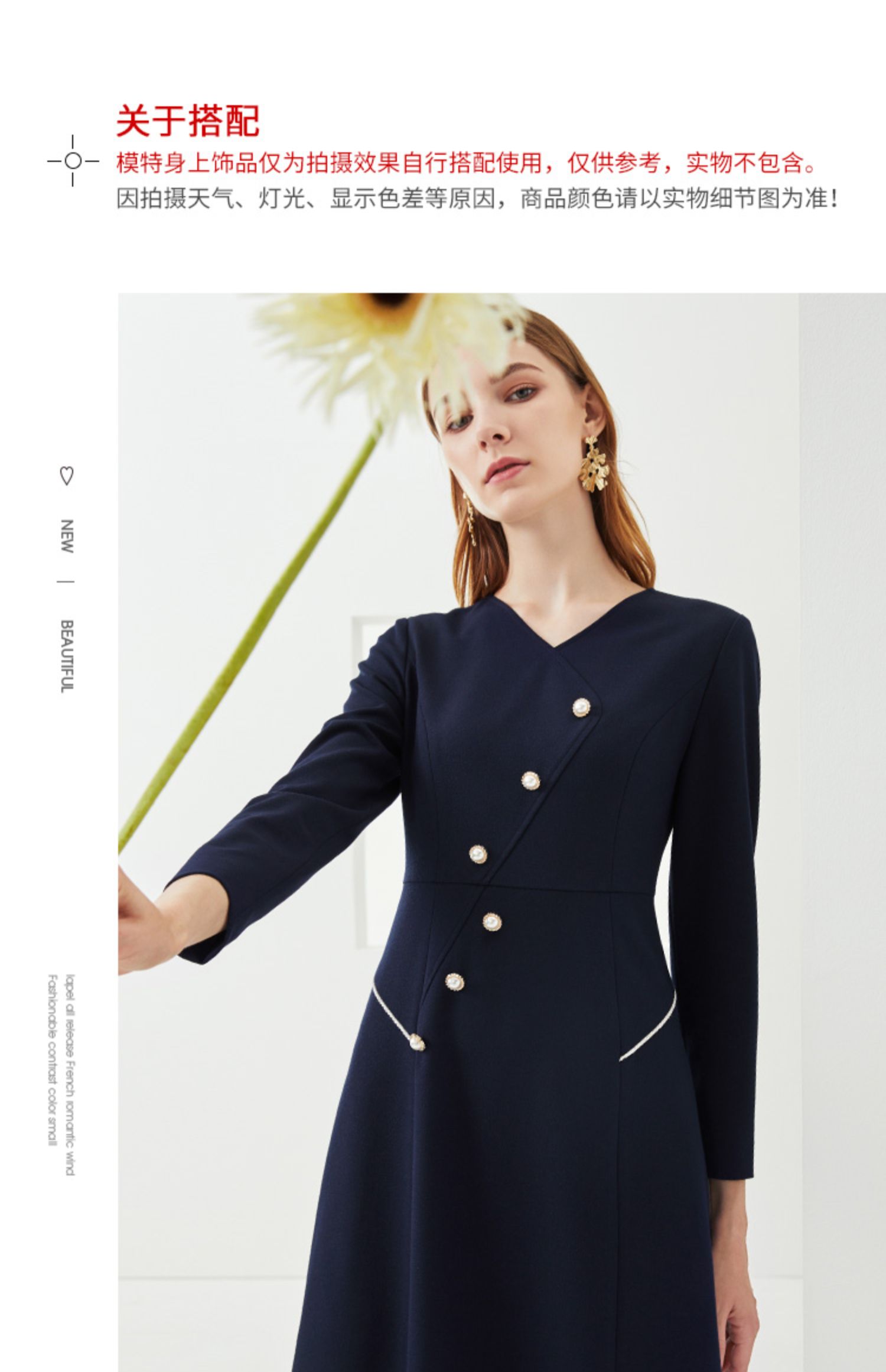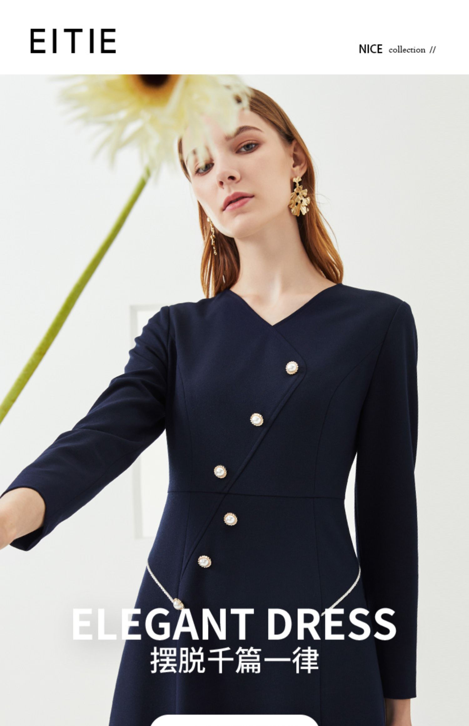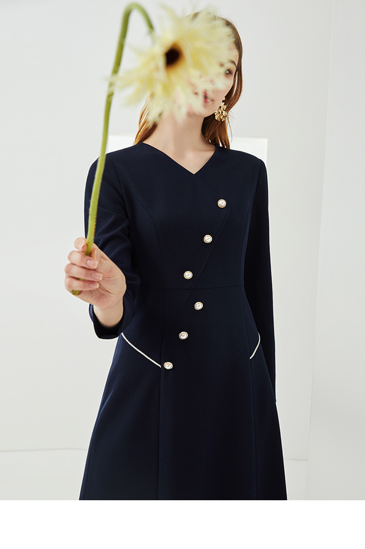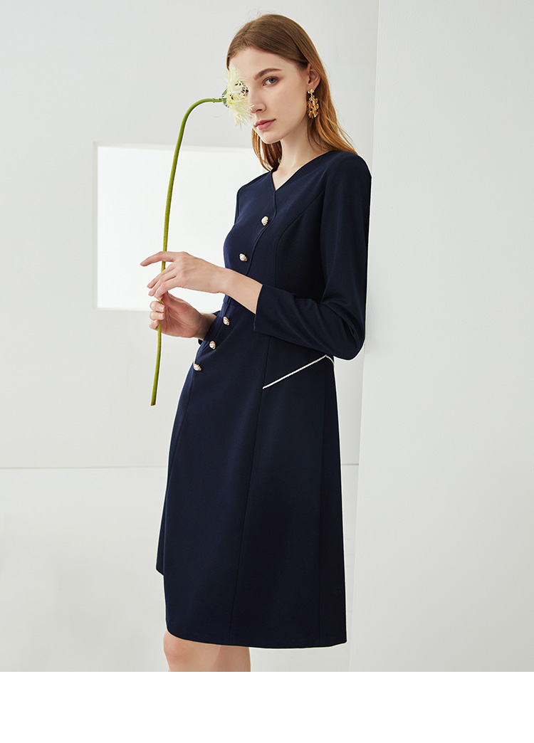 EITIE爱特爱新款洋气V领时尚纽扣收腰A字显瘦百搭连衣裙C2107832