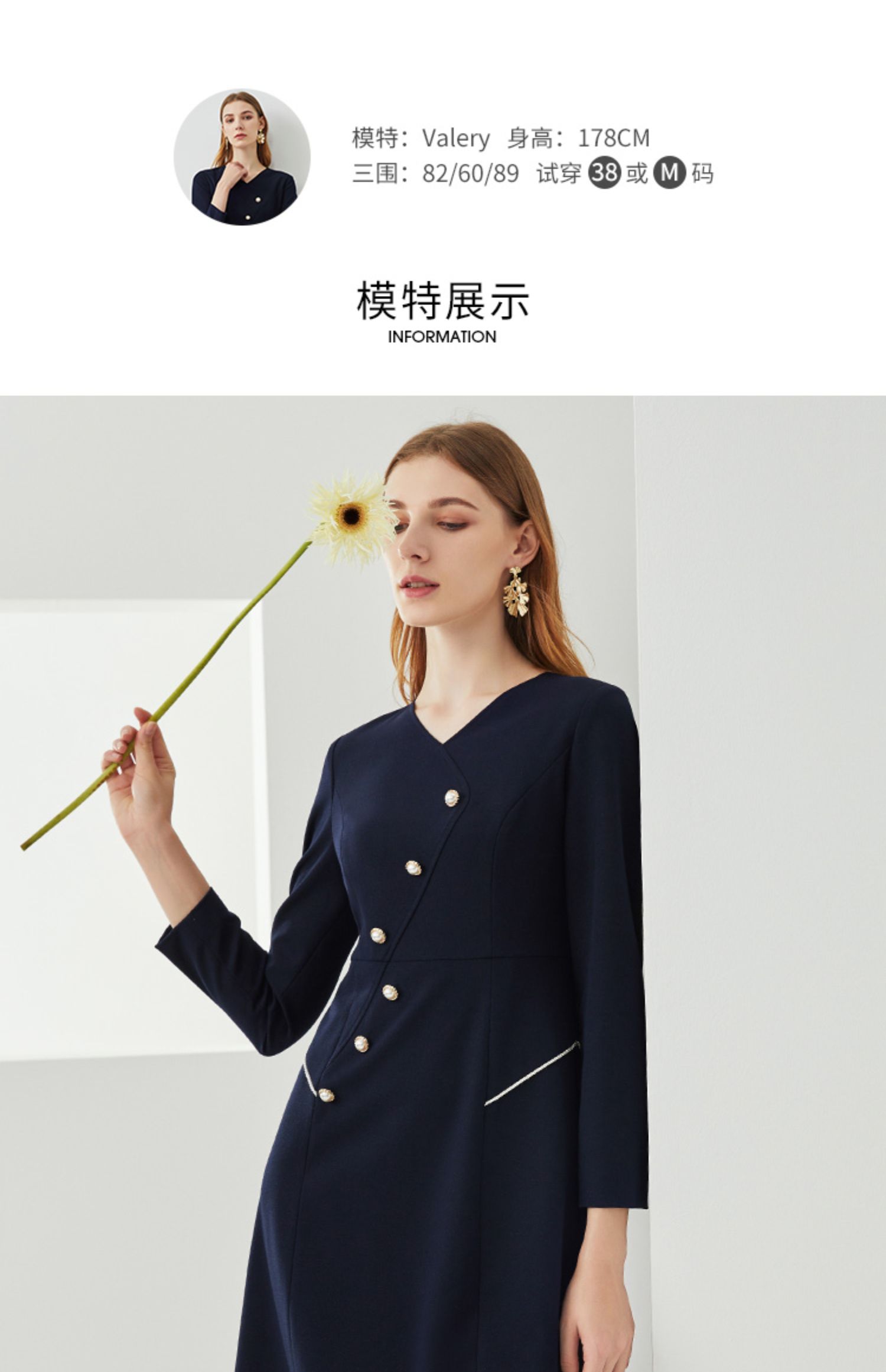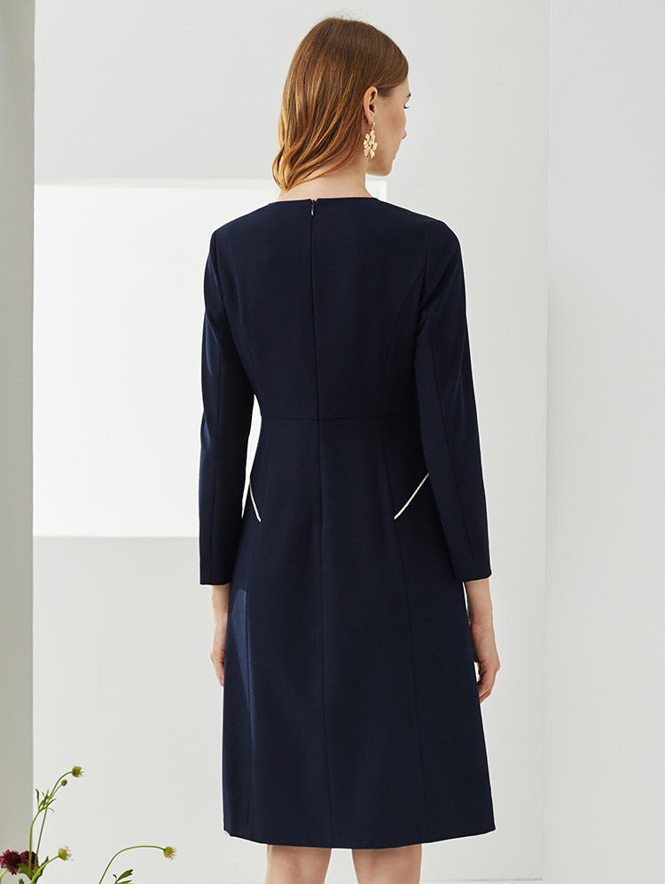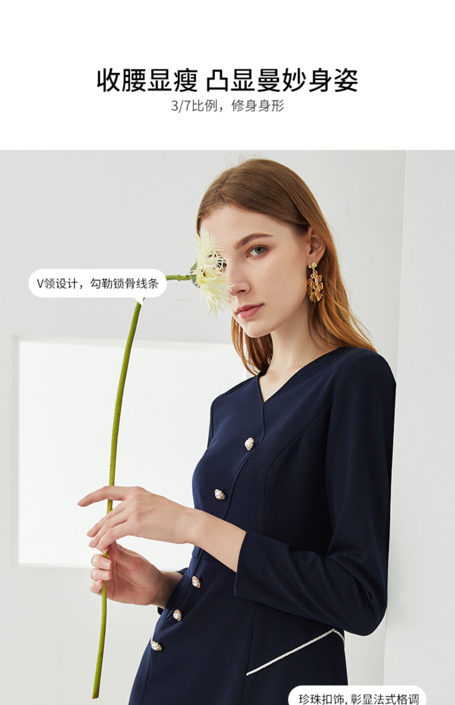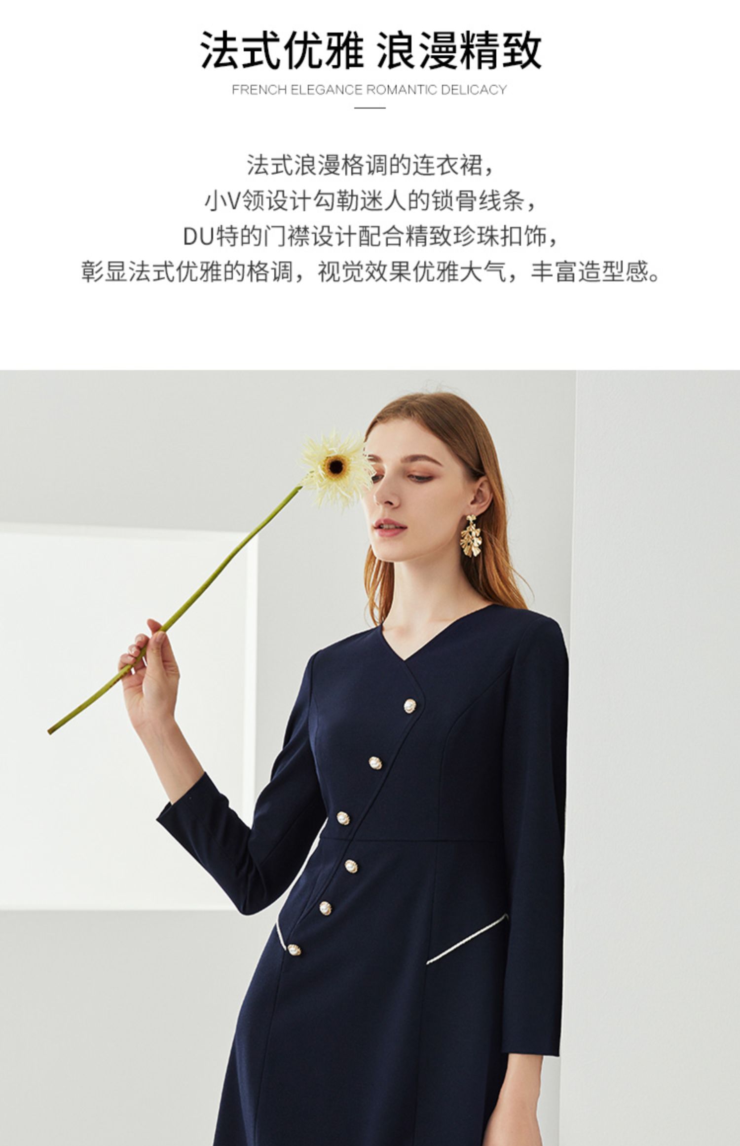 EITIE爱特爱新款洋气V领时尚纽扣收腰A字显瘦百搭连衣裙C2107832