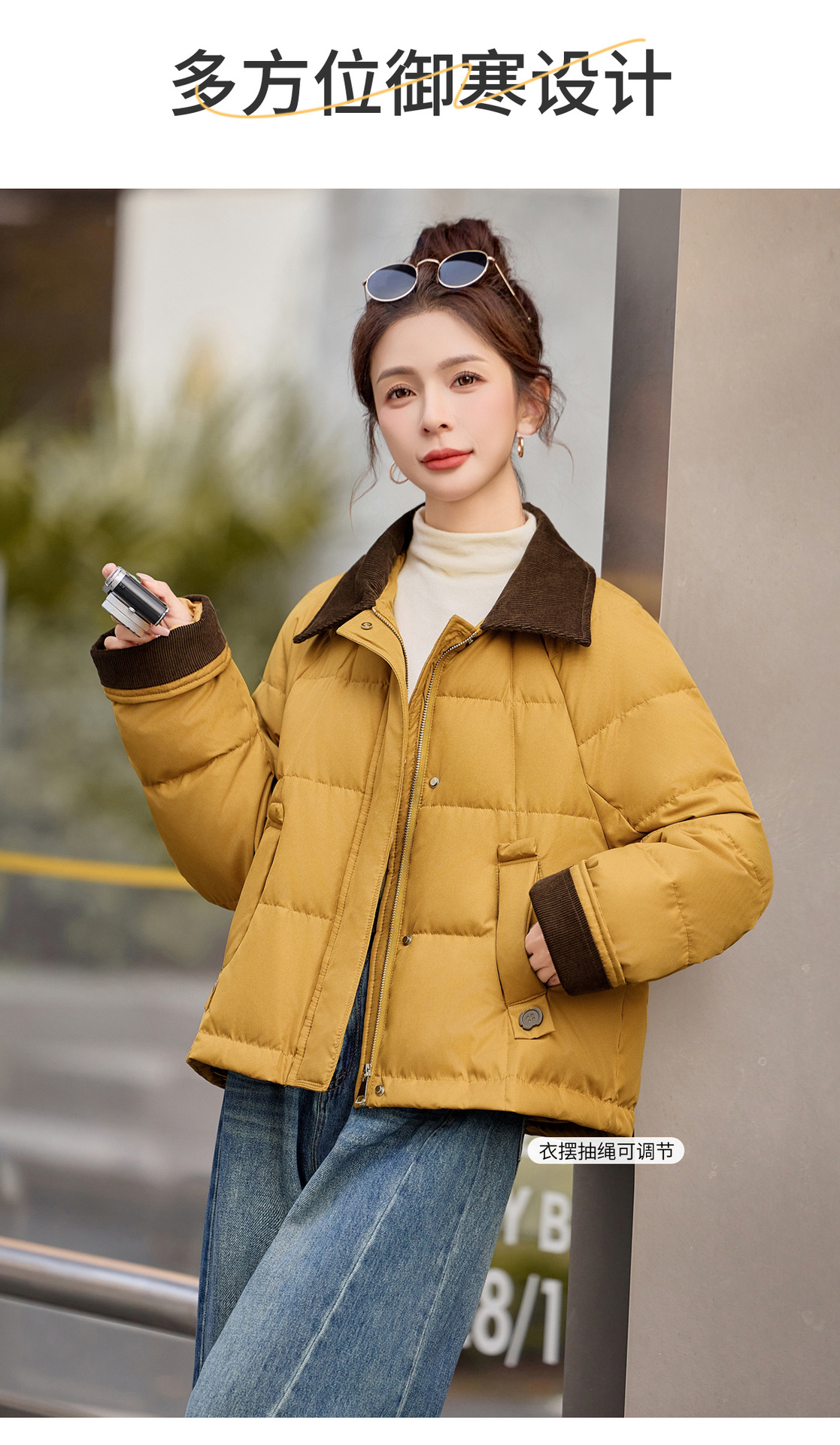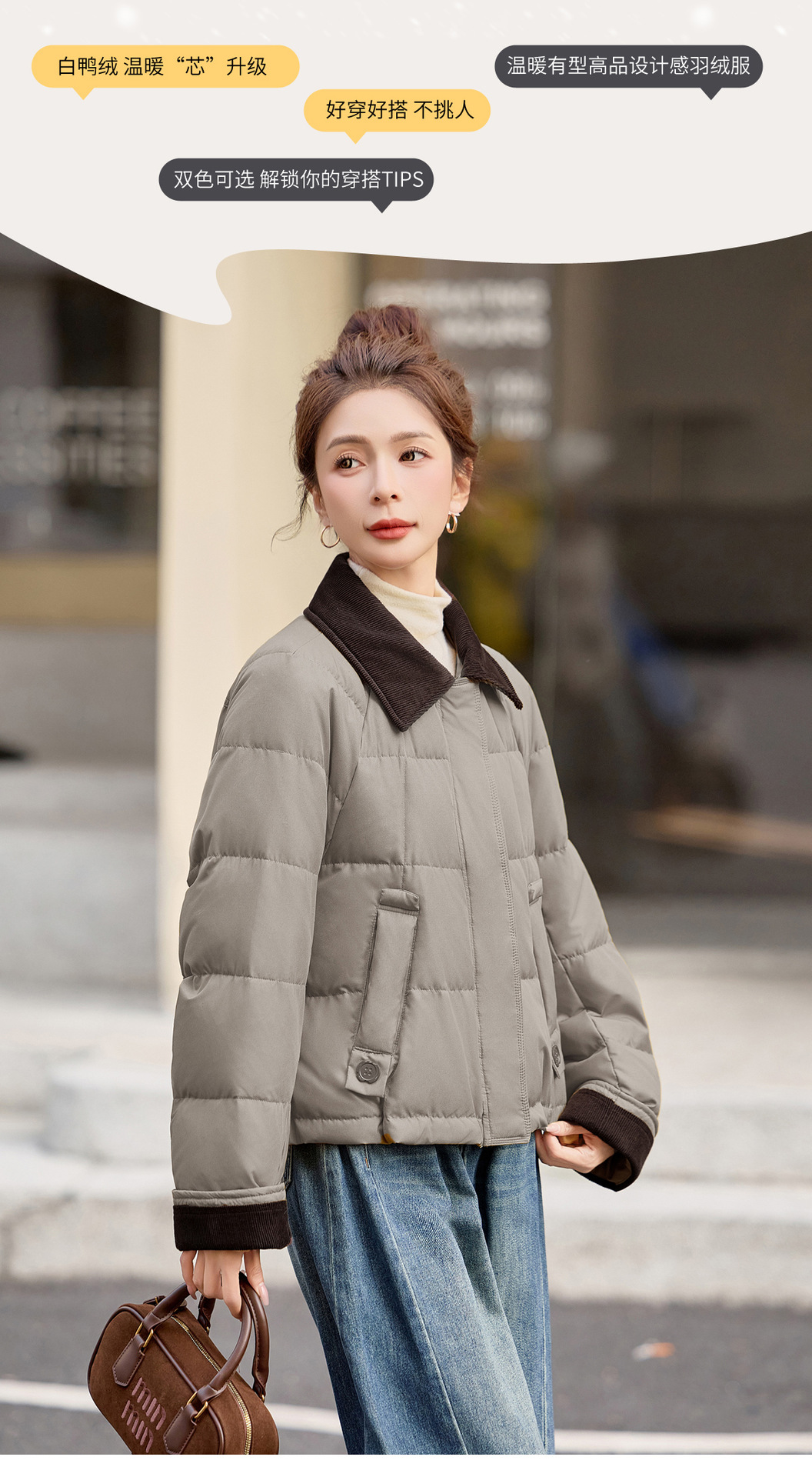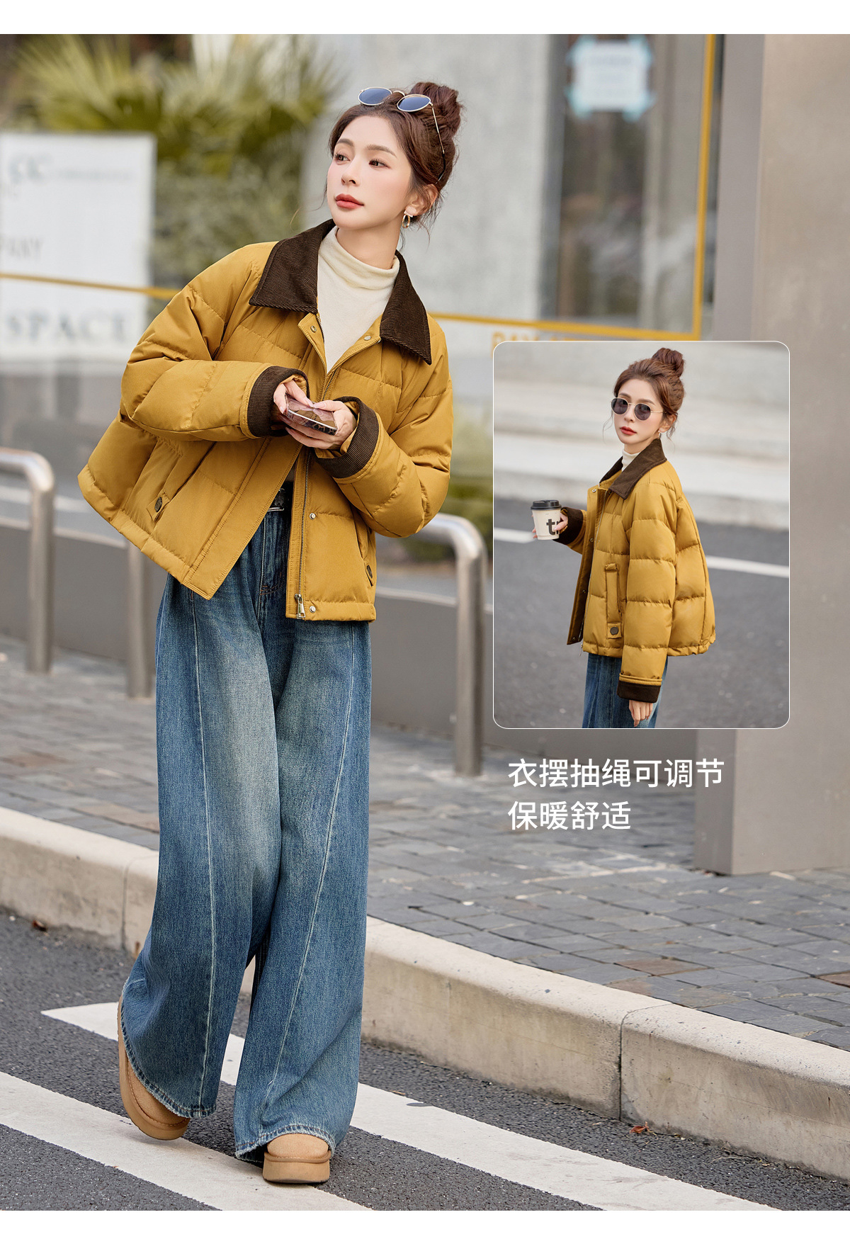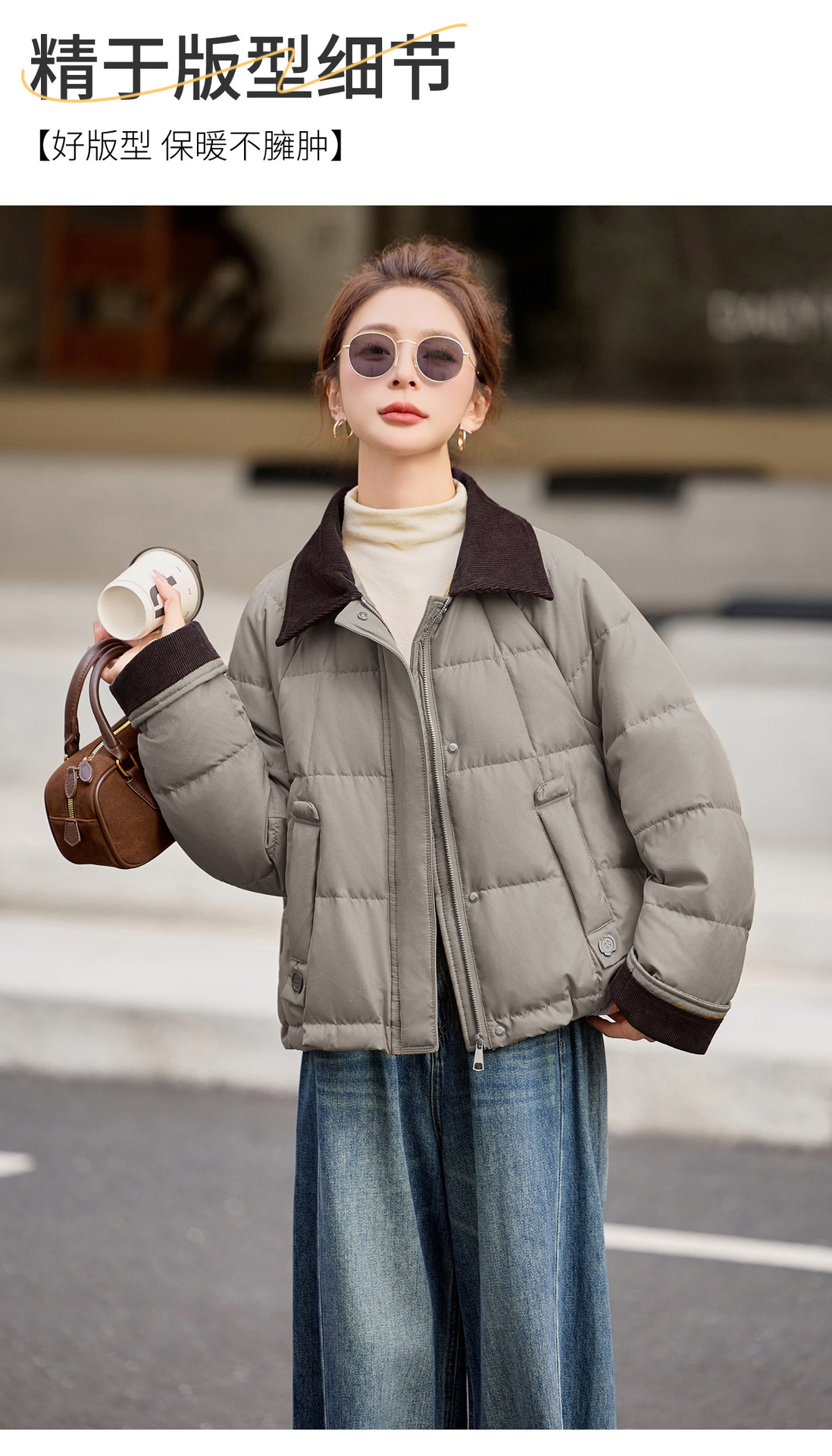 HR JYJ25153休闲风白鸭绒灯芯绒翻领短款轻薄羽绒服 商品图4