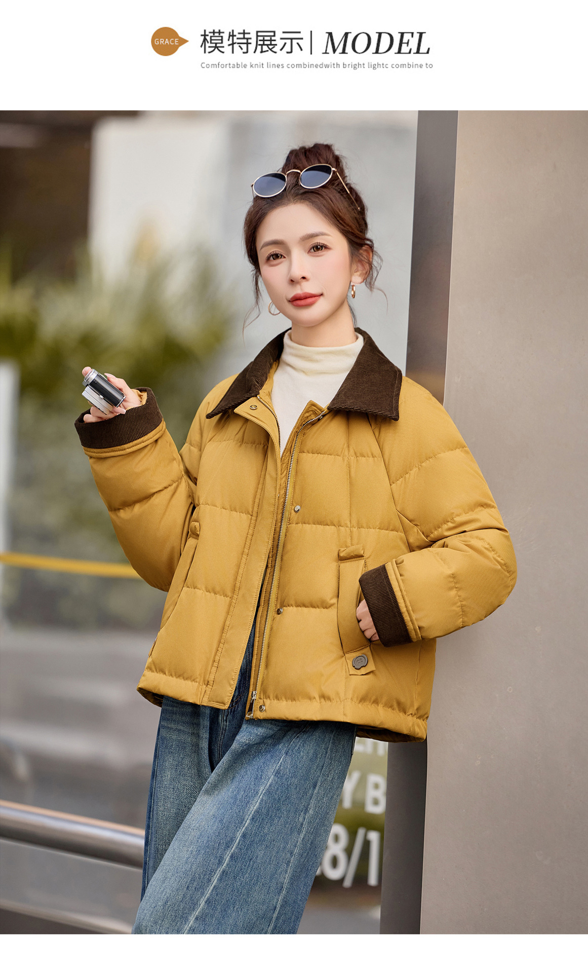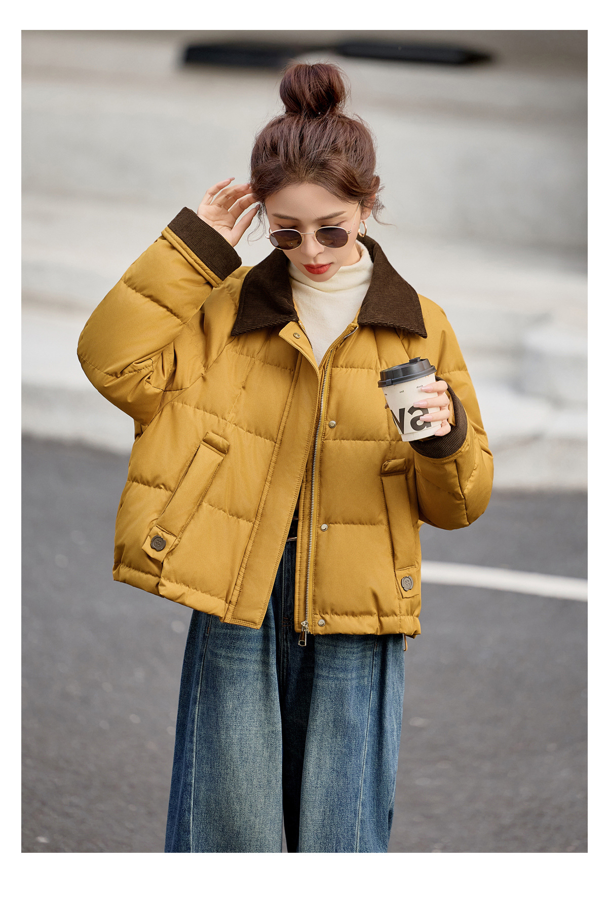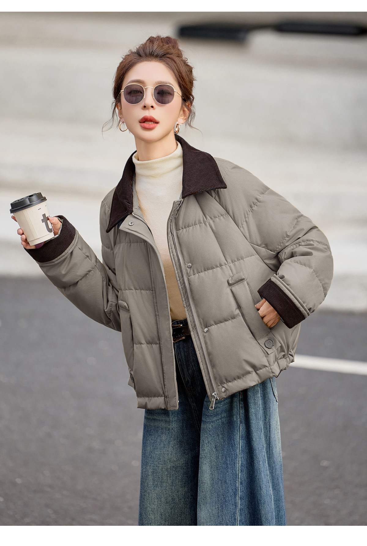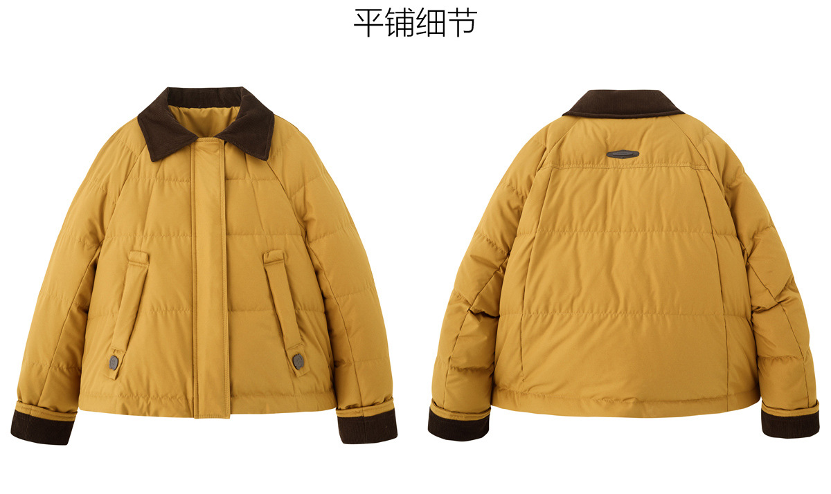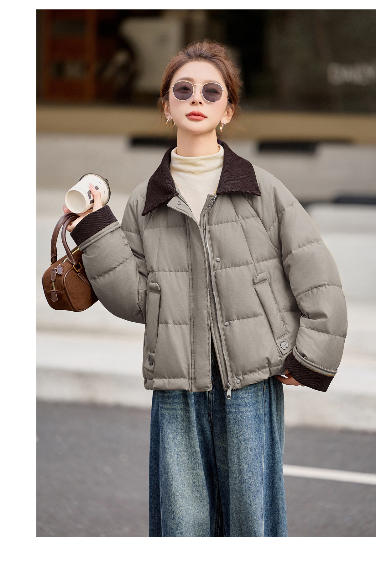 HR JYJ25153休闲风白鸭绒灯芯绒翻领短款轻薄羽绒服 商品图4