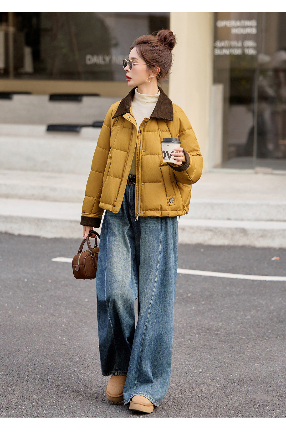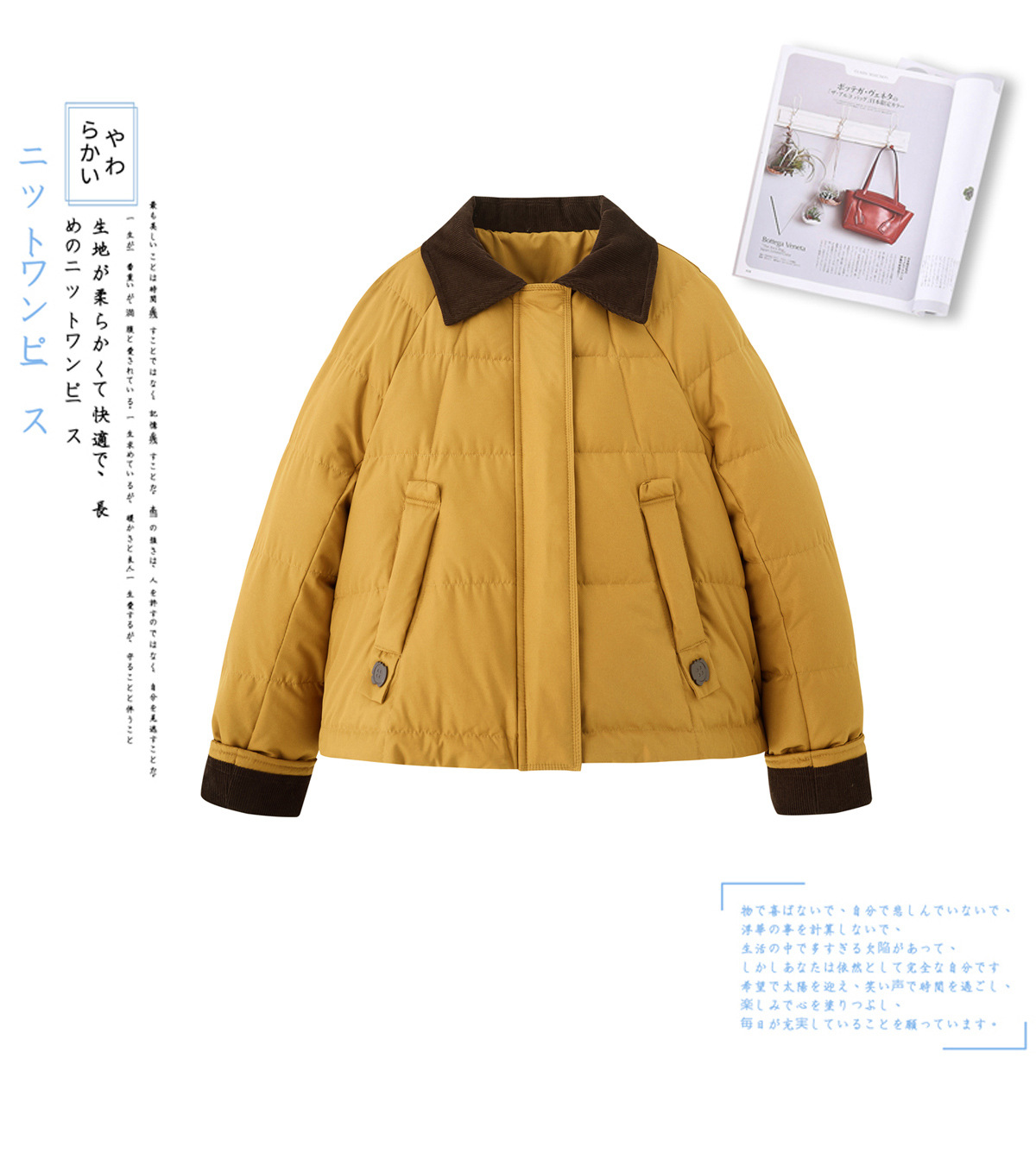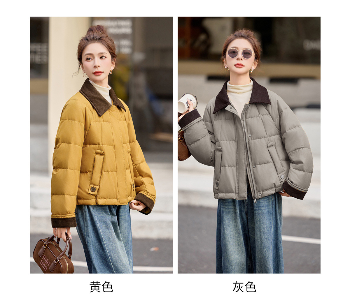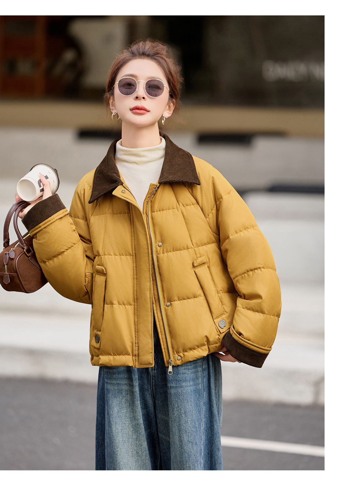 HR JYJ25153休闲风白鸭绒灯芯绒翻领短款轻薄羽绒服 商品图4