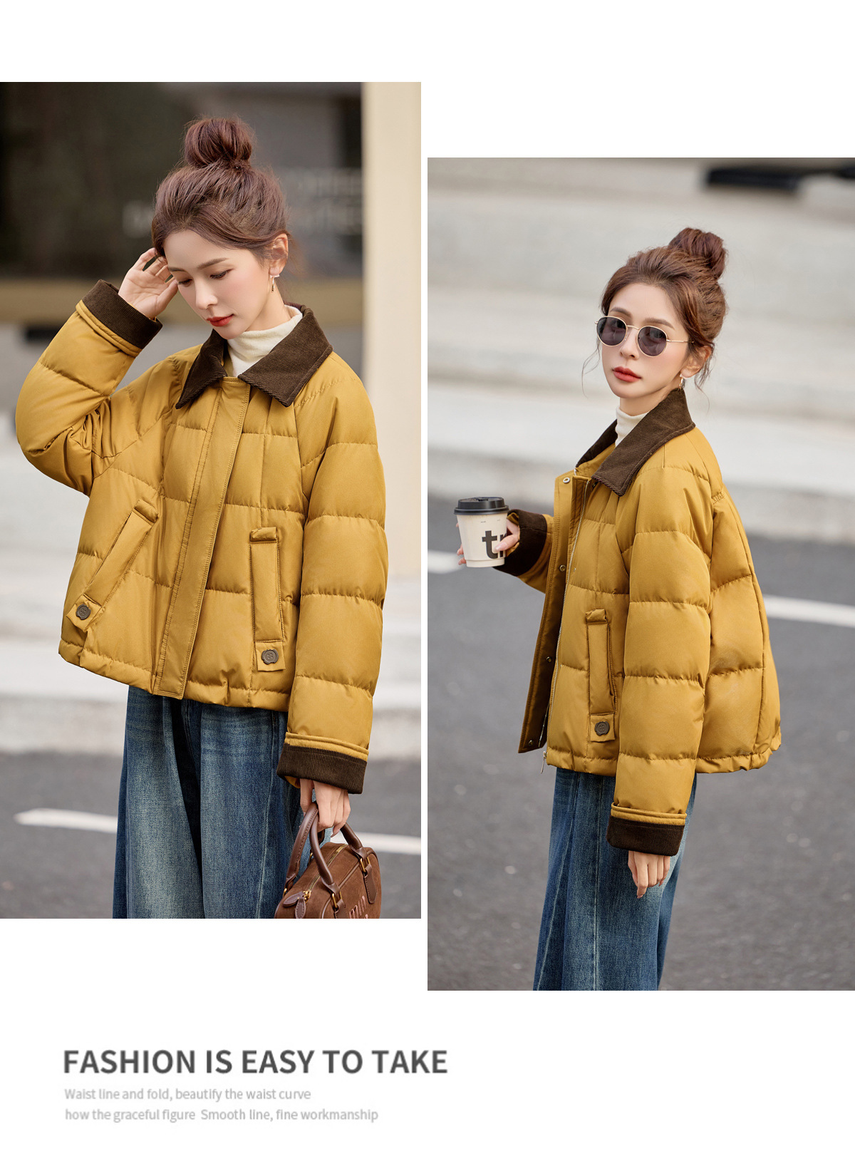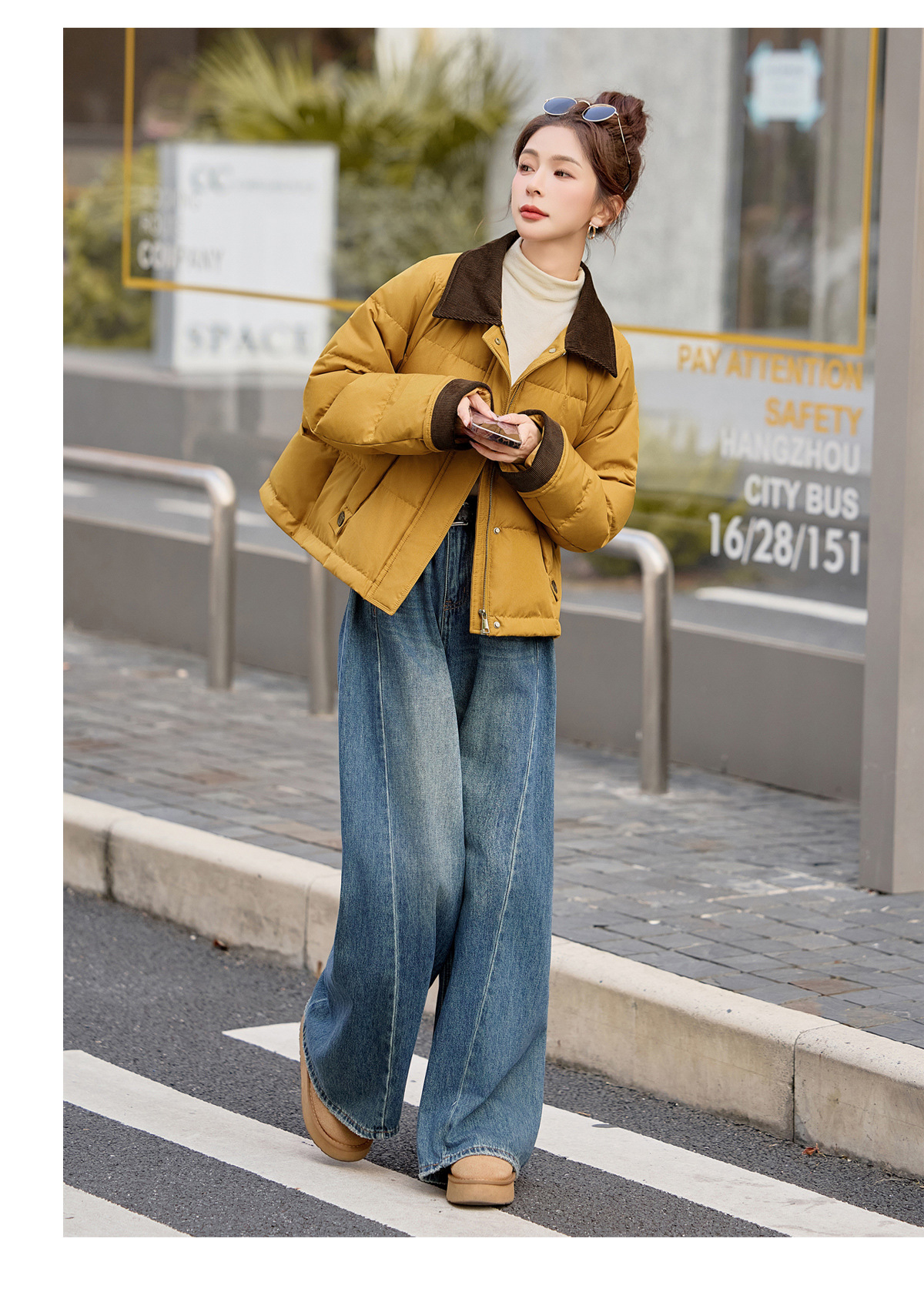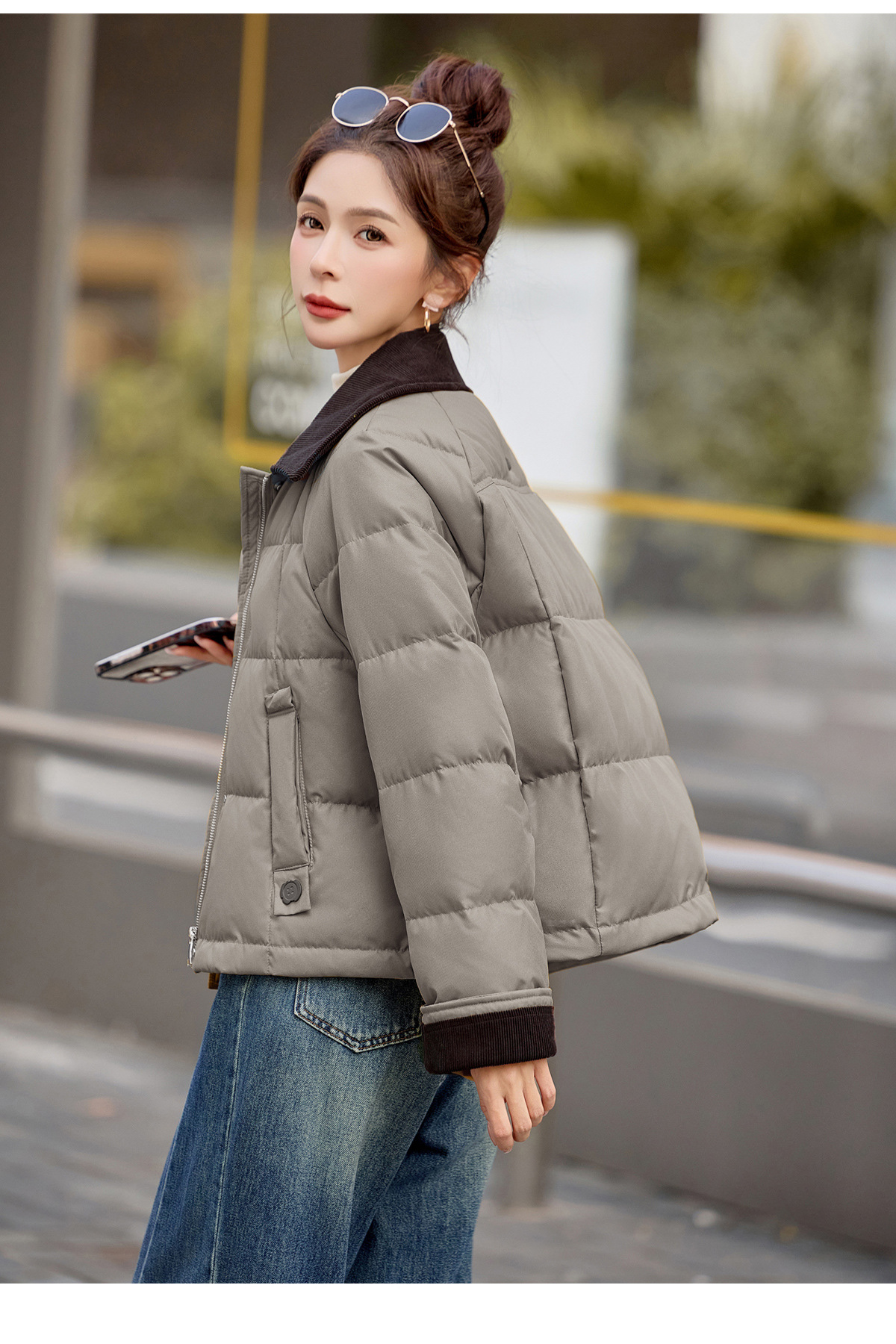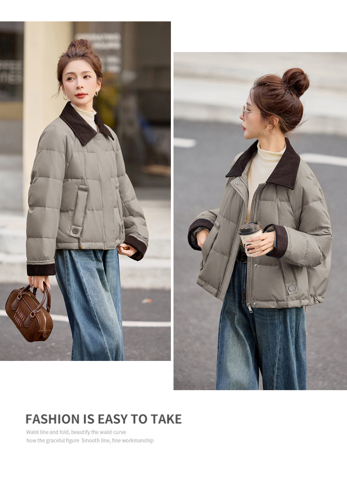 HR JYJ25153休闲风白鸭绒灯芯绒翻领短款轻薄羽绒服 商品图4