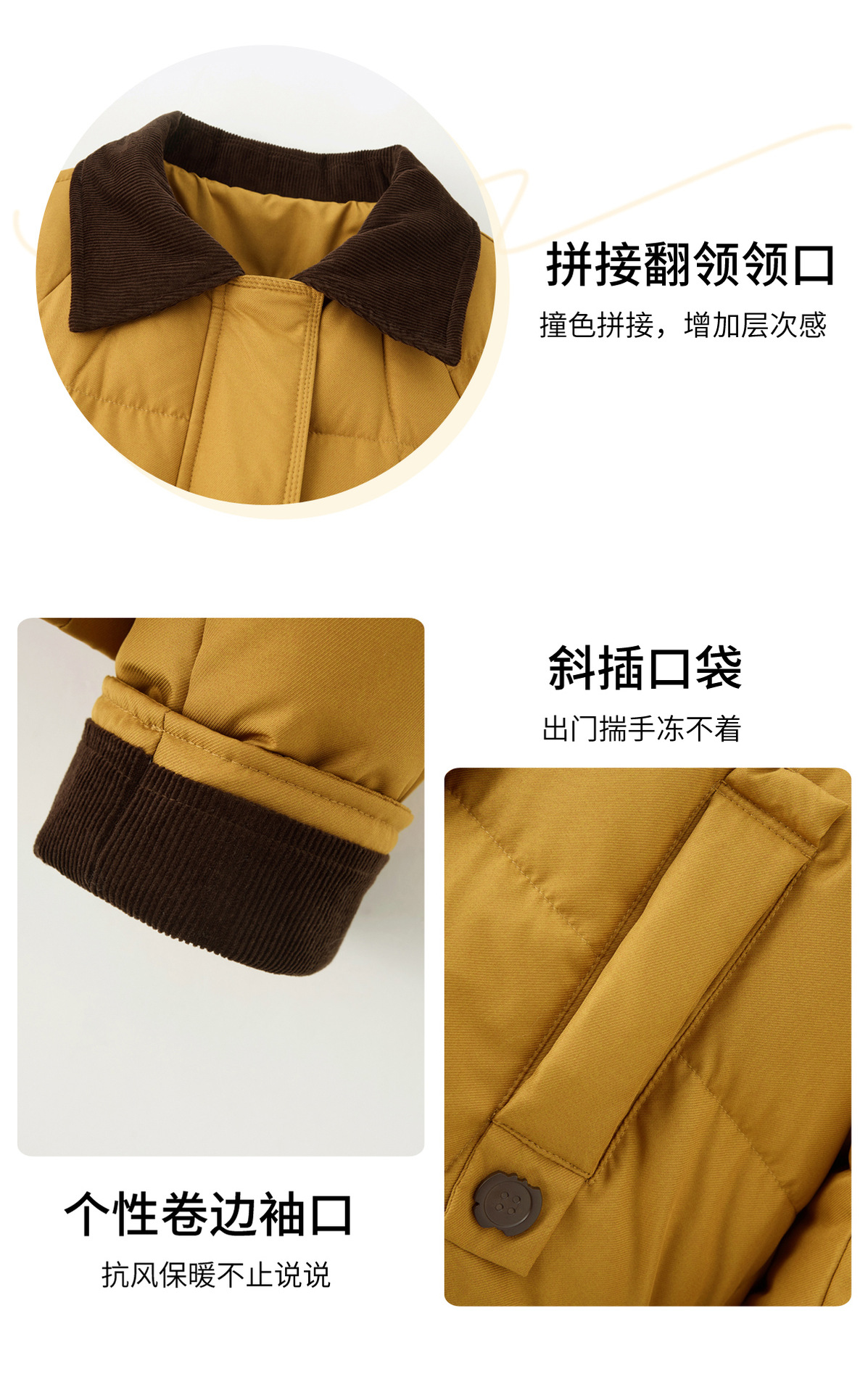 HR JYJ25153休闲风白鸭绒灯芯绒翻领短款轻薄羽绒服 商品图3