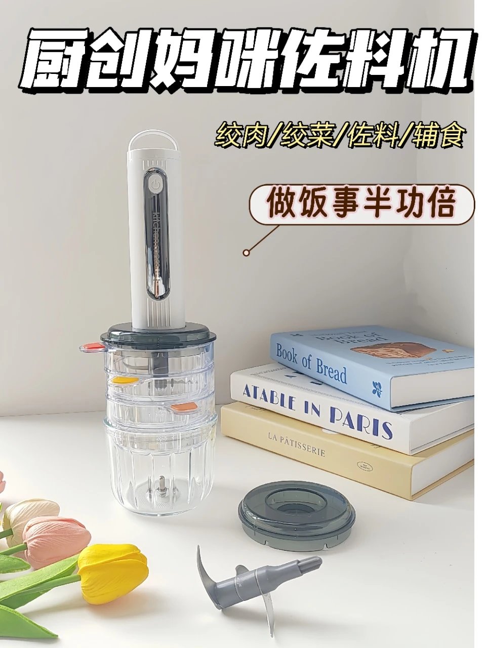 79.9厨创妈咪佐料机四碗双刀分类料理,不串味,强马力强力速绞各式小料&佐料任意绞快速又细腻无线便携家用/户外都可用基地直邮