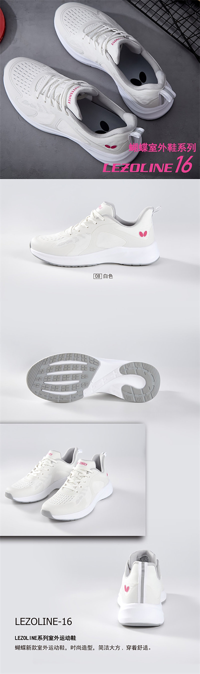 商品名称:Butterfly蝴蝶乒乓球鞋LEZOLINE-16 L-16室外休闲鞋白色男款女款运动休闲鞋