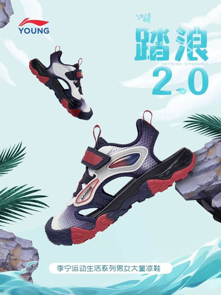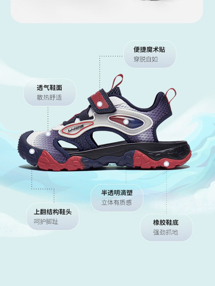 【33/34断码】李宁踏浪 2.0丨童鞋凉鞋男大童23新款运动生活系列儿童运动鞋YKUT006【库存有限,如无货将做退款,介意慎拍!】