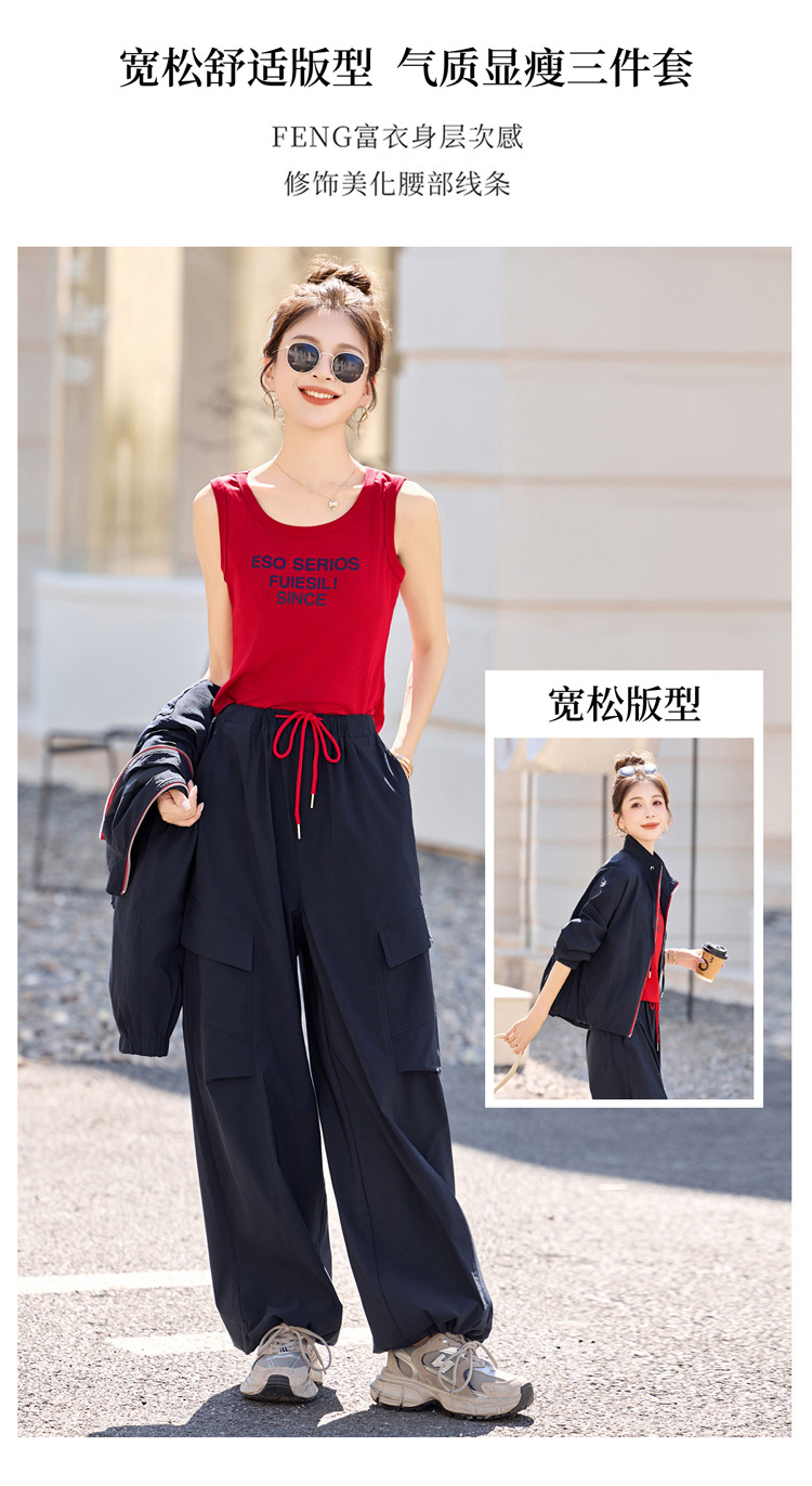 HR YF2616时尚休闲运动风三件套气质阔腿裤工装套装 商品图0