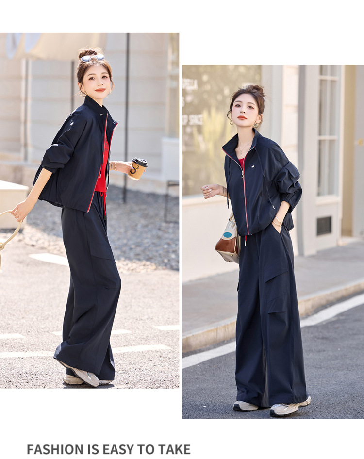 HR YF2616时尚休闲运动风三件套气质阔腿裤工装套装