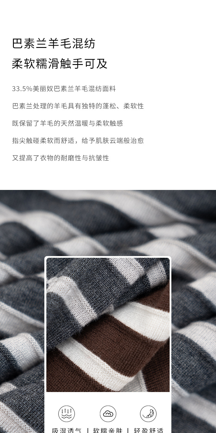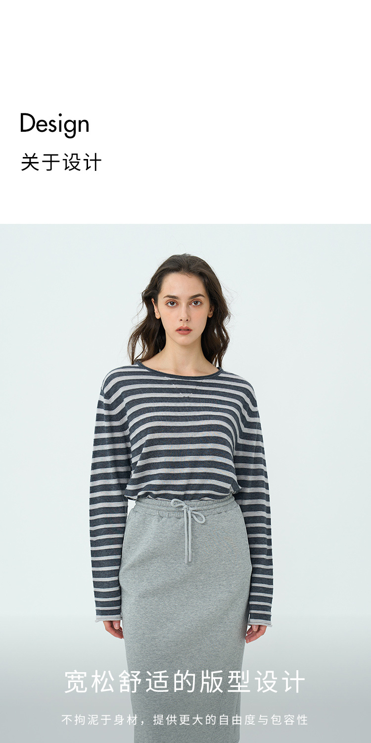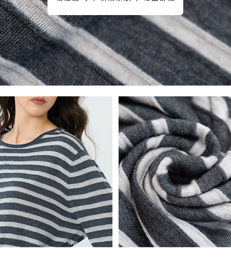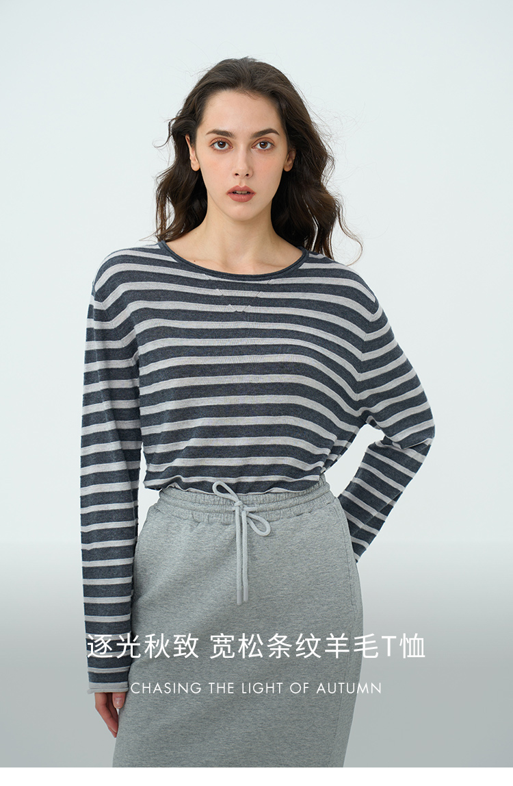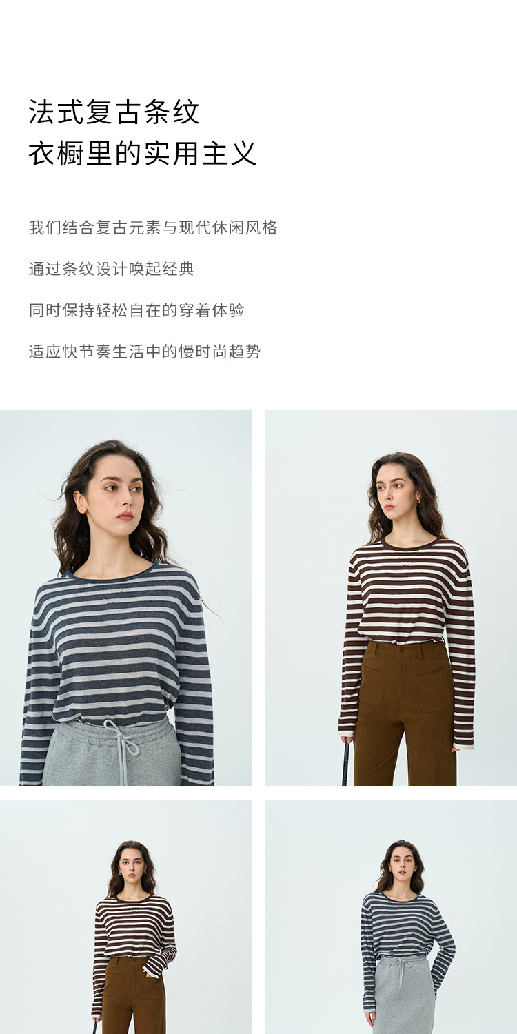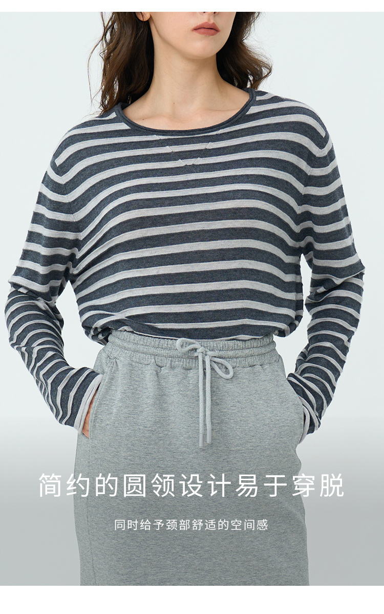 HeyDress绵羊毛条纹针织衫女秋季复古圆领慵懒感罩衫宽松长袖上衣