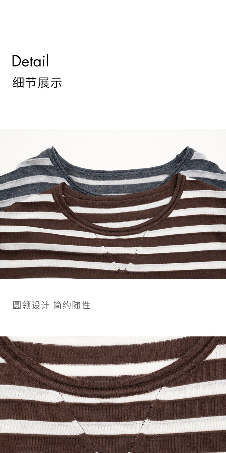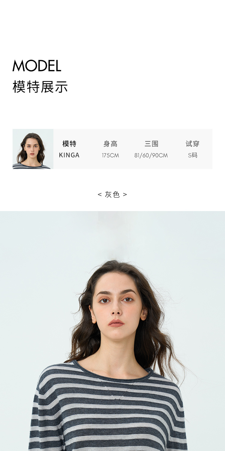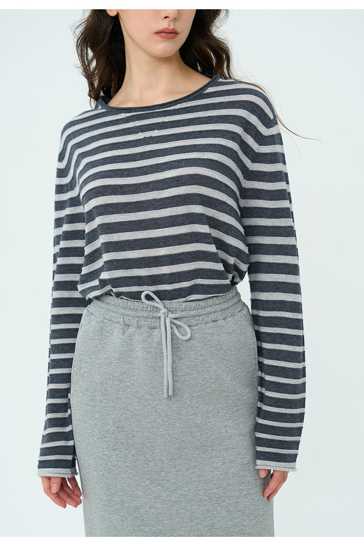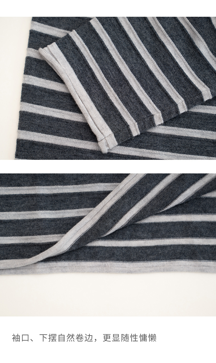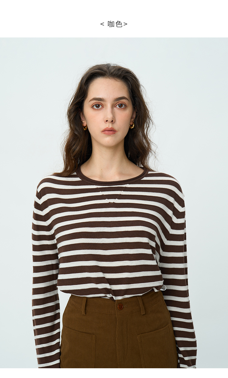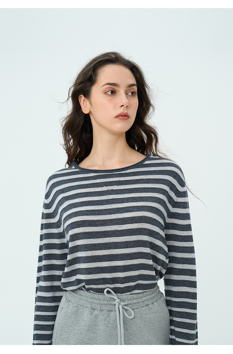 HeyDress绵羊毛条纹针织衫女秋季复古圆领慵懒感罩衫宽松长袖上衣