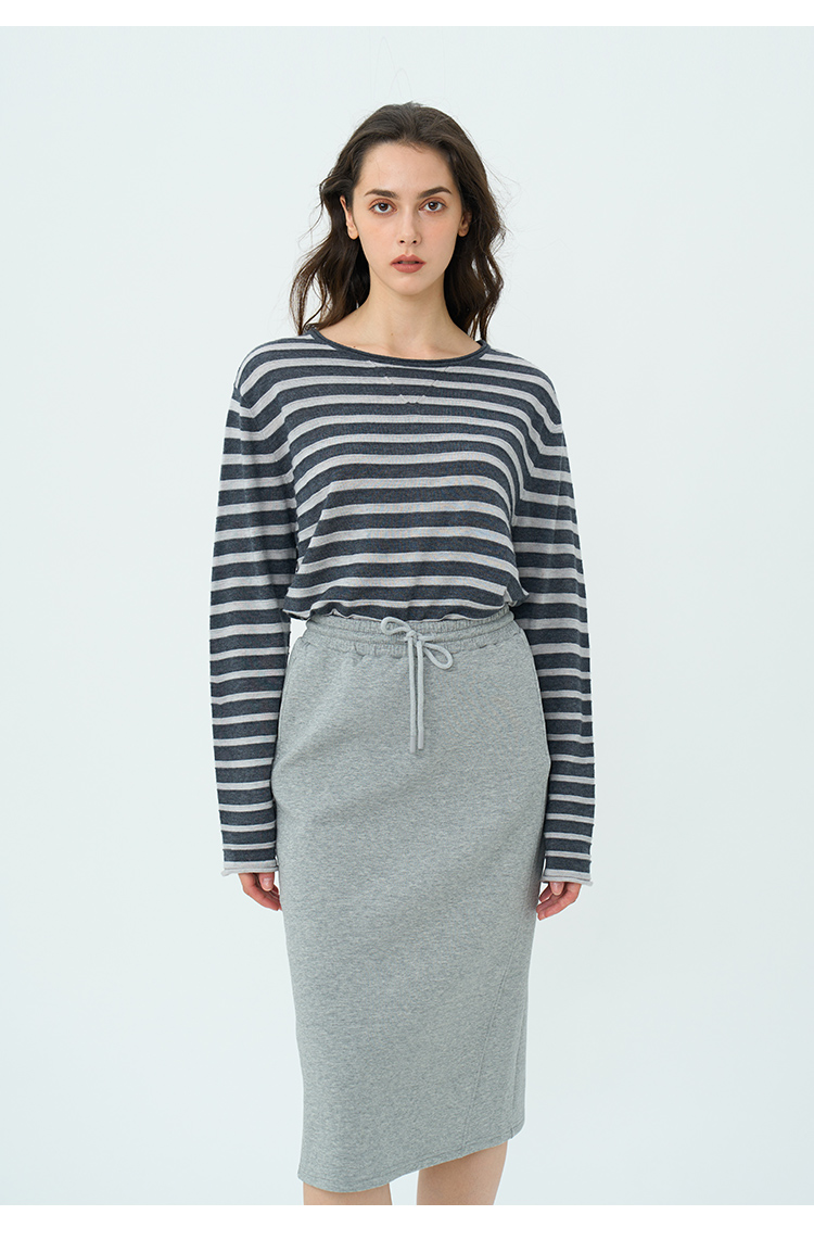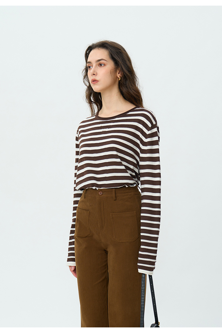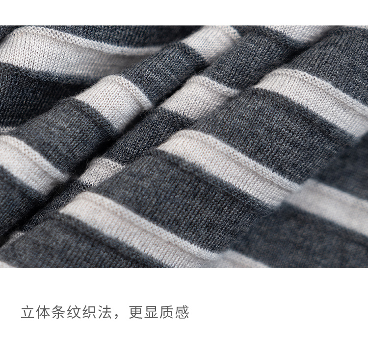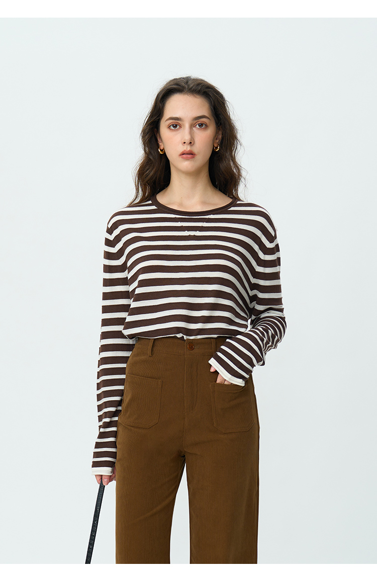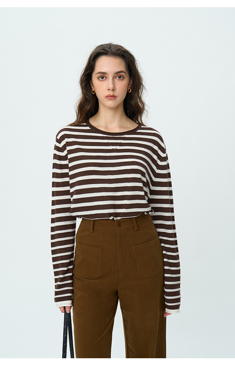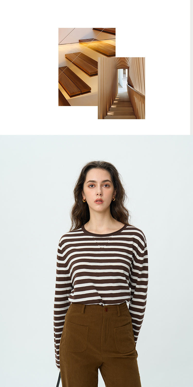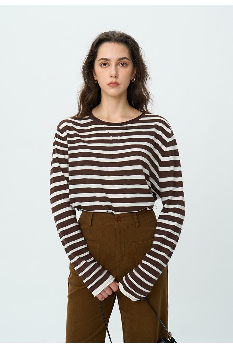 HeyDress绵羊毛条纹针织衫女秋季复古圆领慵懒感罩衫宽松长袖上衣