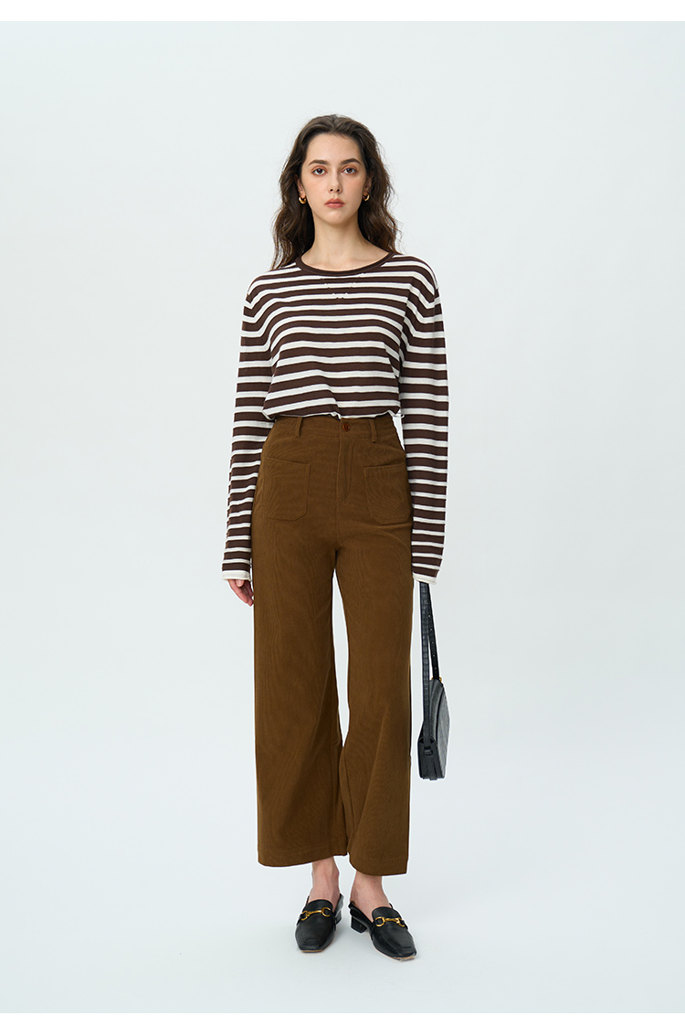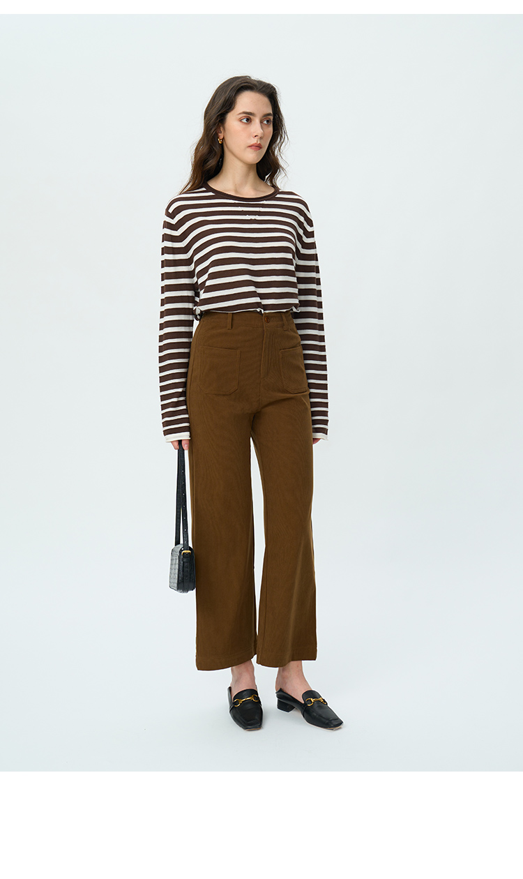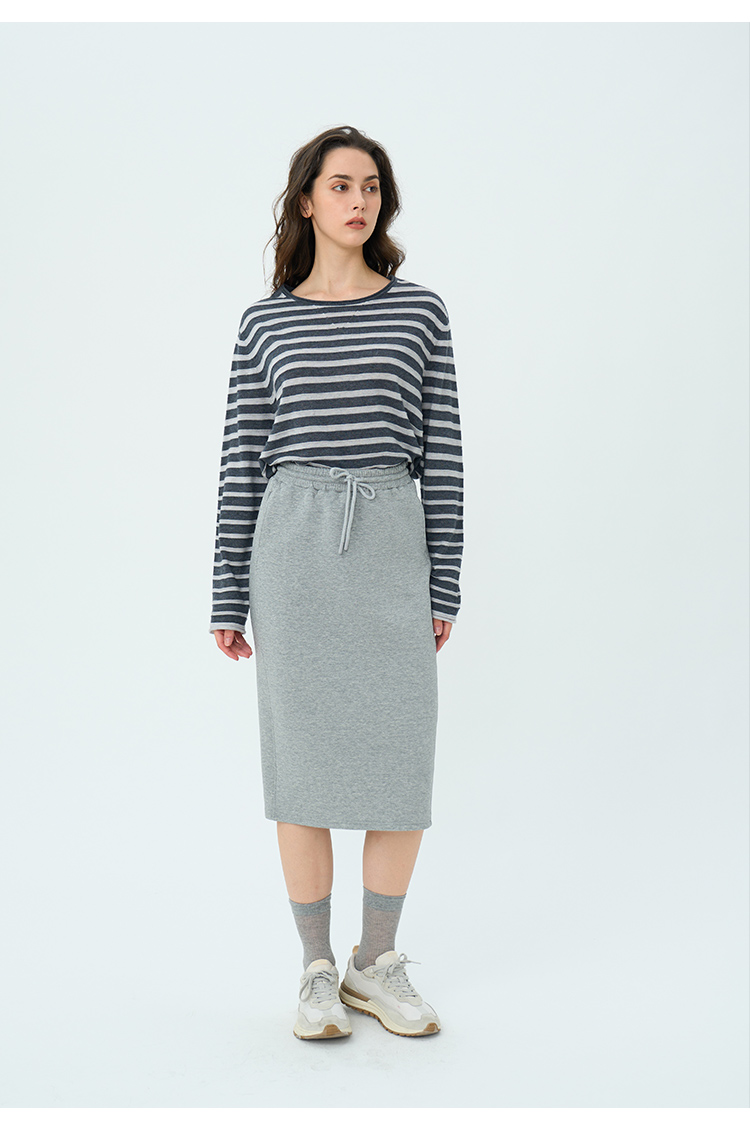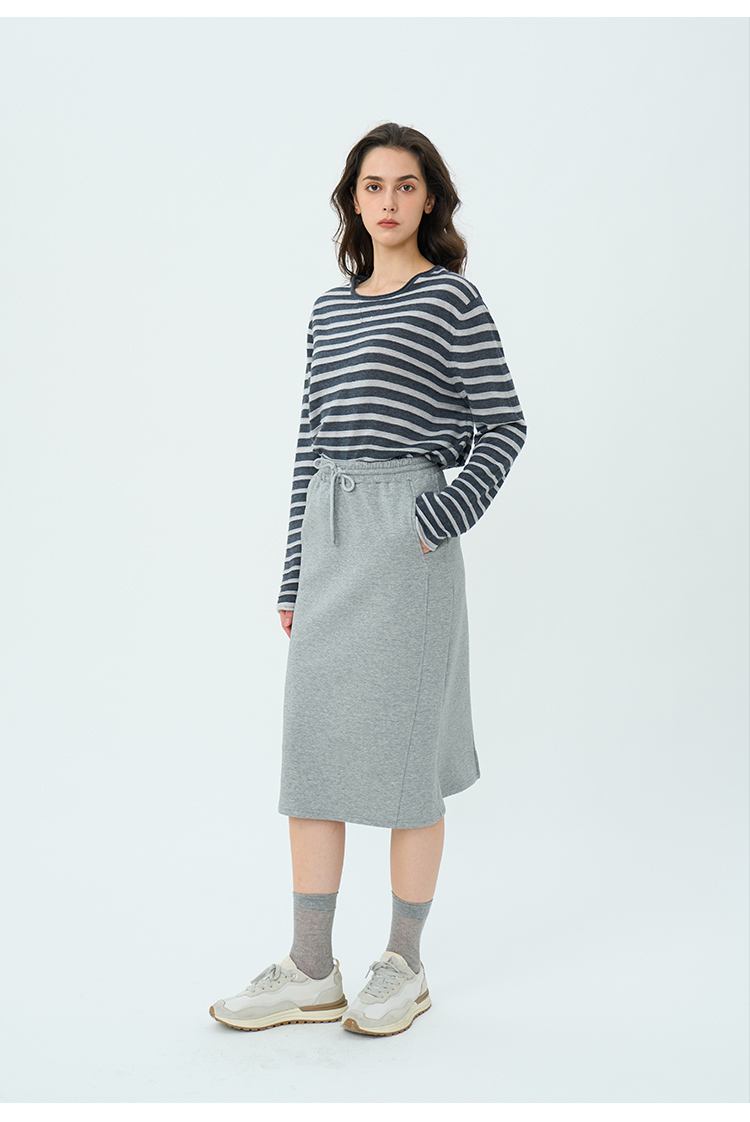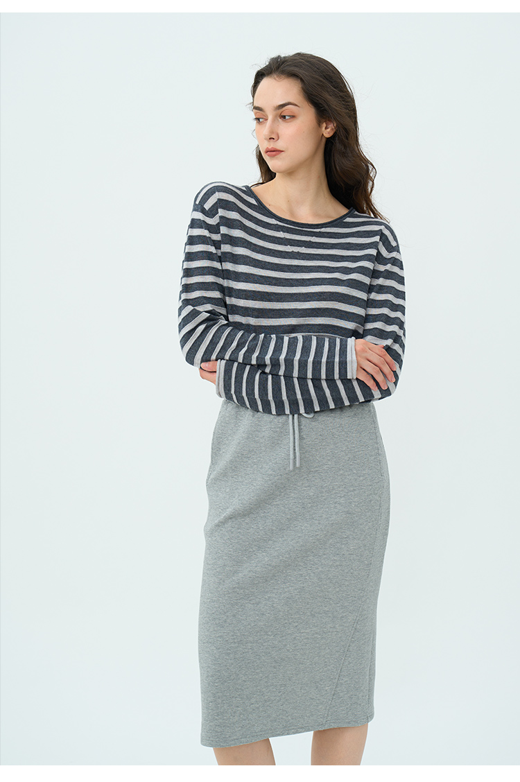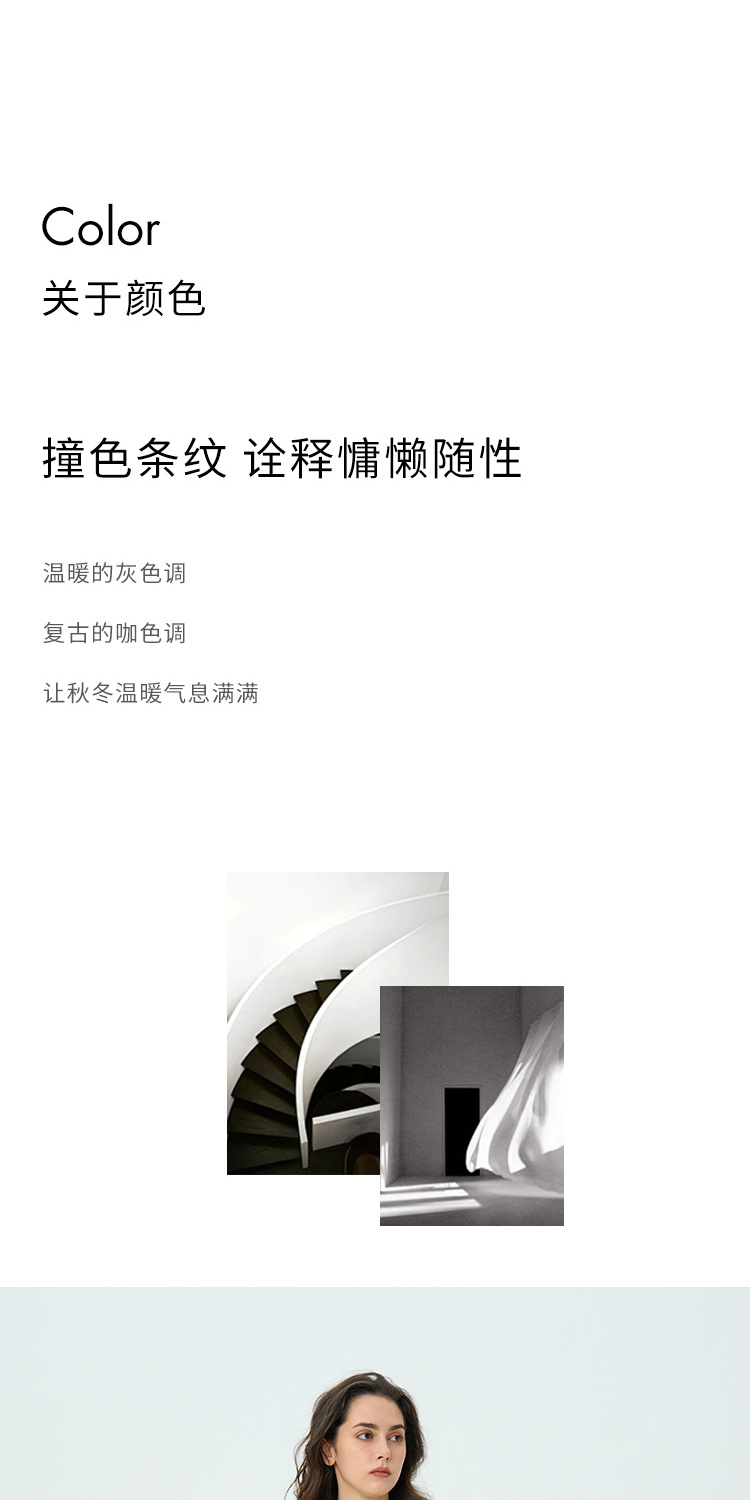HeyDress绵羊毛条纹针织衫女秋季复古圆领慵懒感罩衫宽松长袖上衣