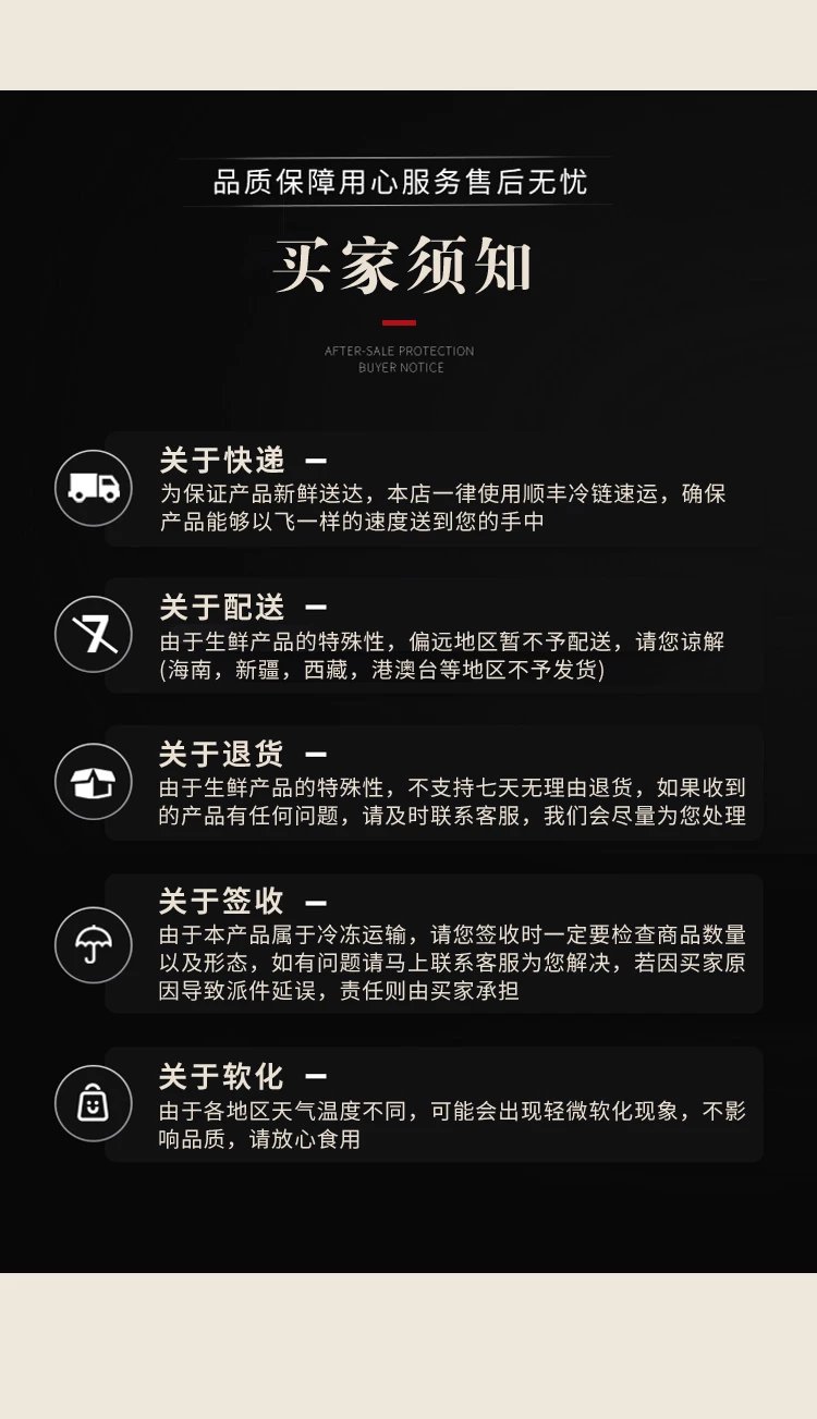 也是因为要保证新鲜这一点所带来各方面的巨大成本,下单后不退不换,所以希望各位能理解并谨慎下单,发货后更改收件地址造成的时效及产品问题请自行负责。