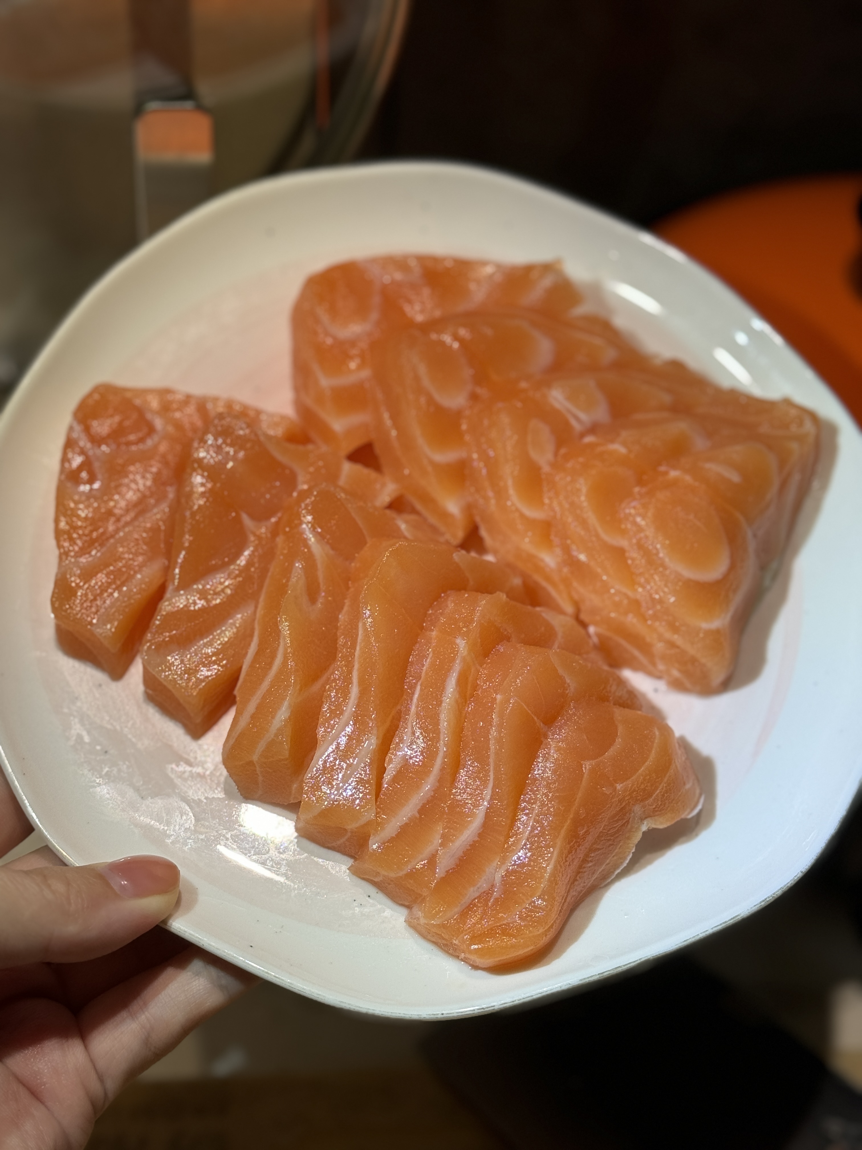 温馨提示:初次尝试三文鱼,不要过量,以免引起肠胃不适。