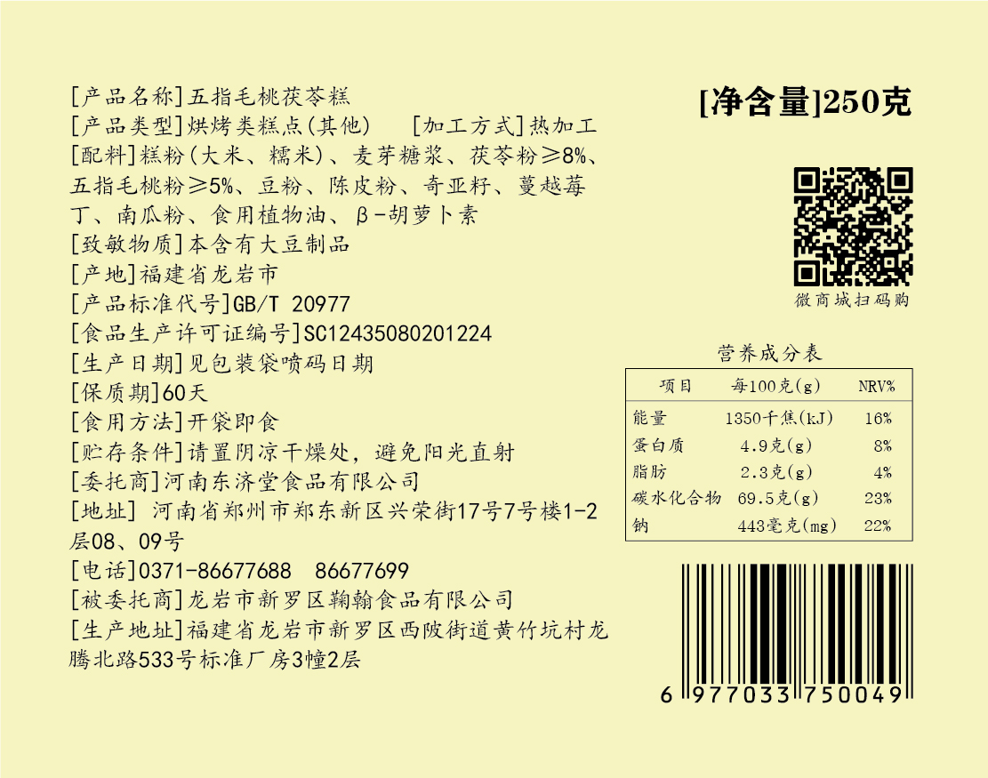 五指毛桃茯苓糕 五指毛桃、八珍粉 不添加蔗糖