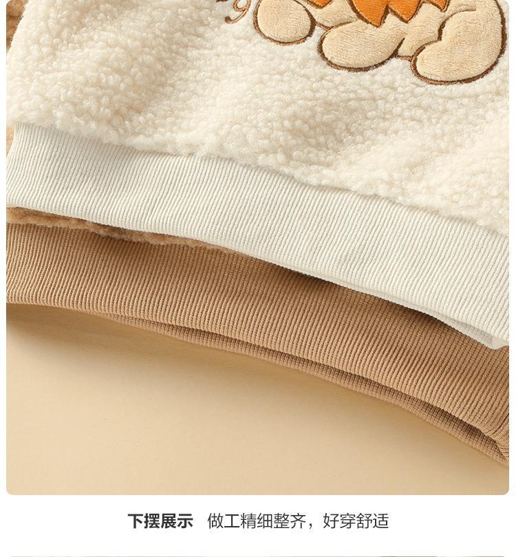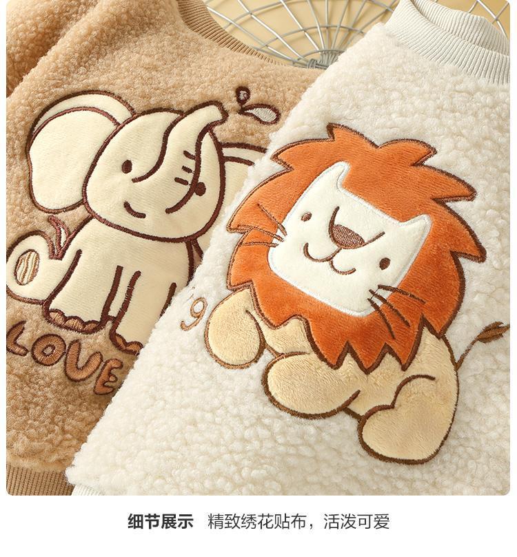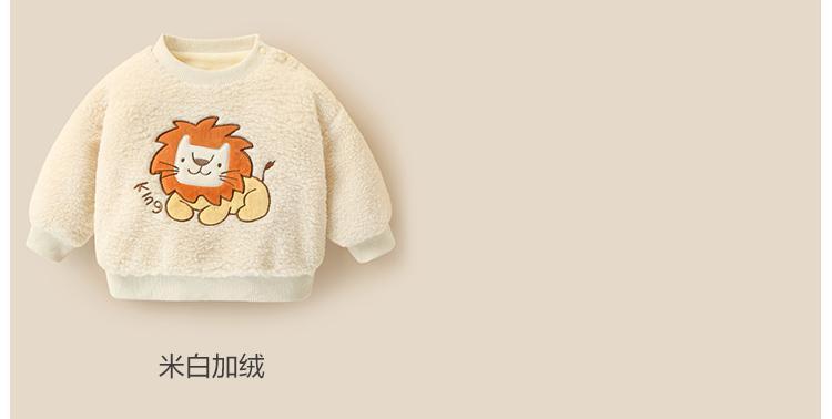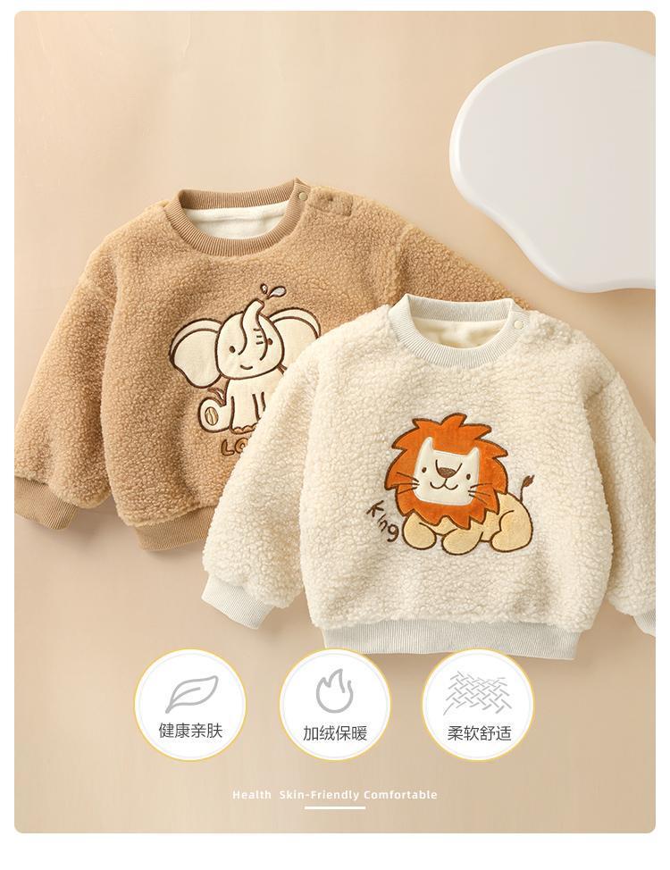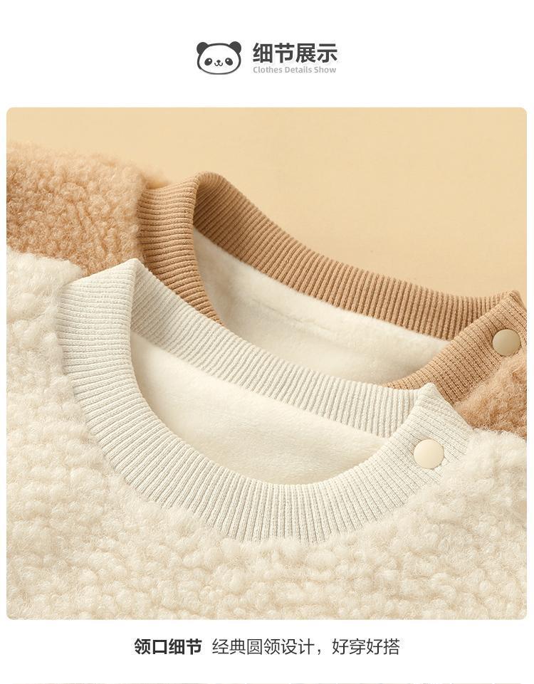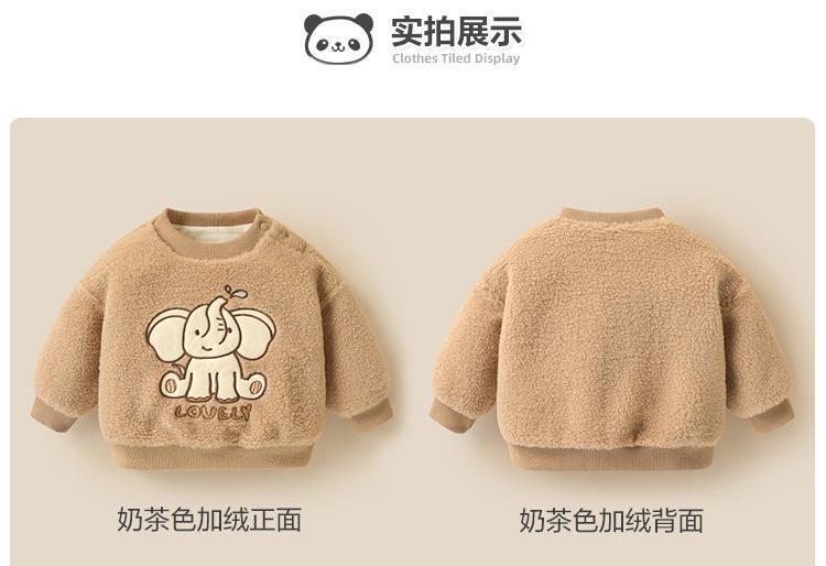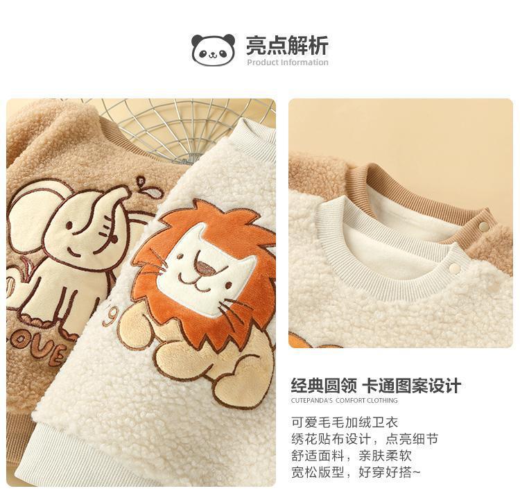 【经典圆领卡通图案设计!】男童卫衣加绒加厚宝宝冬装,儿童卡通羊羔毛套头衫冬季小童保暖上衣,宽松版型,好穿好搭~!