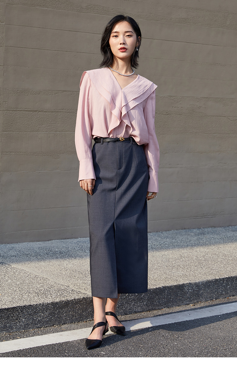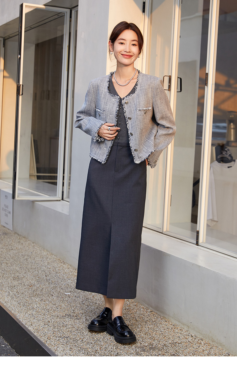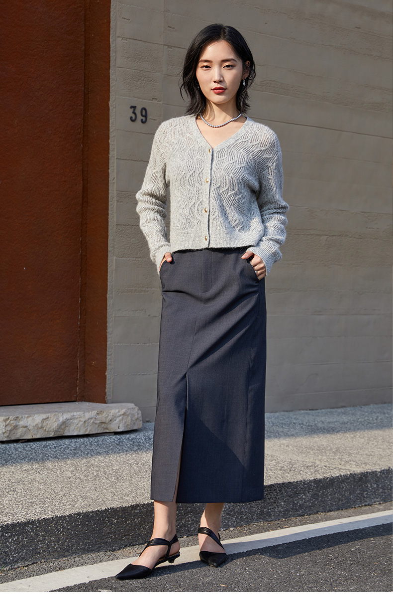 高阶质感 深灰色中长半身裙 西装面料 直筒 通勤神裙