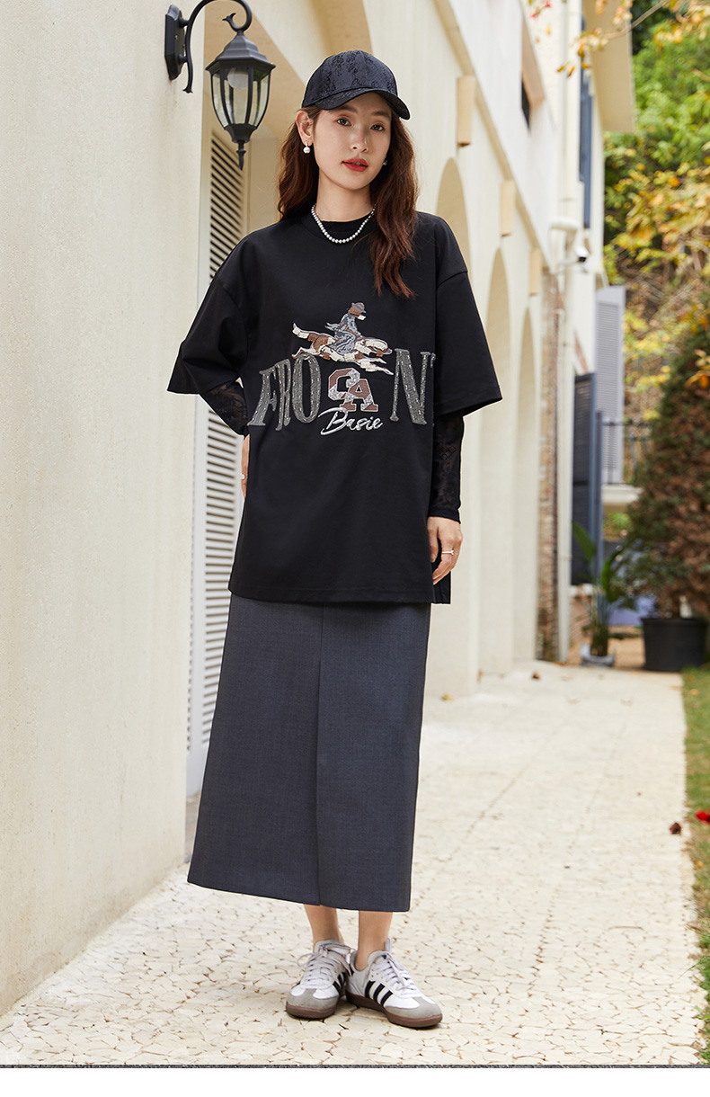 黑灰做旧牛仔半身裙女 高腰直筒中裙 复古显瘦遮胯 A 字裙