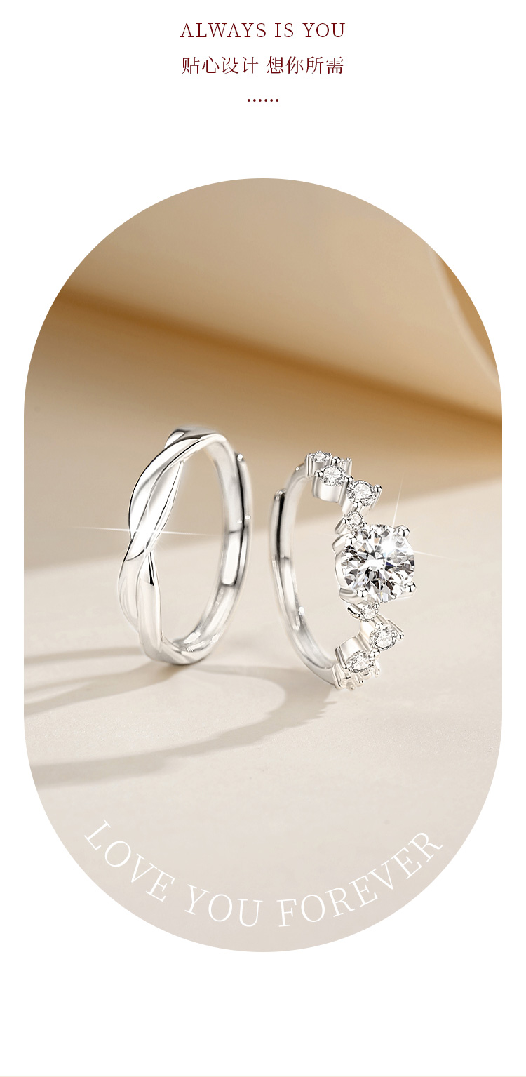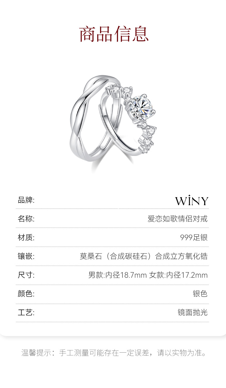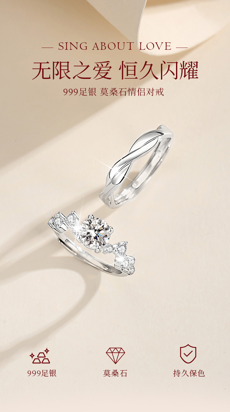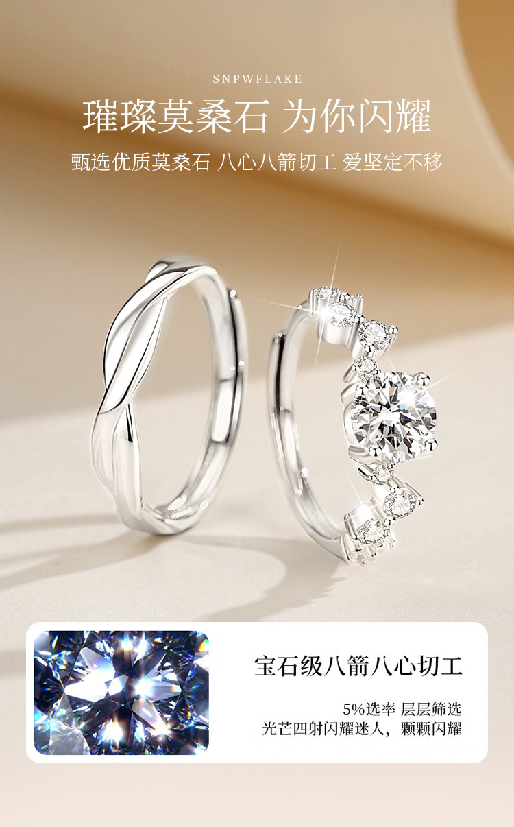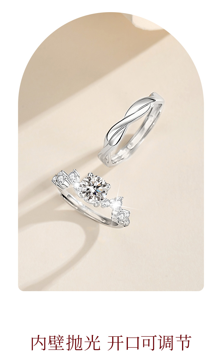 Winy999银爱恋如歌莫桑钻对戒银色配证书送女友男友节日生日礼物