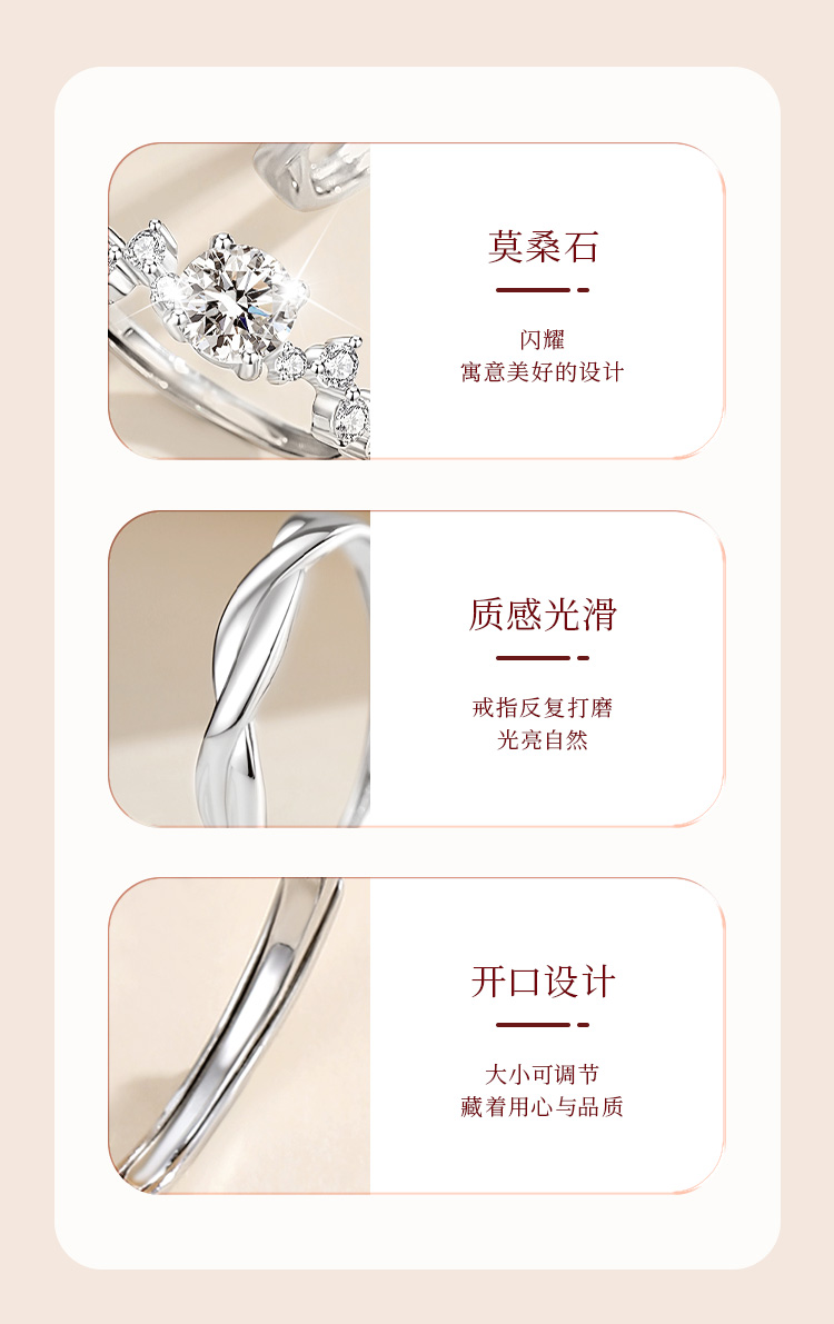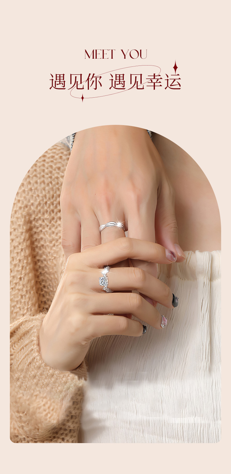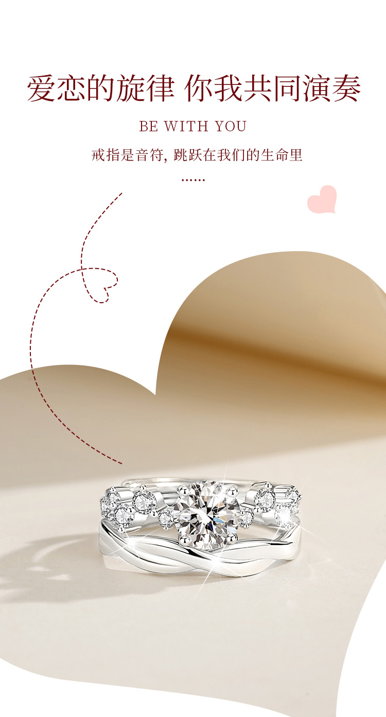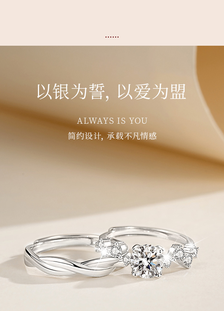 Winy999银爱恋如歌莫桑钻对戒银色配证书送女友男友节日生日礼物