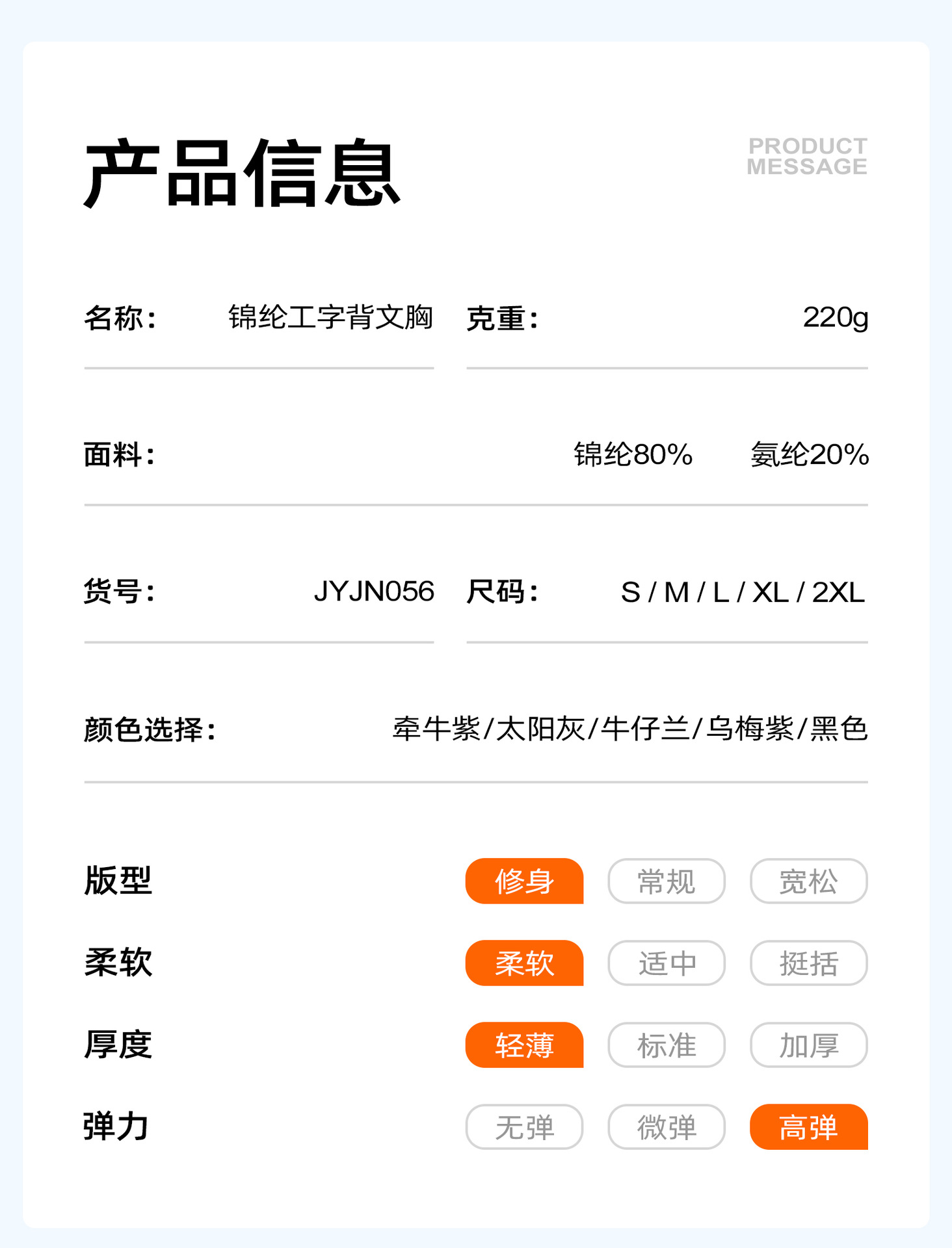 跃牌【瑜堂系列】工型美背运动内衣女防震高强度跑步健身瑜伽服背心JYJN056