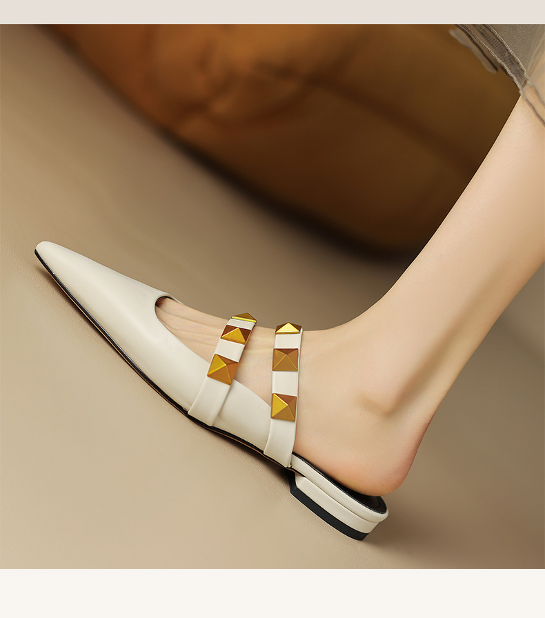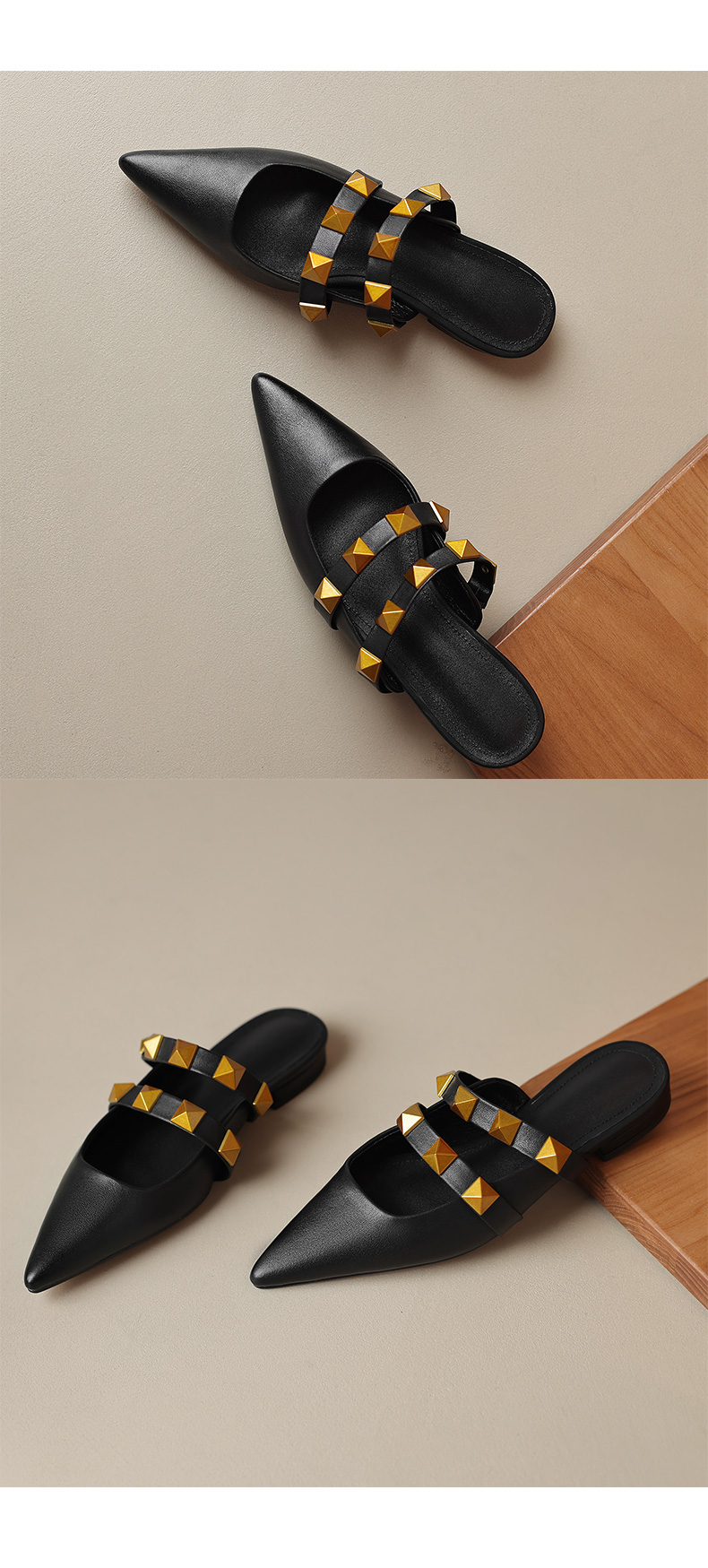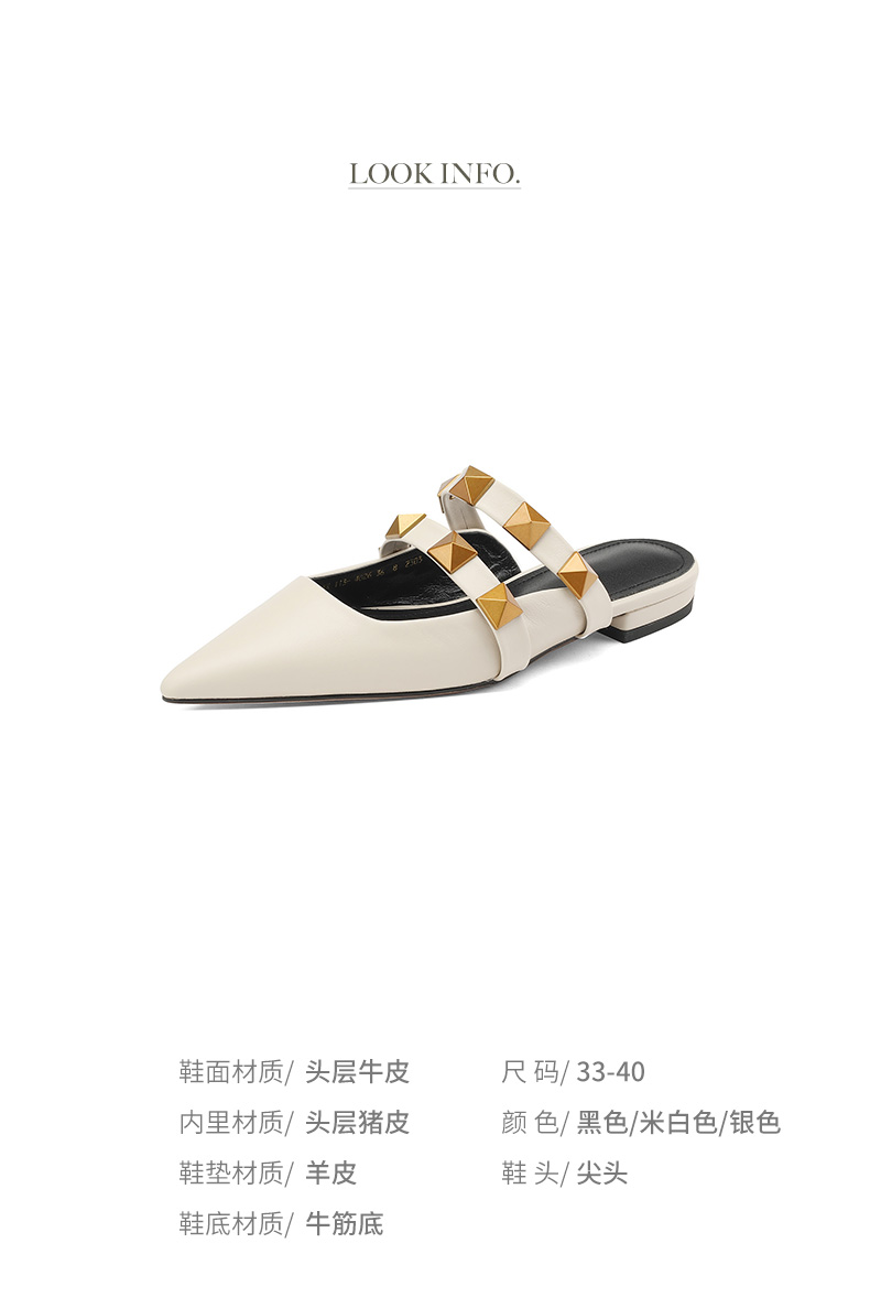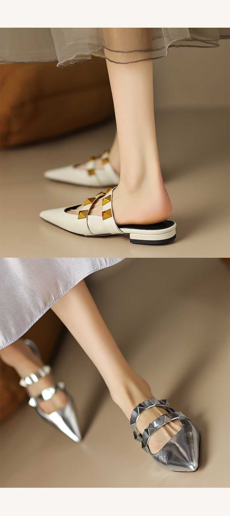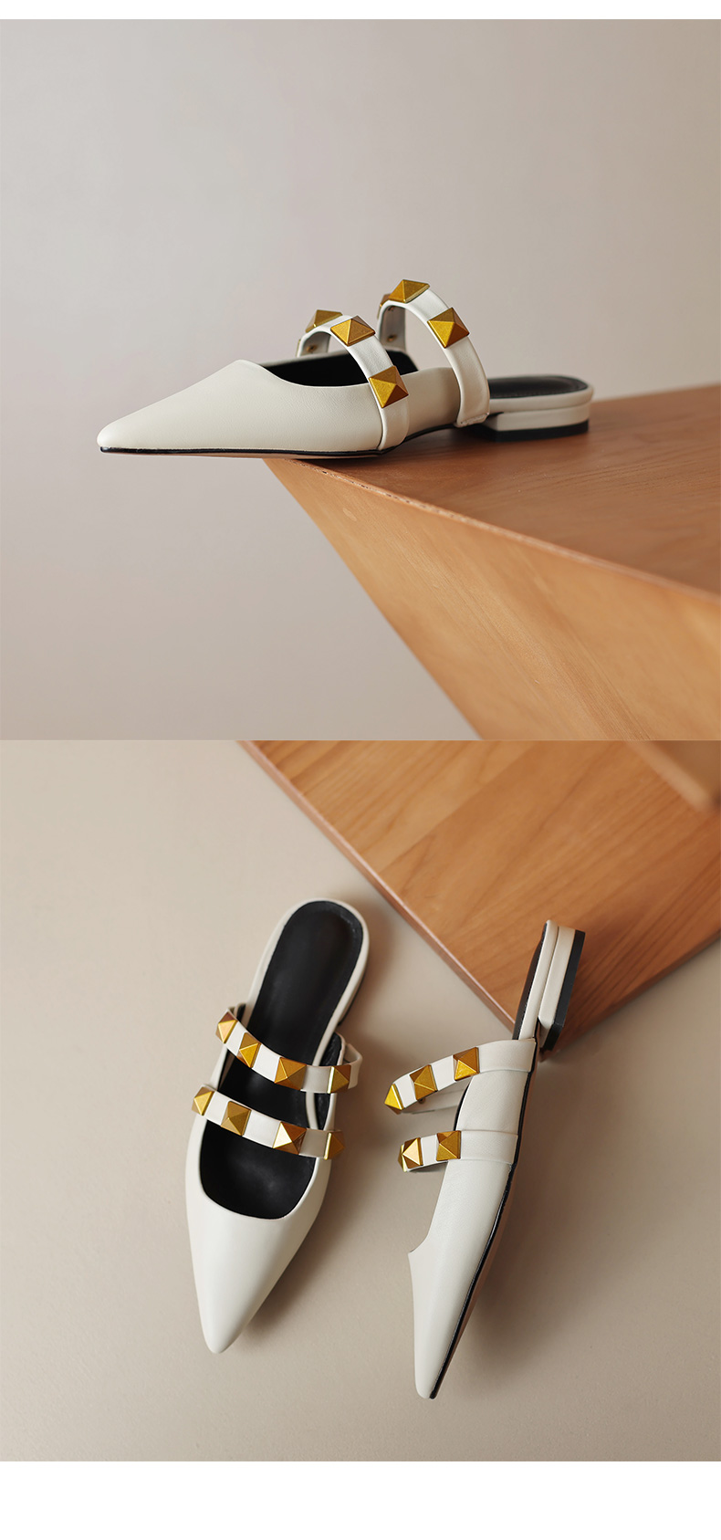 性感优雅,尖头真皮几何铆钉平底凉拖HB-4026