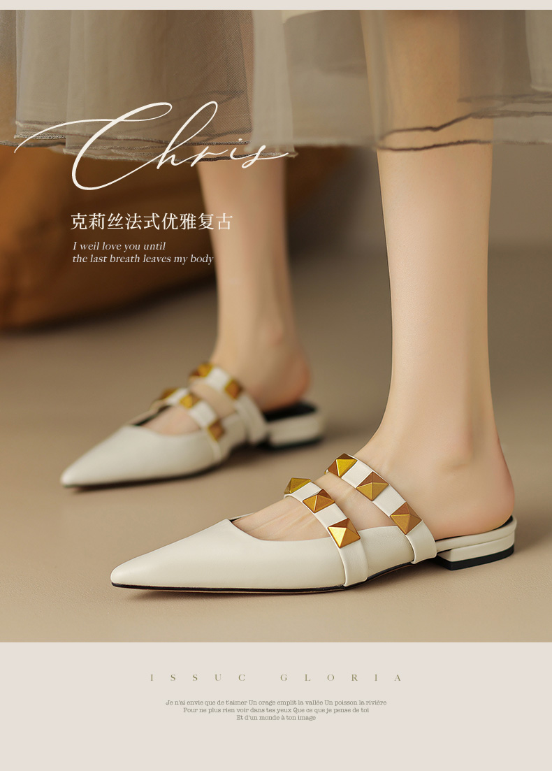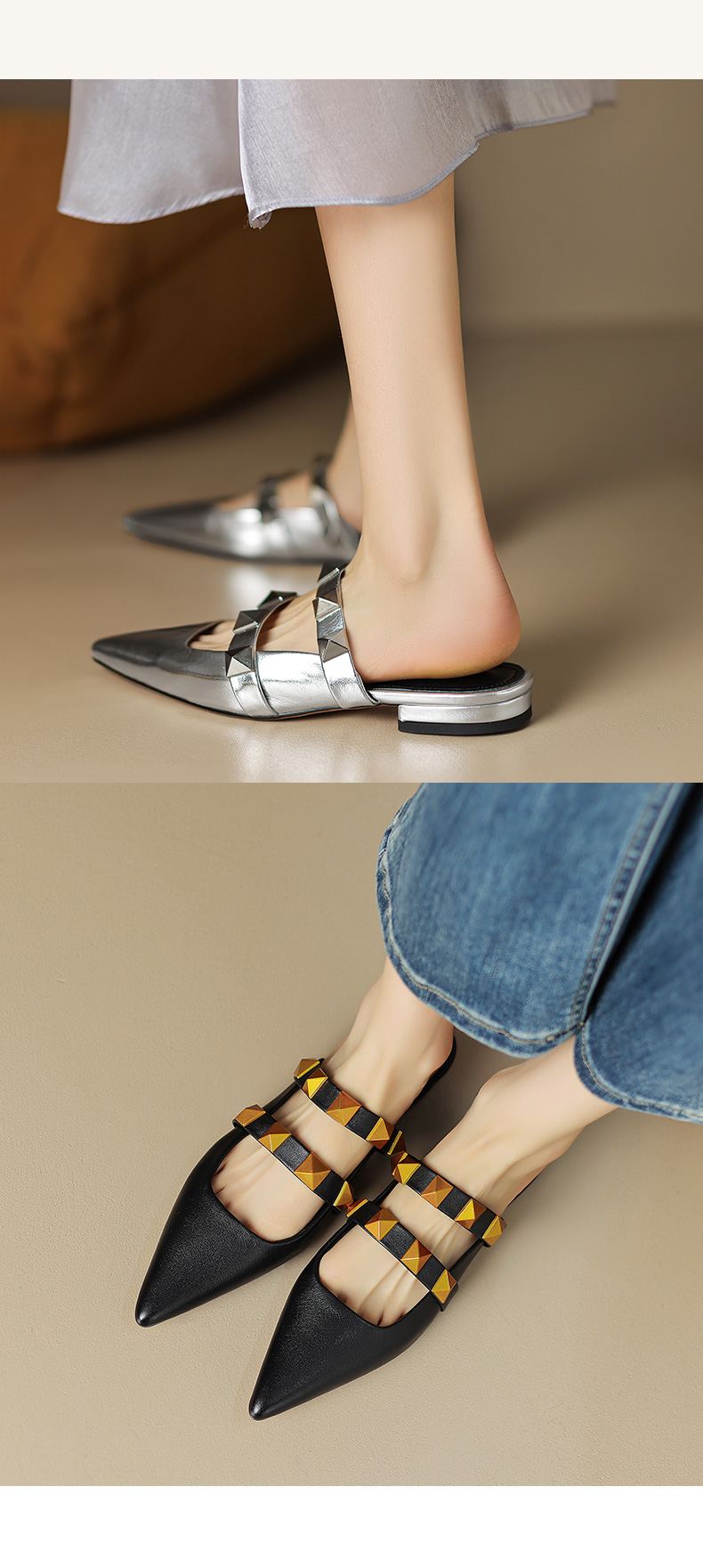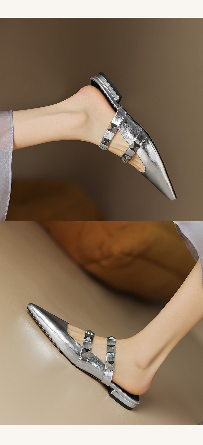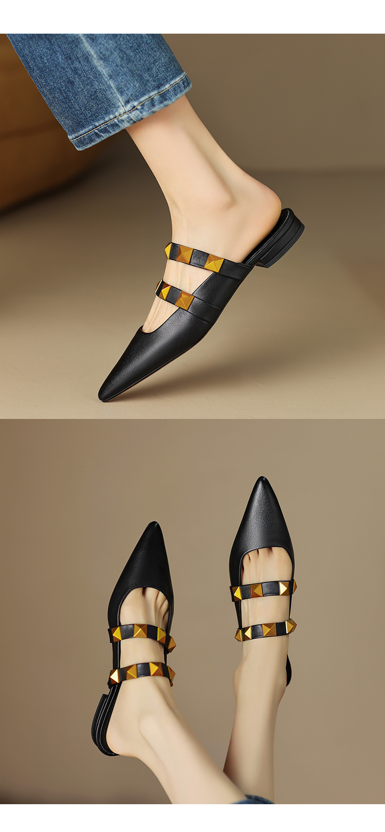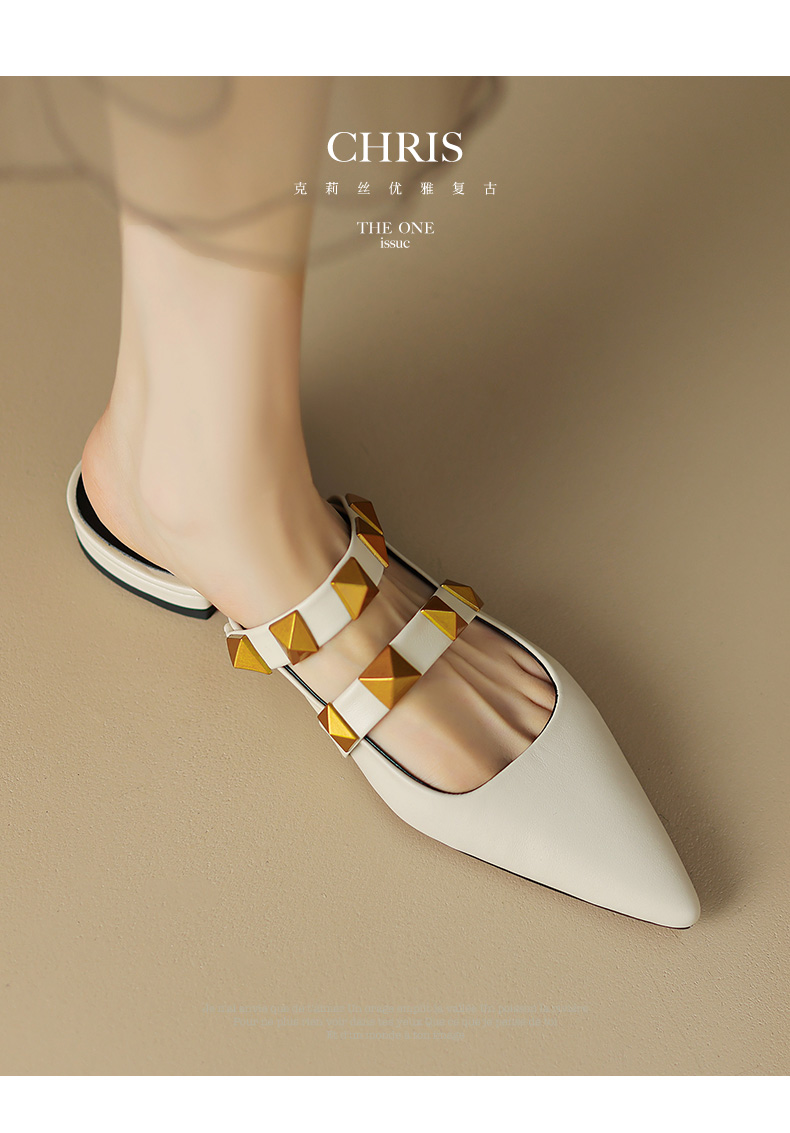 性感优雅,尖头真皮几何铆钉平底凉拖HB-4026