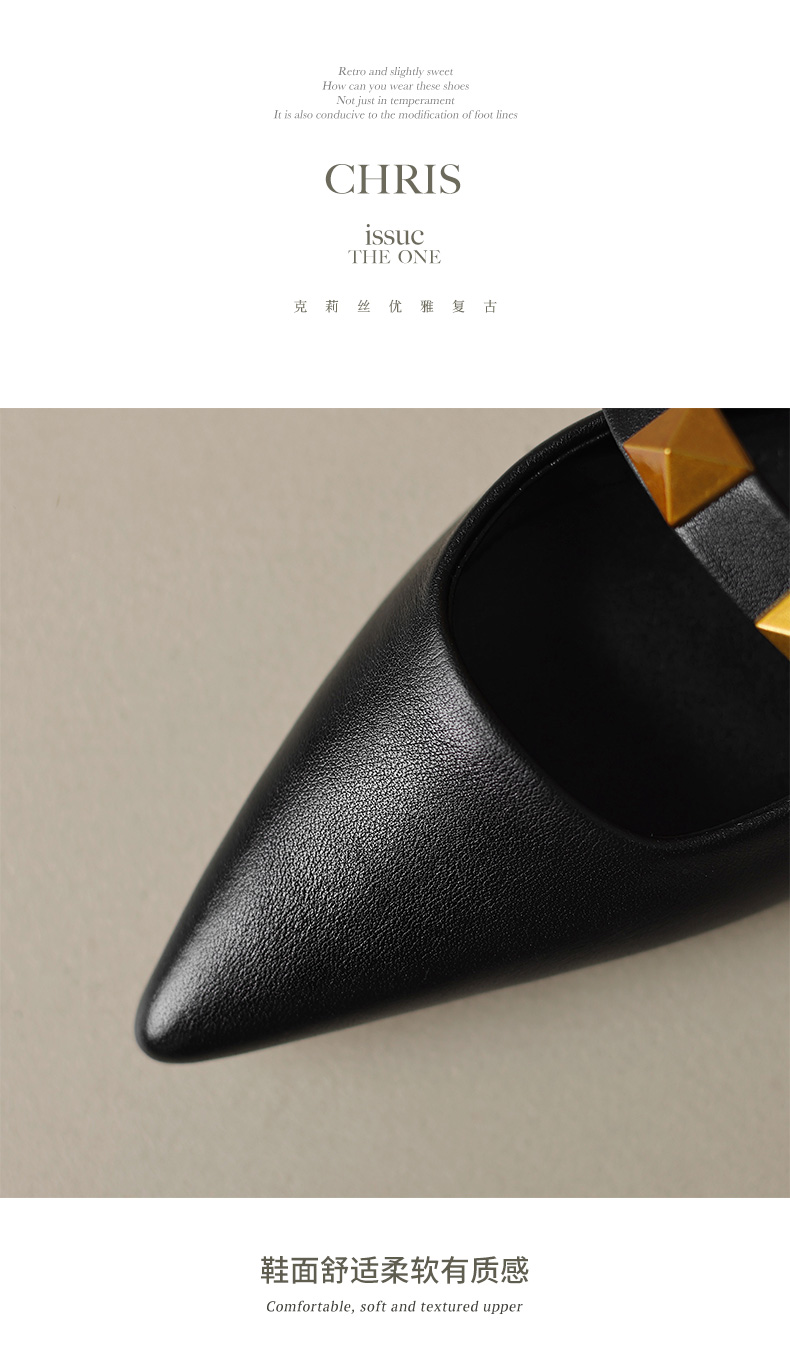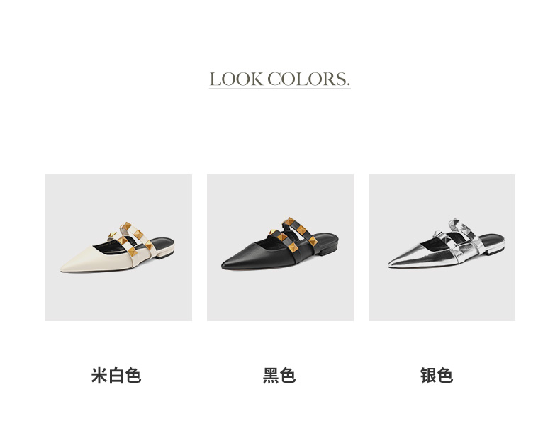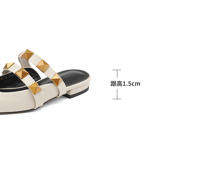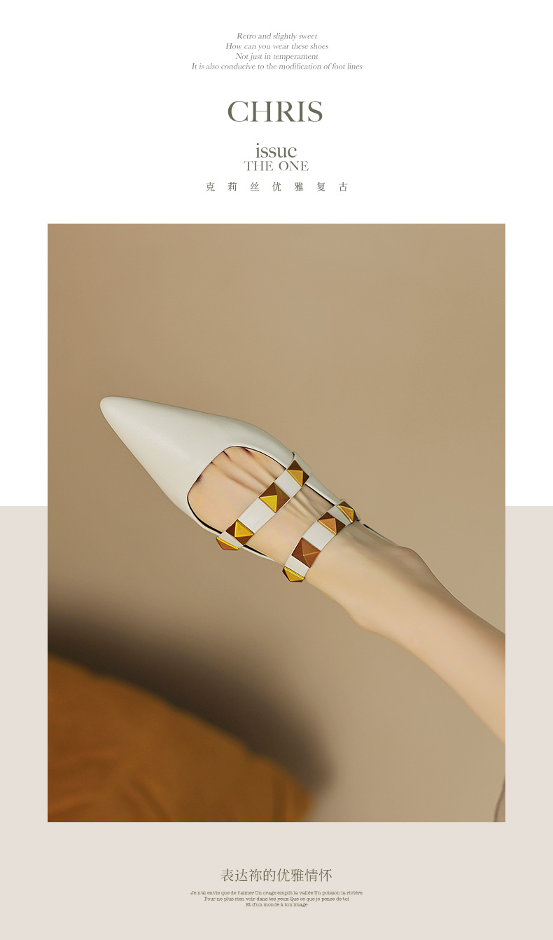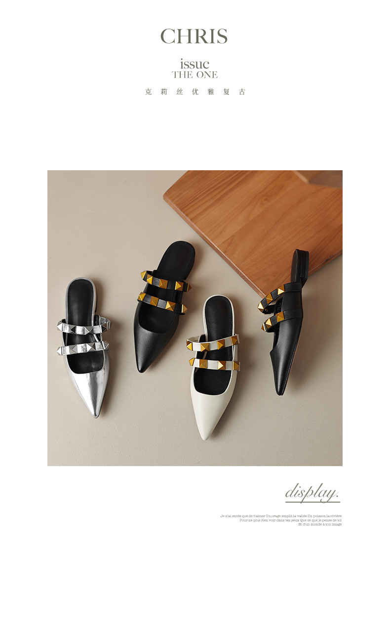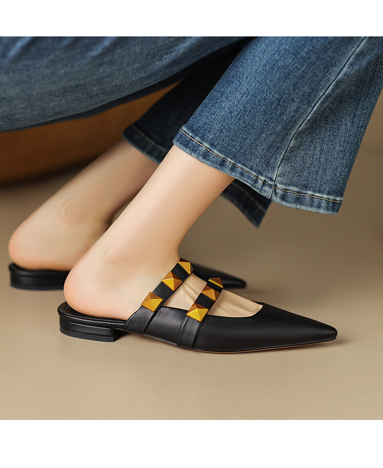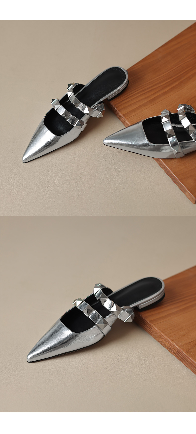 性感优雅,尖头真皮几何铆钉平底凉拖HB-4026