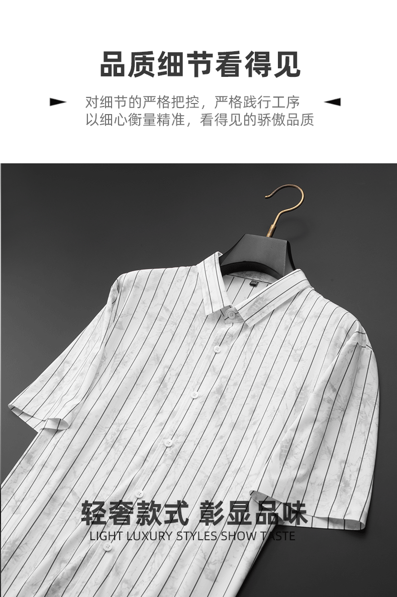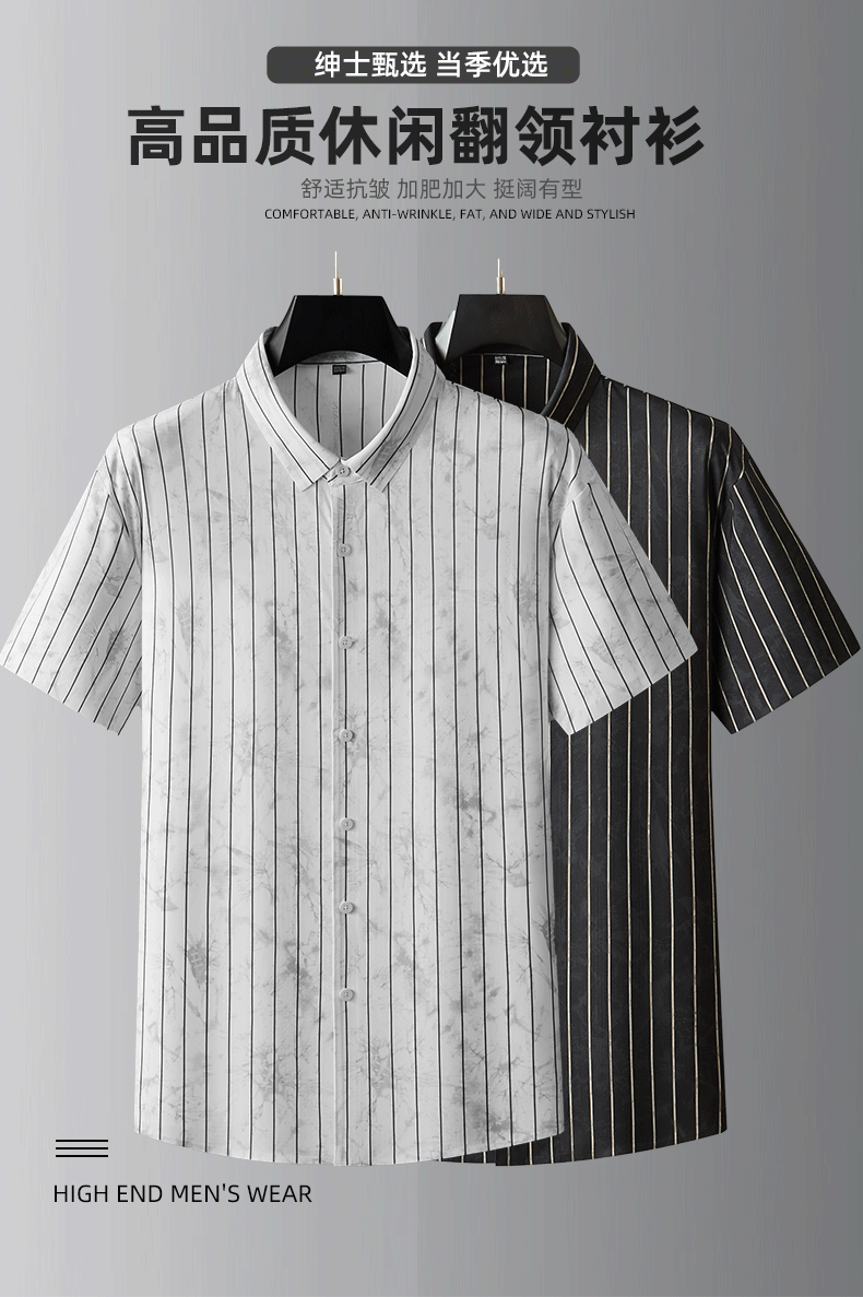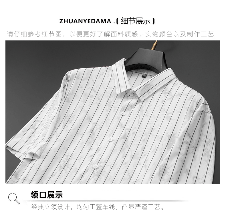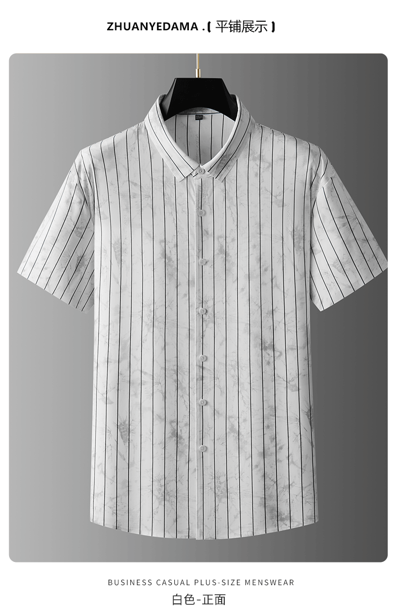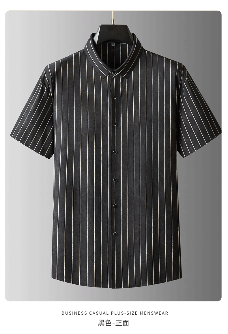 【DDA】大依优型大码条纹短袖衬衫翻领衬衣商务休闲透气半袖夏季上衣男士