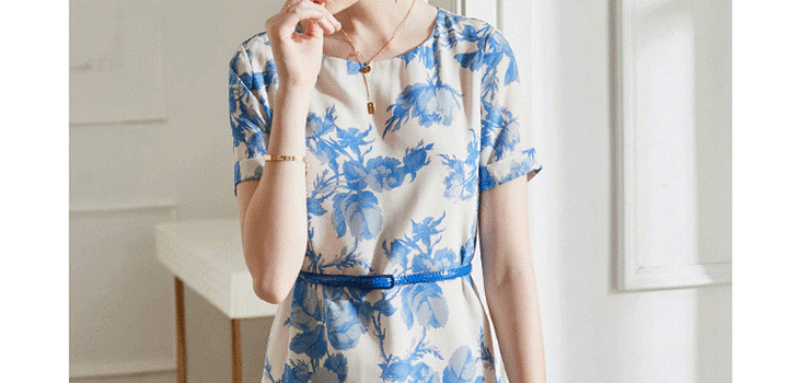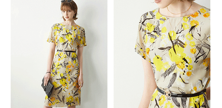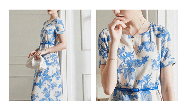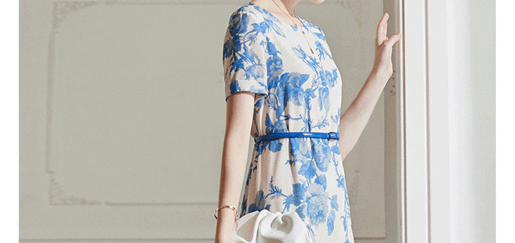 丁摩 重磅真丝配真皮腰带连衣裙女夏季气质收腰桑蚕丝裙子20-186DL699