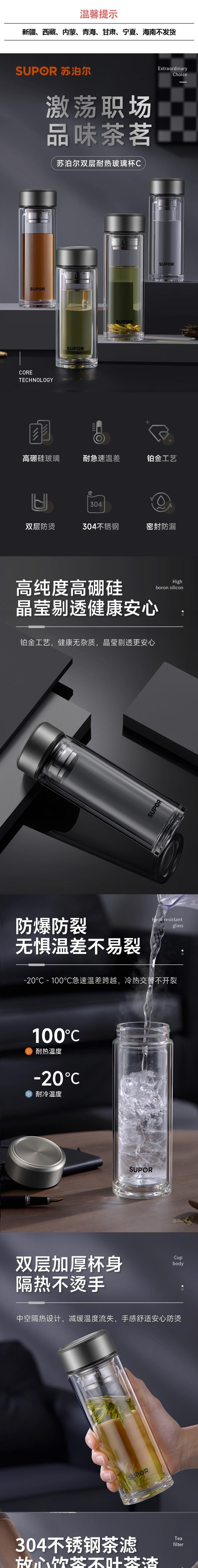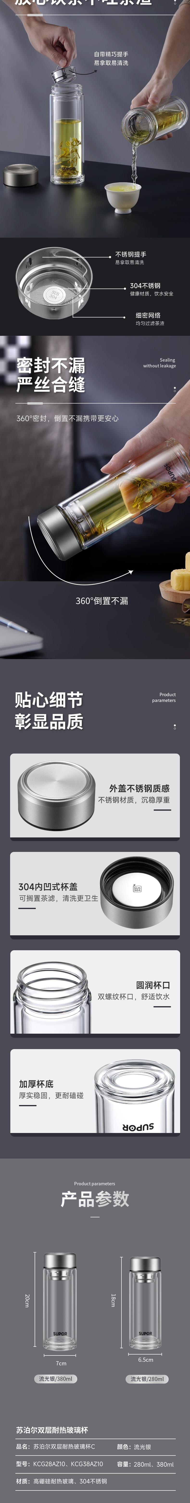 SUPOR苏泊尔 双层耐热玻璃杯C.流光银280ml KCG28AZ10