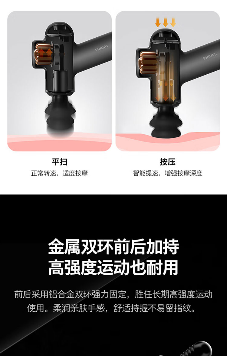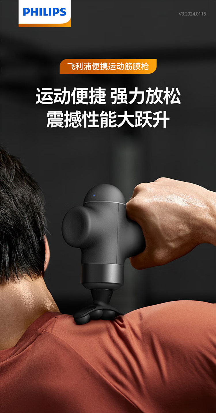测评优品-飞利浦筋膜枪 运动按摩 肌肉放松 健身瑜伽 专业器材 男女 礼物