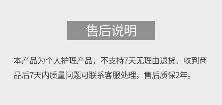 售后规则:本产品为个人护理产品,不支持7天无理由退货。收到商品后7天内质量问题可联系客服处理,售后质保2年。