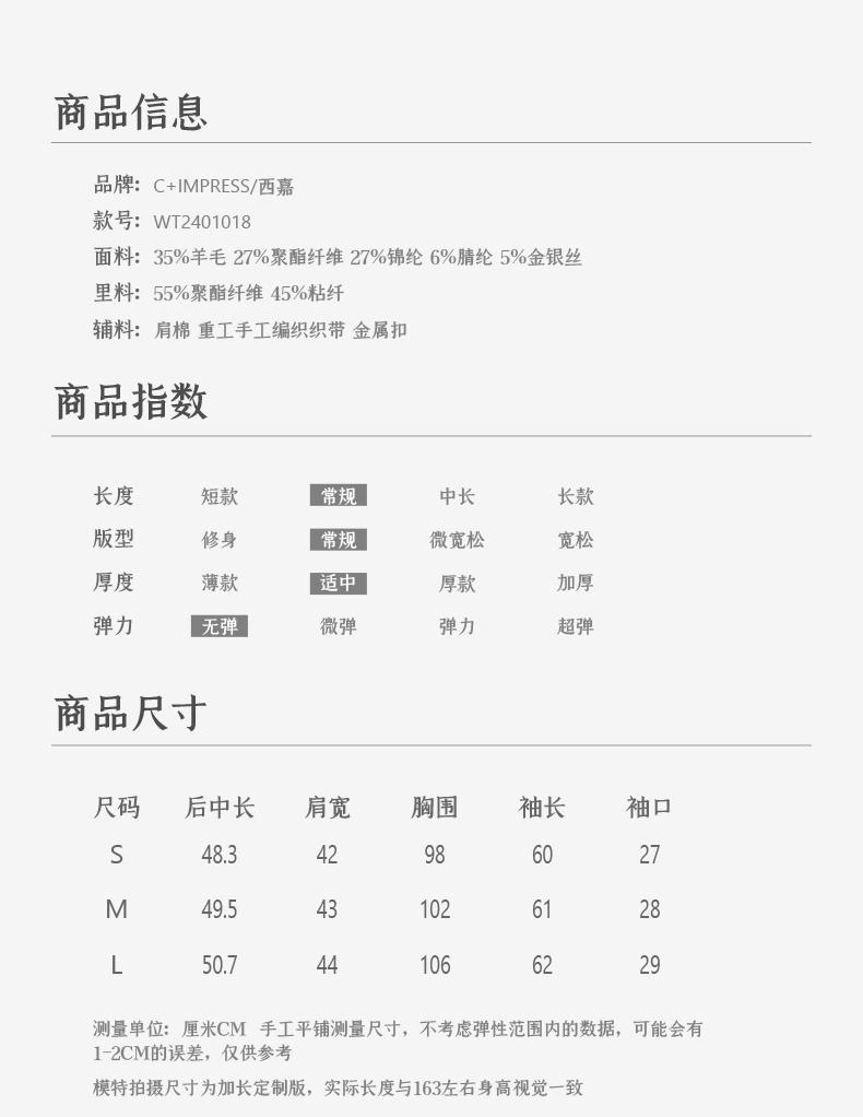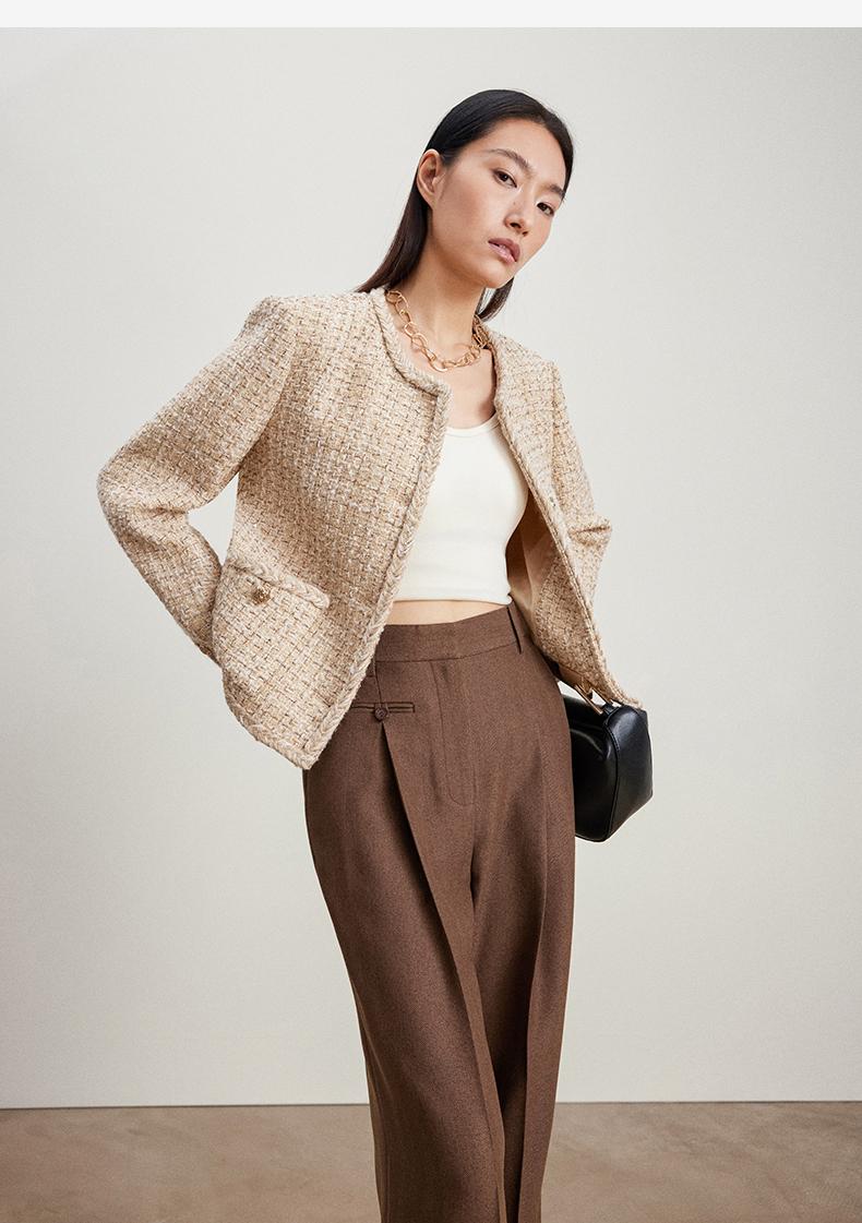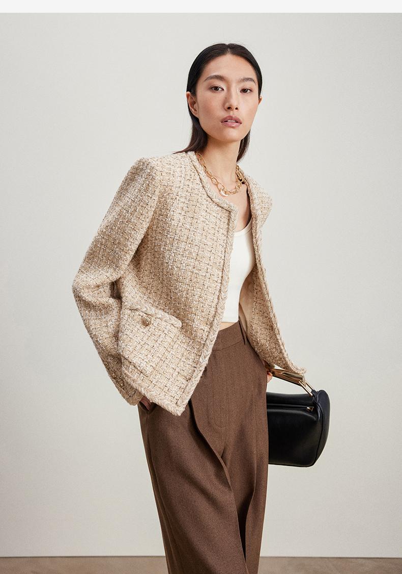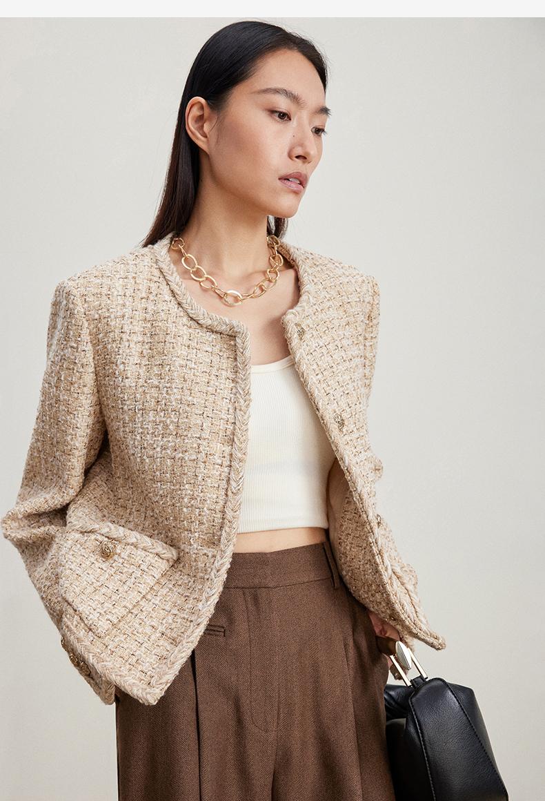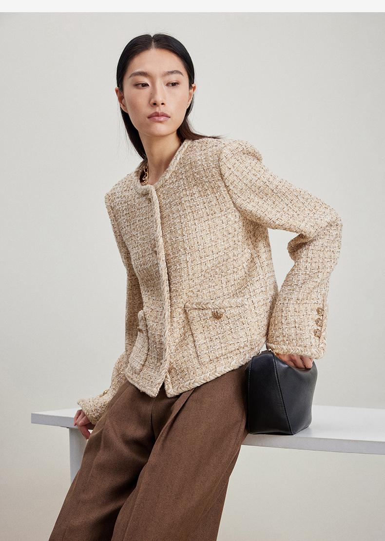 西嘉C+IMPRESS/西嘉千金玛德琳小香风外套女小个子春季羊毛编织感花呢WT2401018